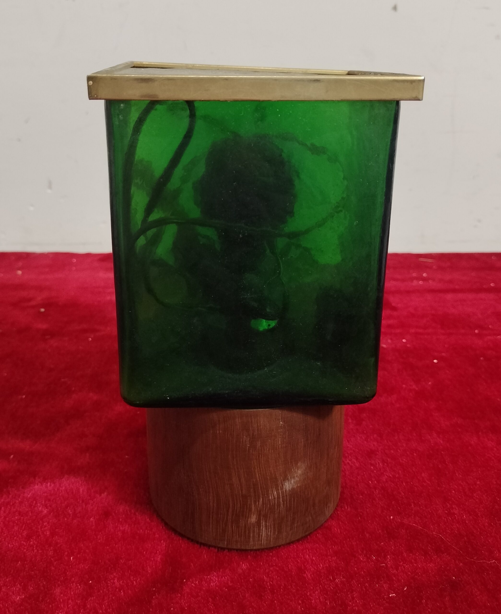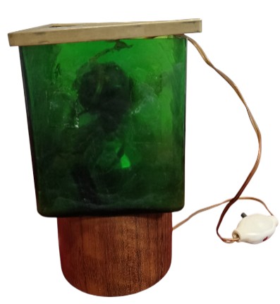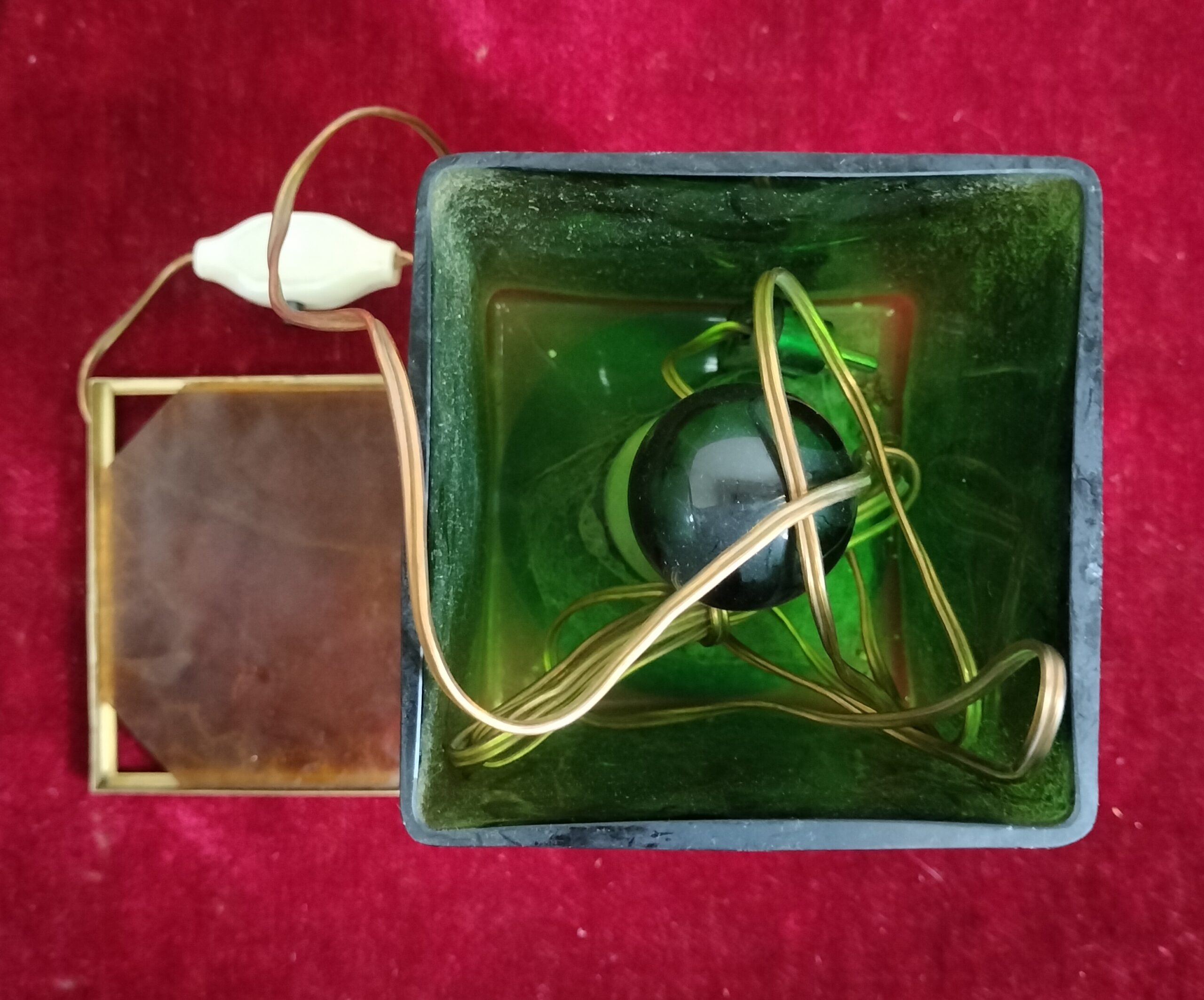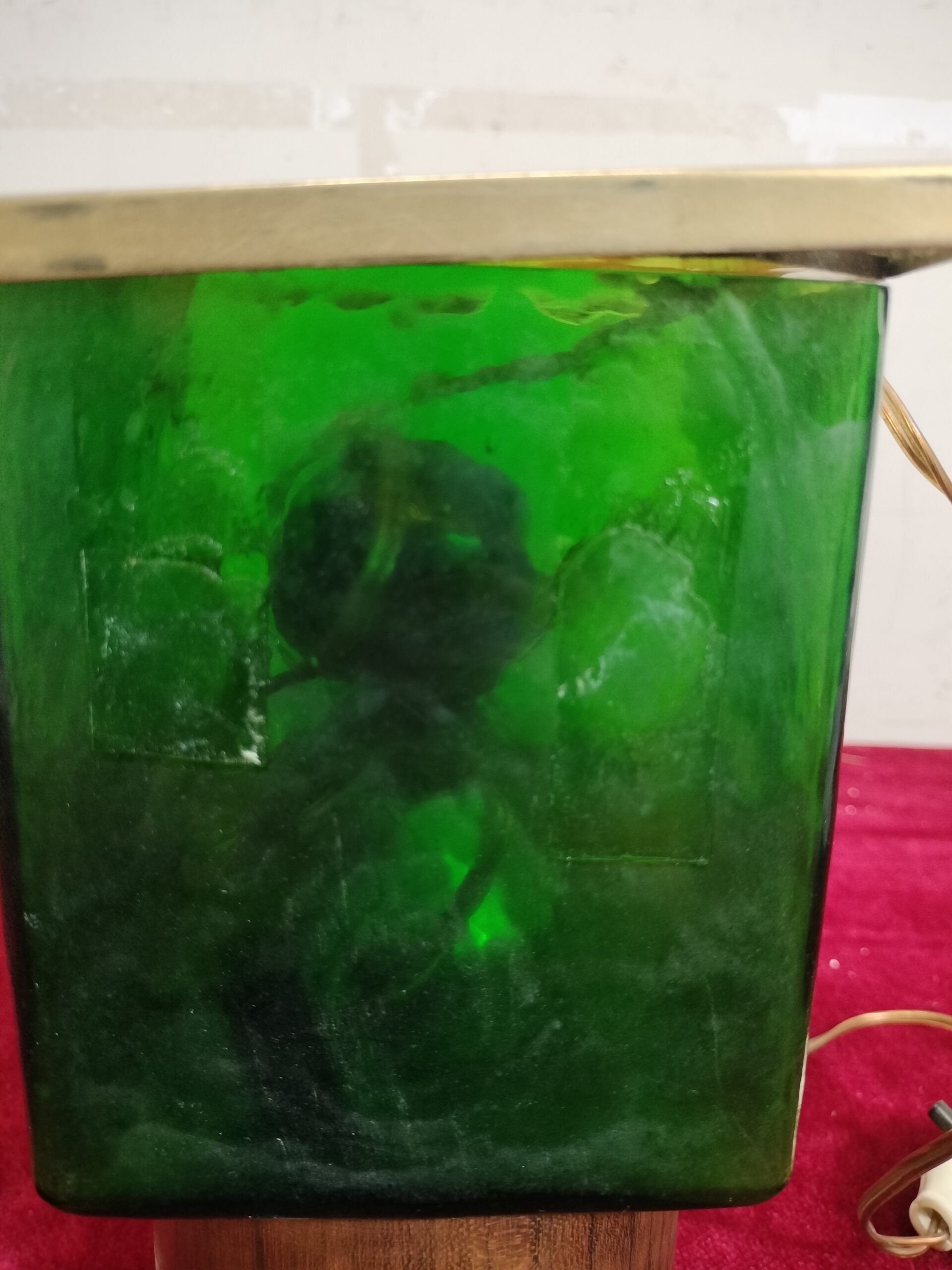 VER IMÁGENES PARA COMPROBAR EL ESTADO REAL. LAS IMÁGENES FORMAN PARTE DE LA DESCRIPCIÓN. LÁMPARA DE CRISTAL SOPLADO. BASE DE MADERA, CON MARCA DE AUTOR EN LA PARTE POSTERIOR. EL SISTEMA ELÉCTRICO PRECISA DE RESTAURACIÓN. RESTOS DE ADHESIVO Y RASGUÑOS. PRECISA LIMPIEZA. VER IMÁGENES. TAPA DESPRENDIDA EN VARIOS PUNTOS DEL MARCO METÁLICO. BASE: 9 X 9 CM ALTURA: 18,6 CM TAPA: 10 X 10 CM