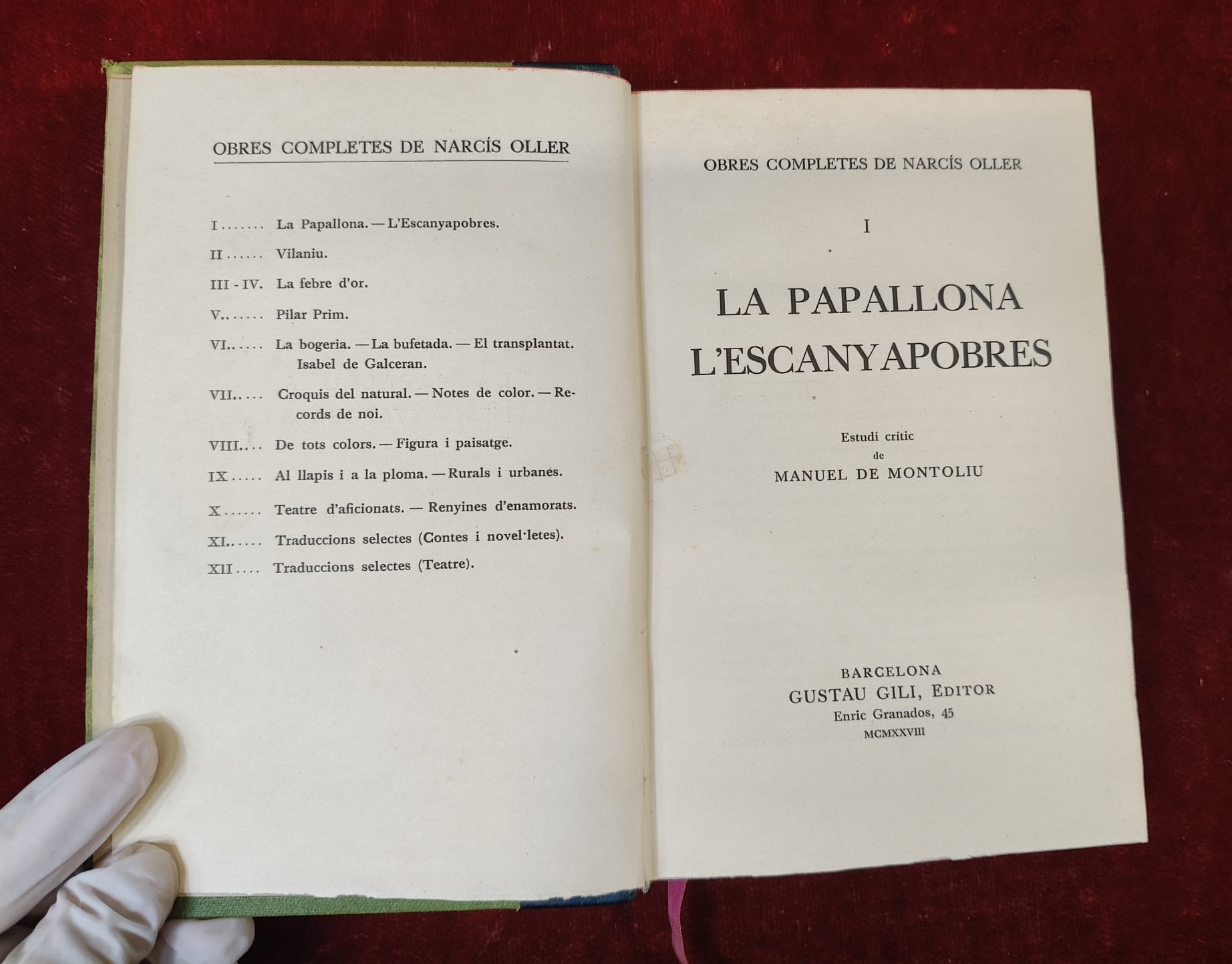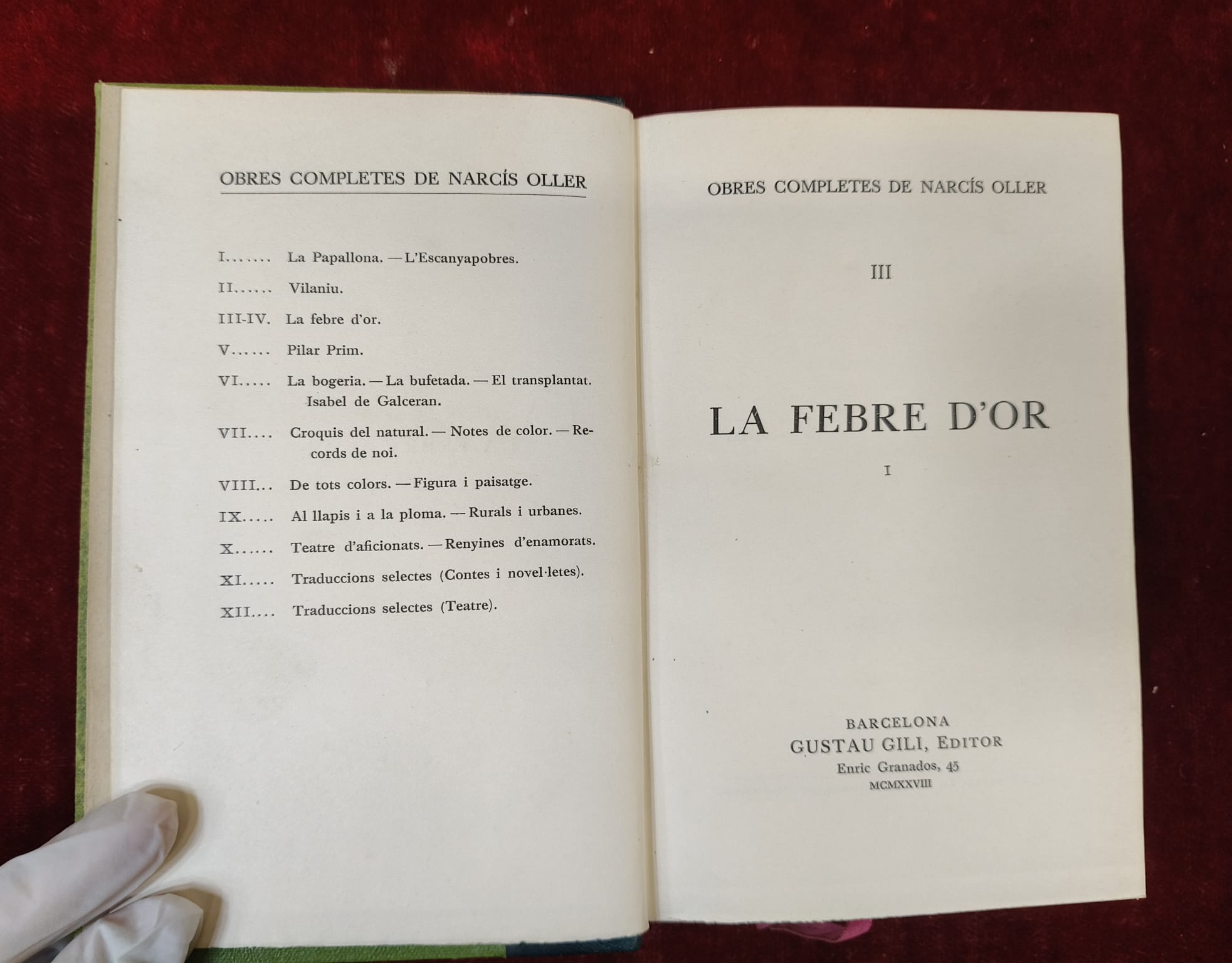 VER IMÁGENES PARA COMPROBAR EL ESTADO REAL. LAS IMÁGENES FORMAN PARTE DE LA DESCRIPCIÓN. OBRES COMPLETES. 12 VOLS. ENCUADERNACIÓNN EN TELA EDITORIAL, FATIGADA DEBIDO AL USO DEL TIEMPO. ESTUDIO CRITICO DE MANUEL DE MONTOLIU. EL LOTE INCLUYE OBRAS NARRATIVAS Y TEATRALES EN IDIOMA CATALÁN. TOMO I. LA PAPAYONA L’ESCANYAPOBRES. TOMO II VILANIU. TOMO III. LA FEBRE D’OR I TOMO IV. LA FEBRE D’OR II TOMO V. LA BOGUERIA. TOMO VI. PILAR PRIM. TOMO VII. CROQUIS DEL NATURAL TOMO VIII. DE TOTS COLORS. TOMO IX. AL LLAPIS I A LA PLOMA. TOMO X. TEATRE D’AFICIONATS. TOMO XI. TRADUCCIONS SELECTES. (VÀRIA) TOMO XII. TRADUCCIONS SELECTES. (TEATRE)