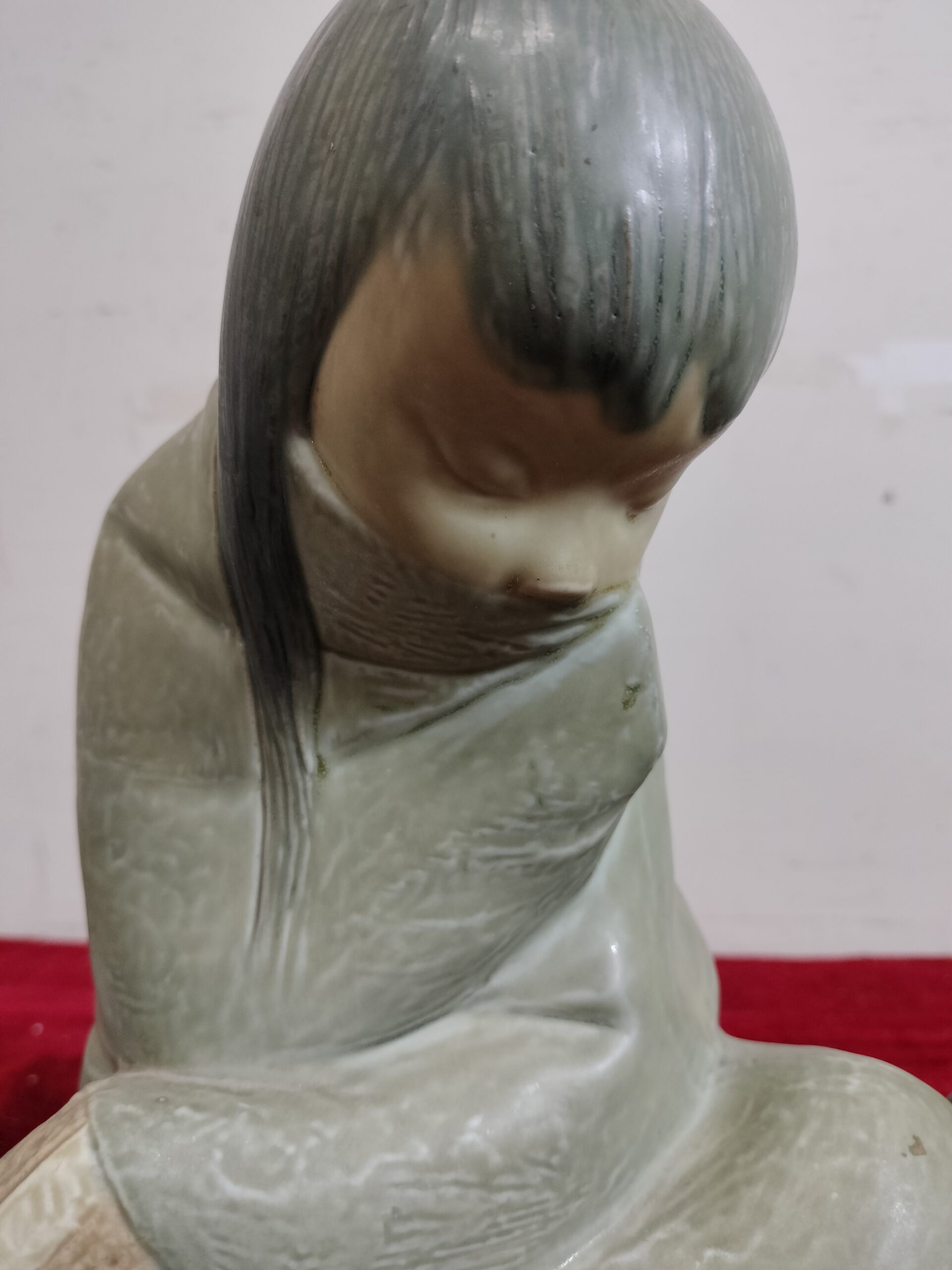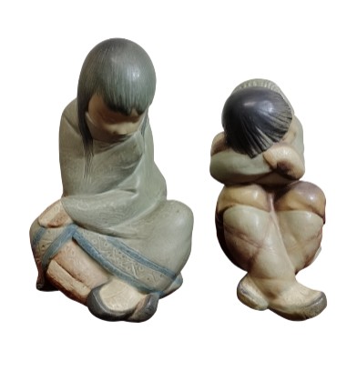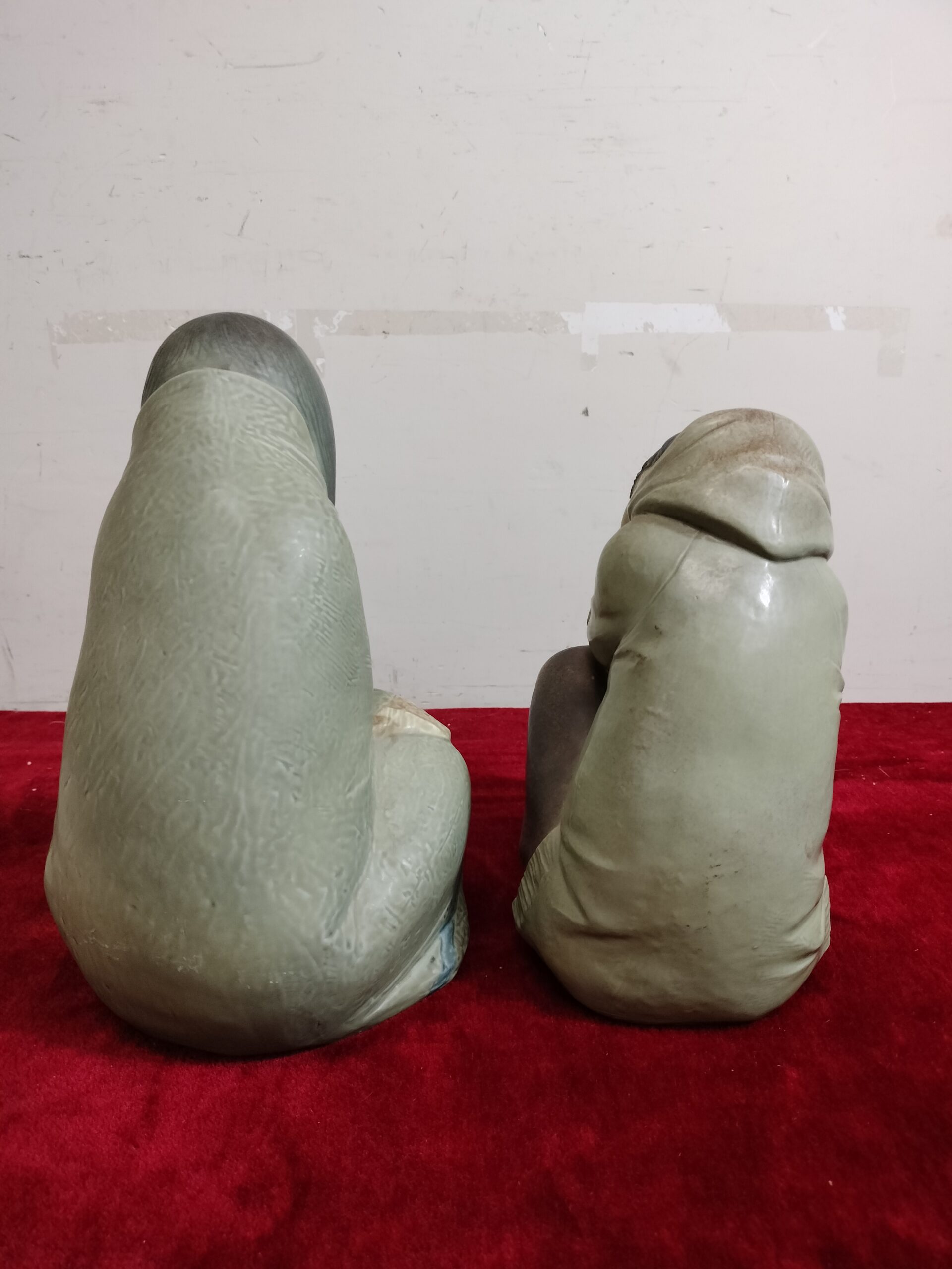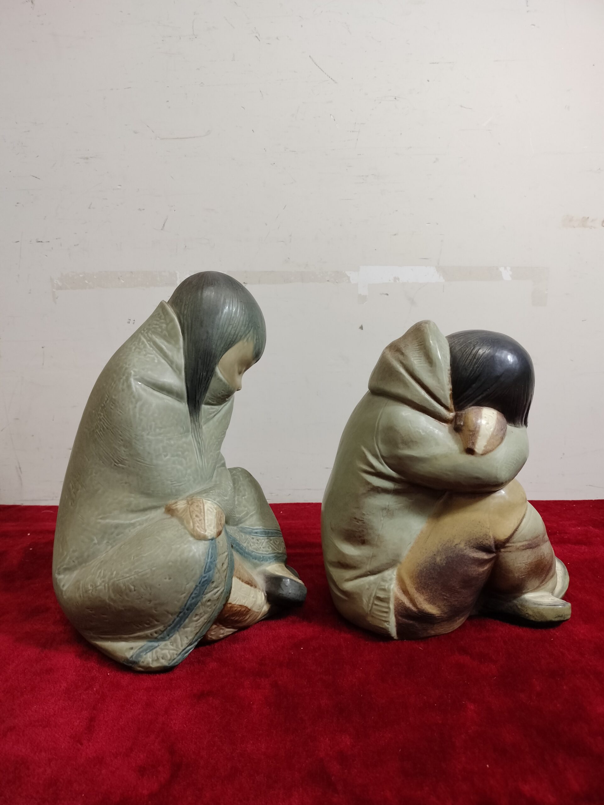 PAREJA DE ESQUIMALES. LLADRÓ. PORCELANA Y GRES ESMALTADO. ESPAÑA. XX