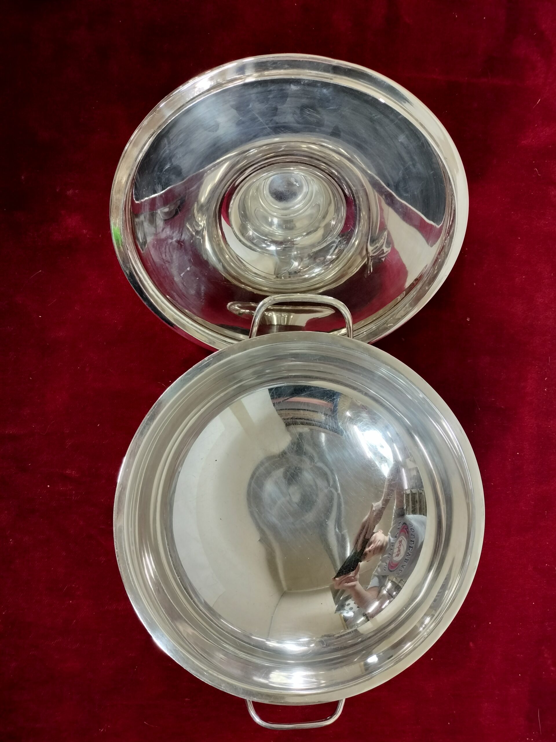 SOPERA OVALADA. ALPACA O METAL PLATEADO. ESPAÑA. SIGLO XX.