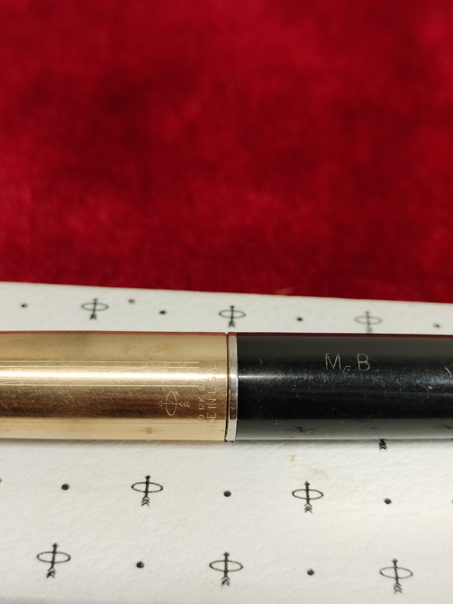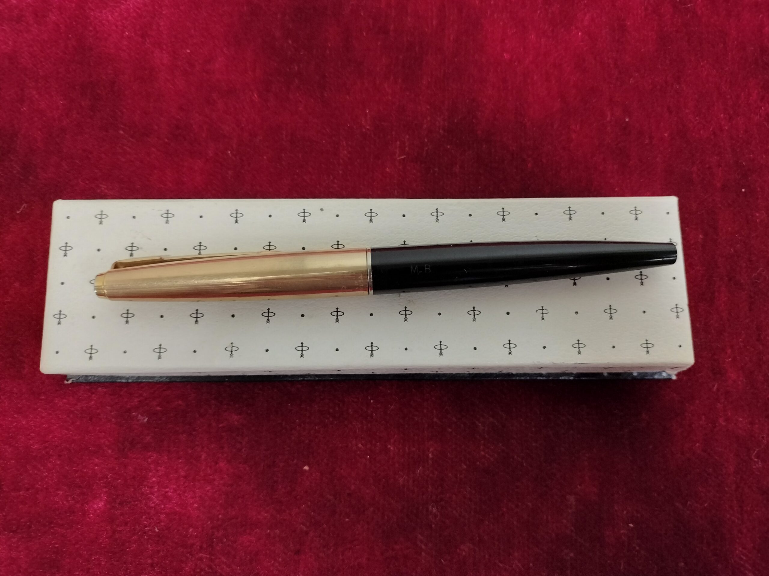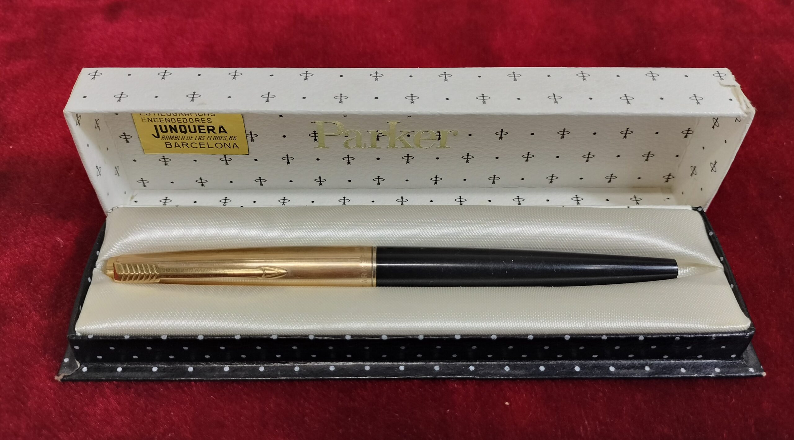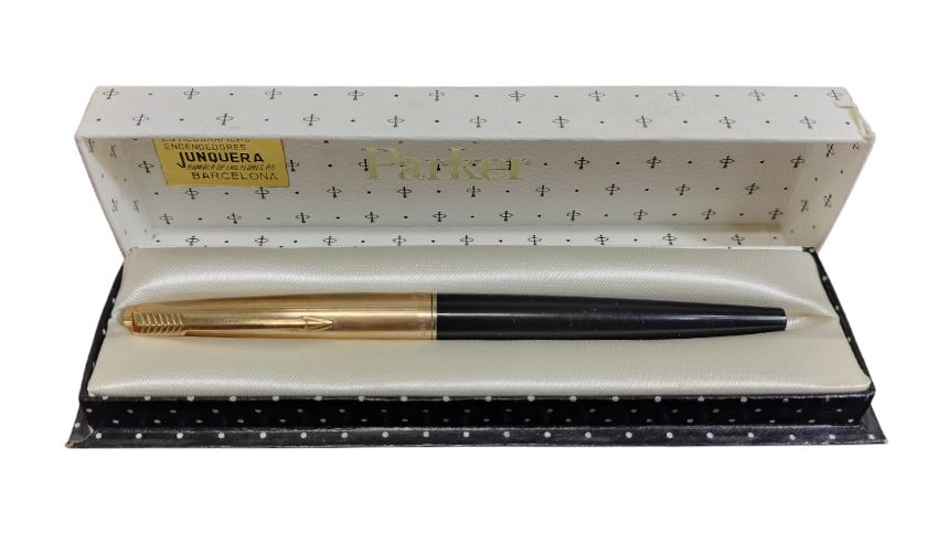 VER IMÁGENES PARA COMPROBAR EL ESTADO REAL.  PLUMA ESTILOGRÁFICA PARKER 45.  CON ESTUCHE.  CAPUCHON DORADO. INSCRIPCIONES: 1/10, 12K. GF.  INICIALES EN EL FUSTE NEGRO: M.B.  PLUMÍN DESPUNTADO Y SECO. DESCONOCEMOS SI FUNCIONA. CARTUCHO VACÍO.  LIGEROS RASGÑOS EN EL FUSTE. VER IMÁGENES EN DETALLE.