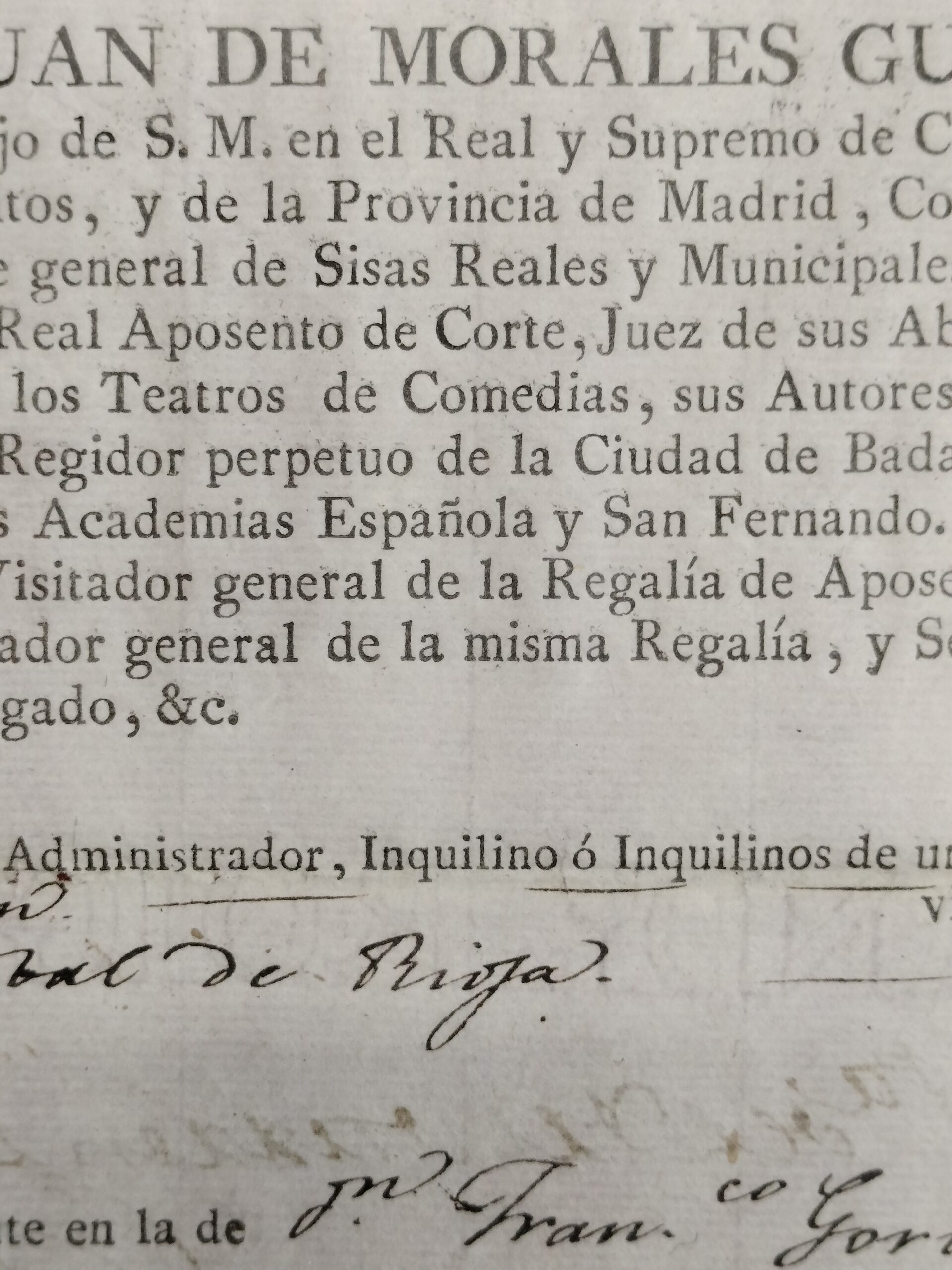 ANTIGUO DOCUMENTO SOBRE LA REGALÍA DE APOSENTO. PAPEL VERJURADO. FIRMADO. MADRID. 1799