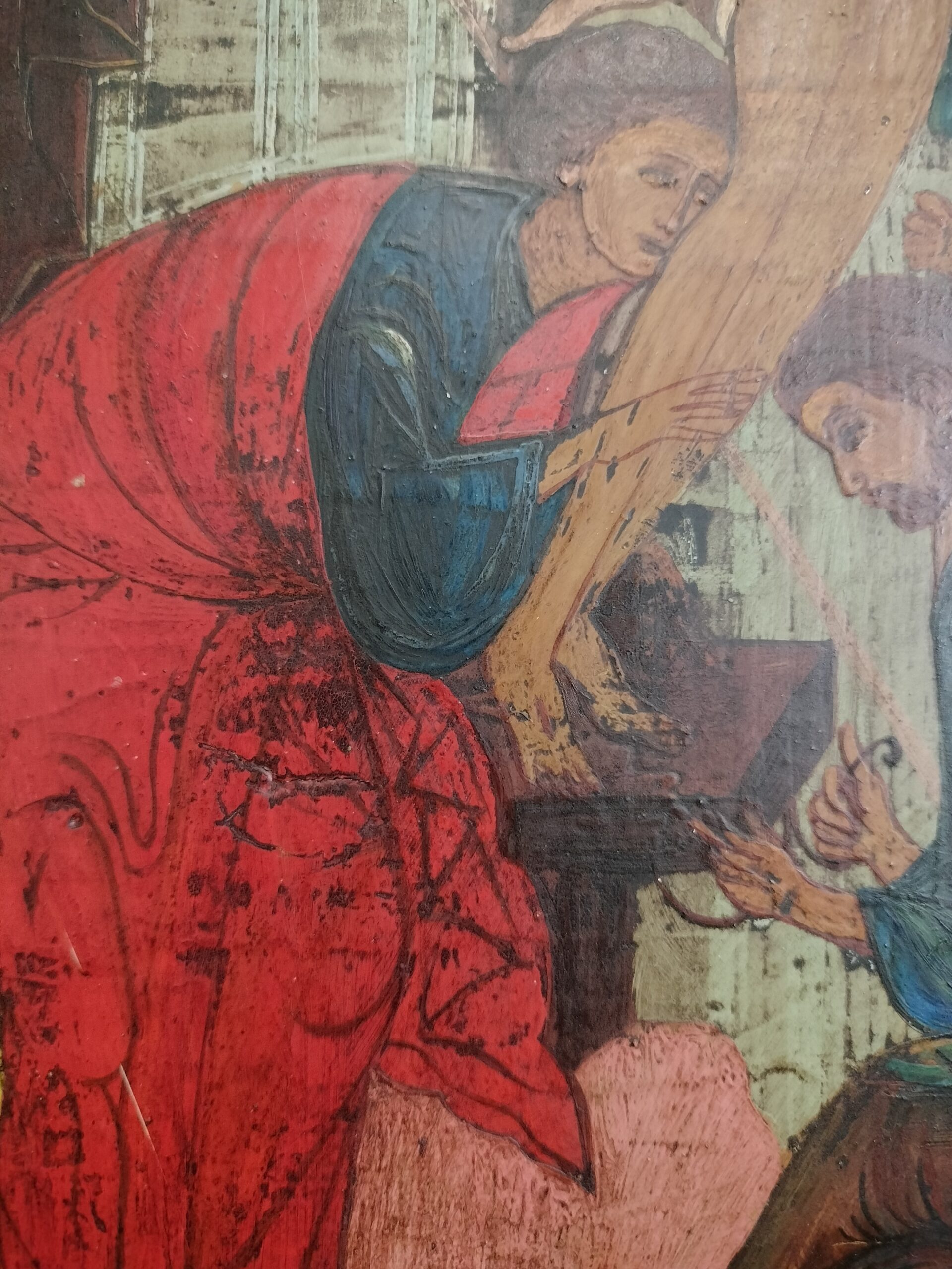 DESCENDIMIENTO DE LA CRUZ. TEMPLE SOBRE MADERA. ESCUELA RUSA. SIGLOS XIX-XX