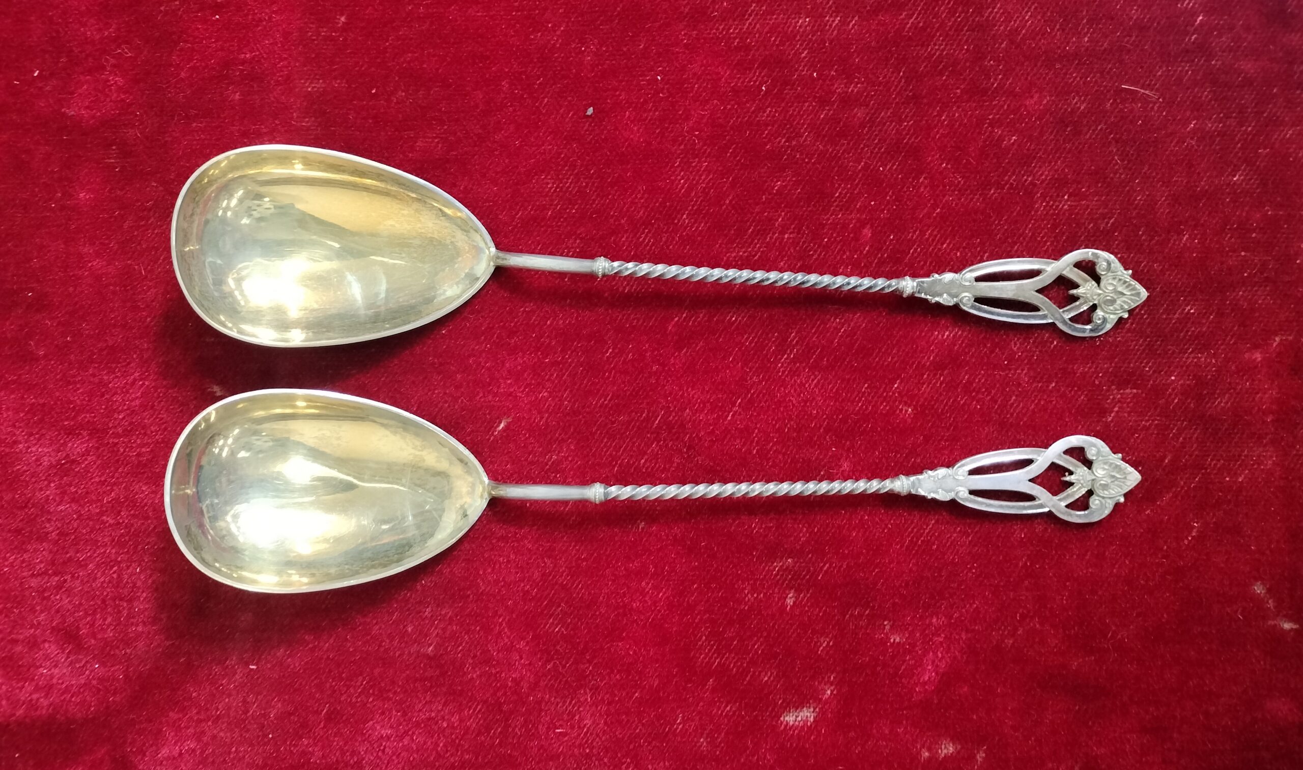 PAREJA DE CUCHARAS PARA SERVIR. N.M THUNE. CHRISTIANIA. PLATA ESCANDINAVA. SIGLO XX.