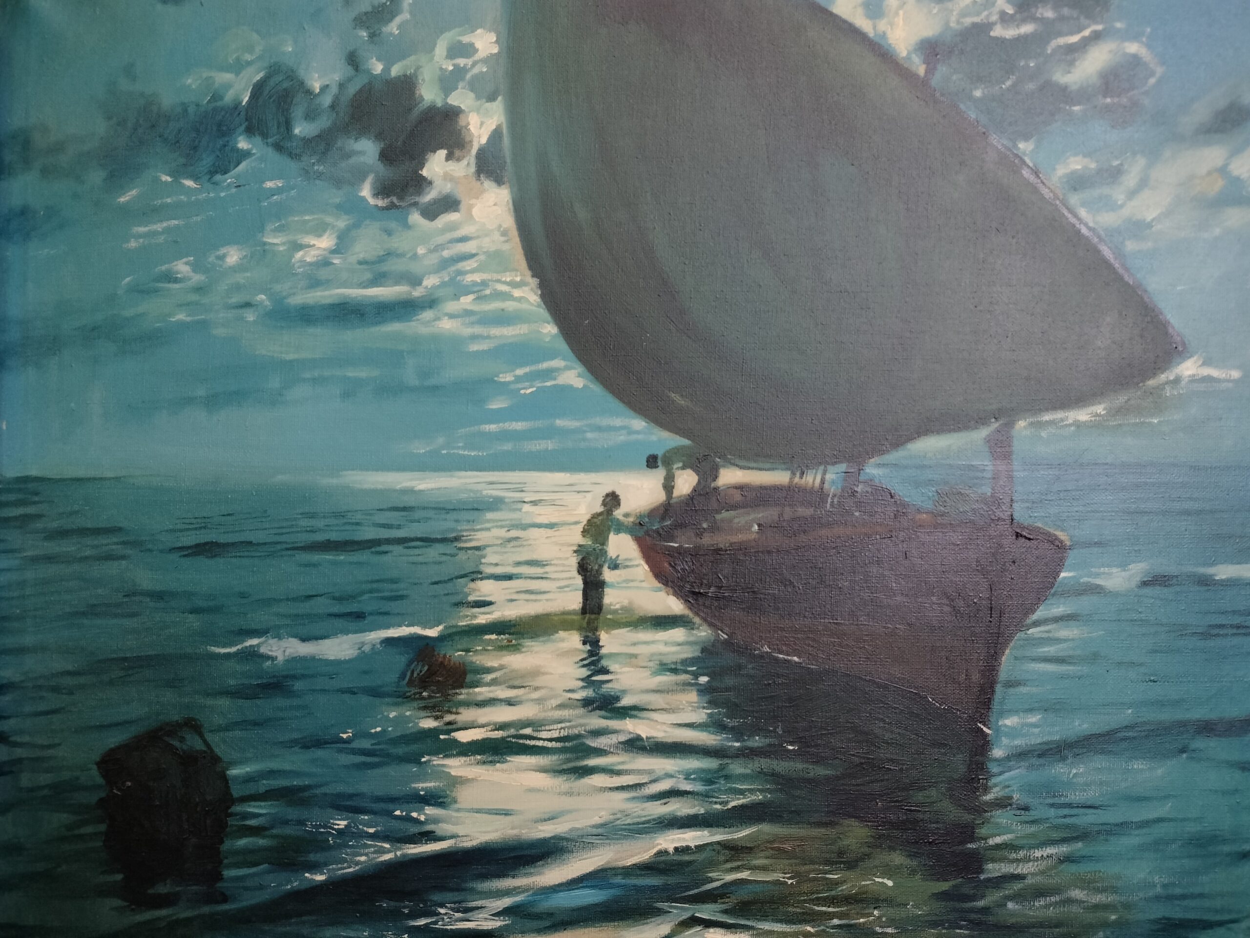 PESCADORES EN LA NOCHE. FIRMADO HEVESI. ÓLEO SOBRE LIENZO. ESPAÑA (?). SIGLO XX.
