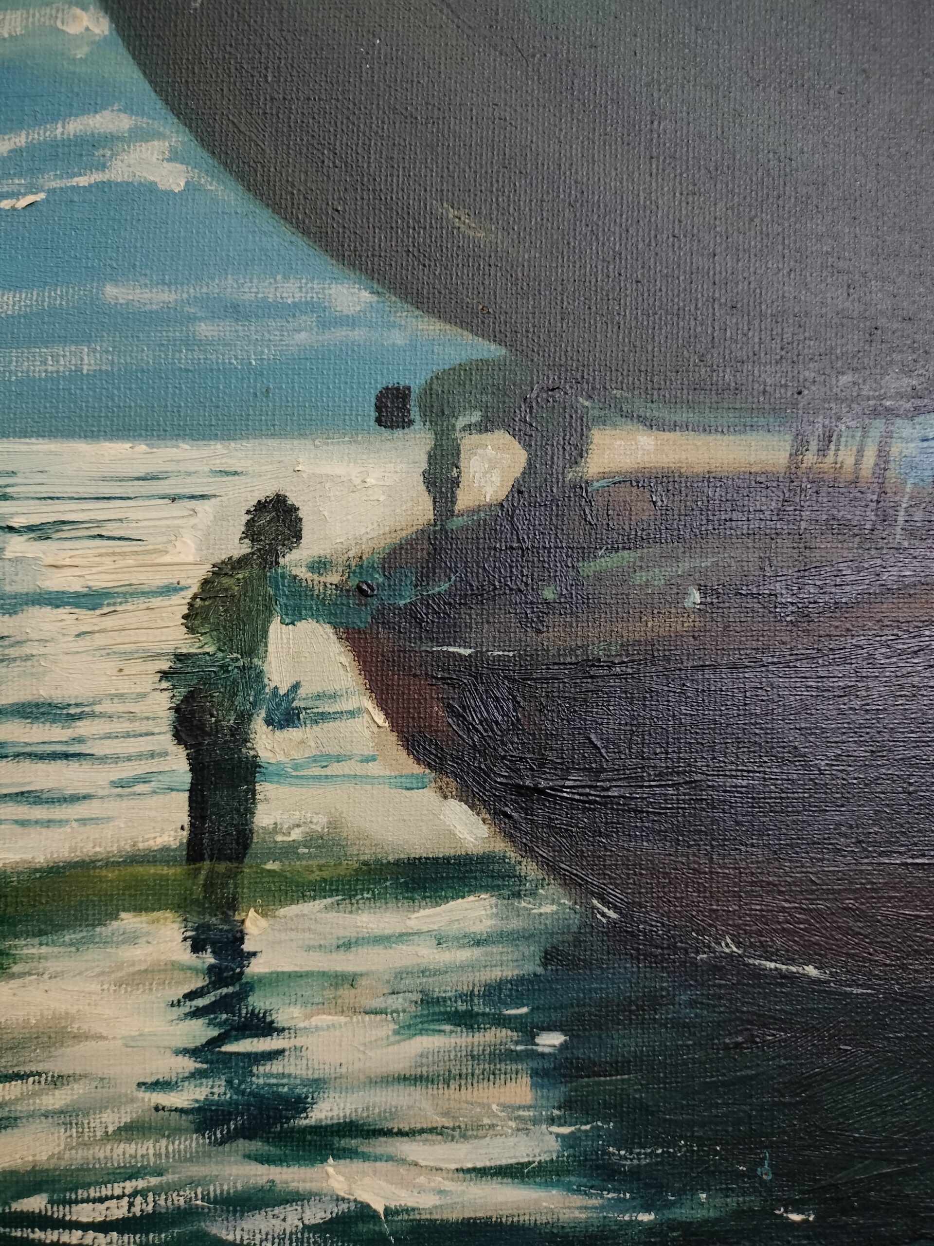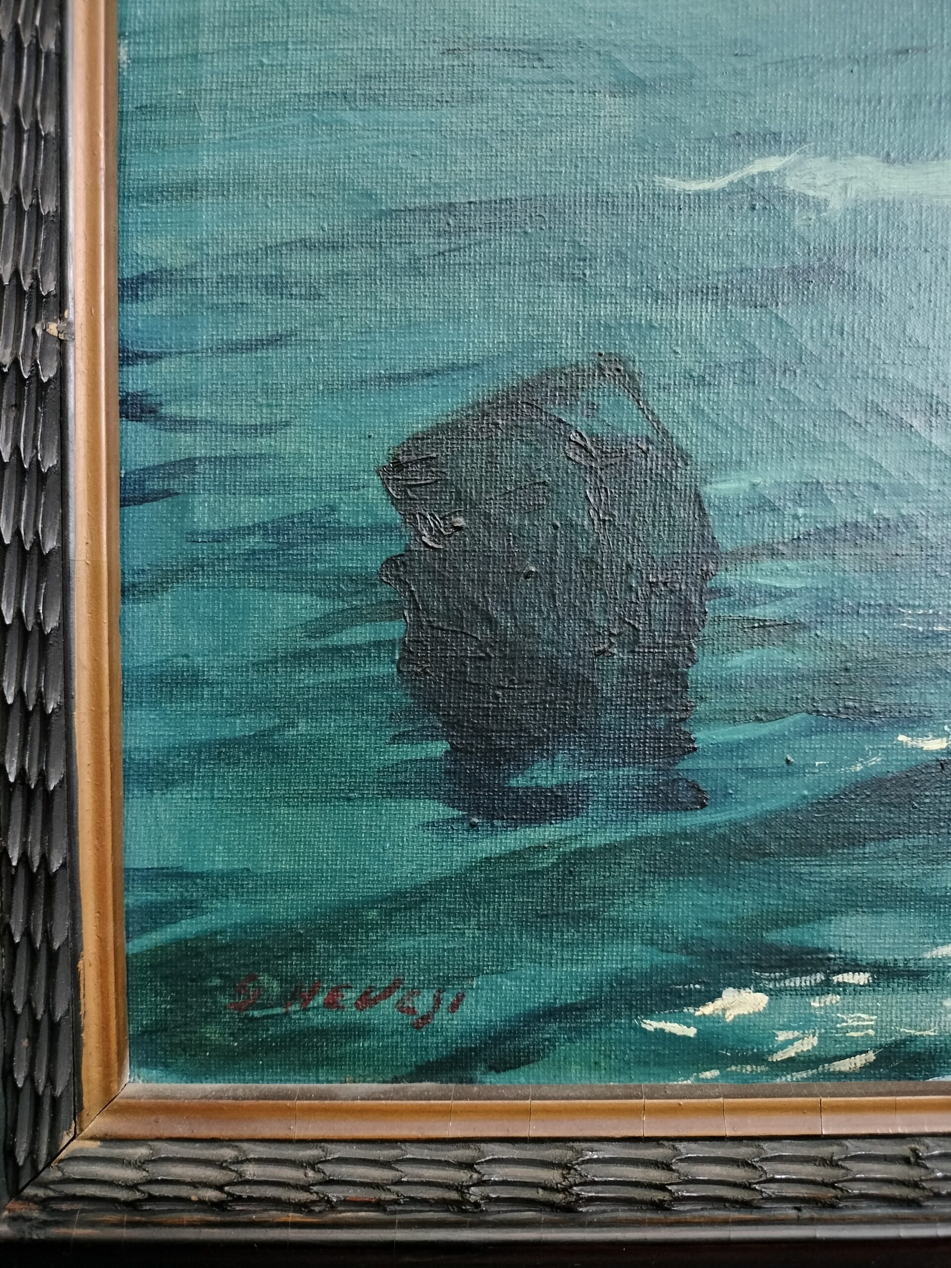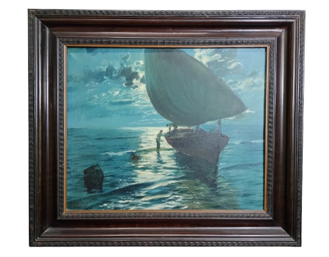 VER IMÁGENES PARA COMPROBAR EL ESTADO REAL. LAS IMÁGENES FORMAN PARTE DE LA DESCRIPCIÓN. PESCADORES EN LA NOCHE. MARINA. ÓLEO SOBRE LIENZO. ESPAÑA (?). SIGLO XX. FIRMADO EN LA ESQUINA INFERIOR IZQUIERDA: HEVESI. MARCO DE MADERA, CON EROSIONES Y LIGEROS RASGUÑOS. SIN VIDRIO PROTECTOR. BUEN ESTADO GENERAL, SIN PÉRDIDAS APARENTES DE PINTURA. MEDIDAS: MARCO: 78,5 X 68 PINTURA: 59 X 48