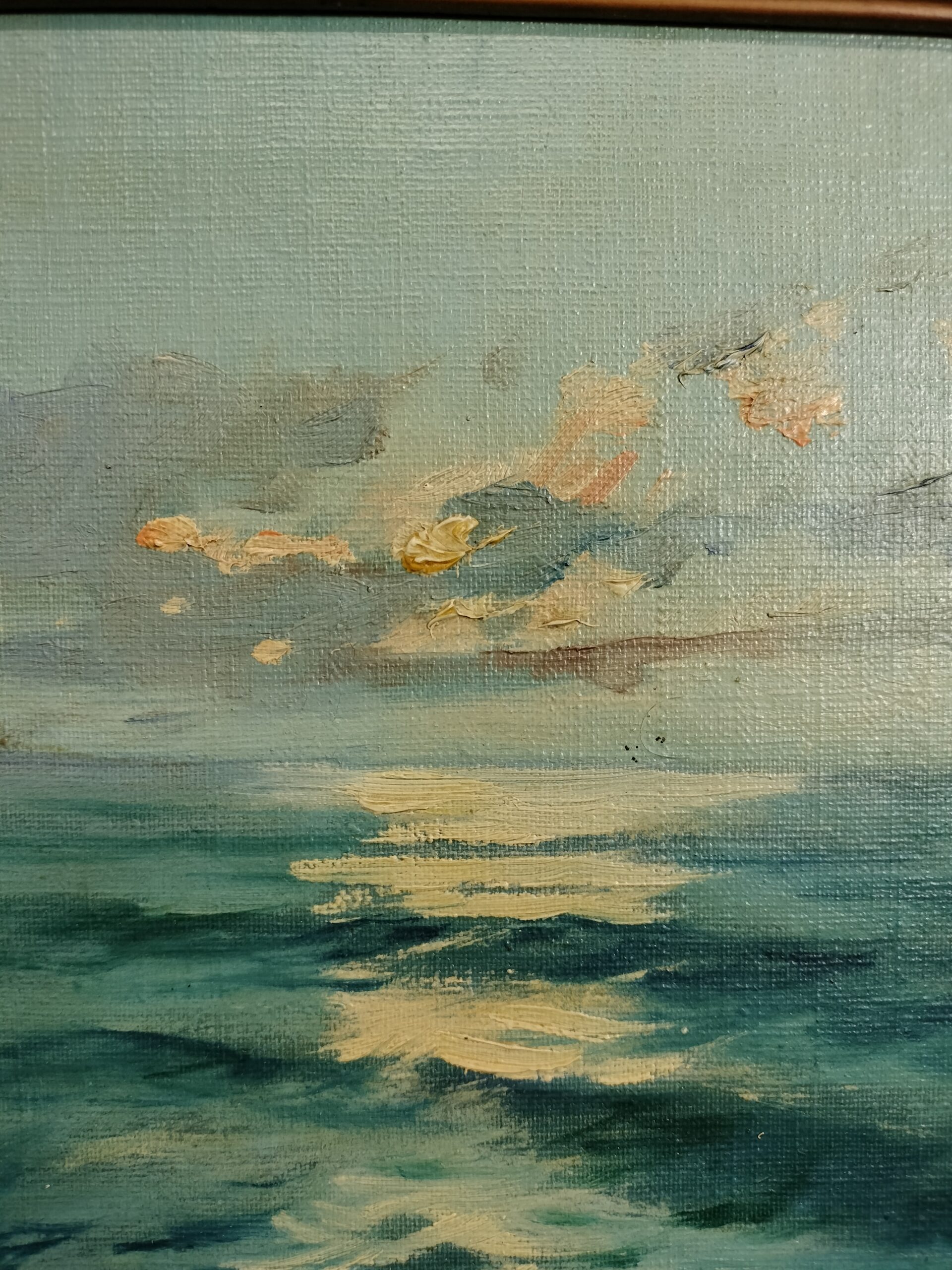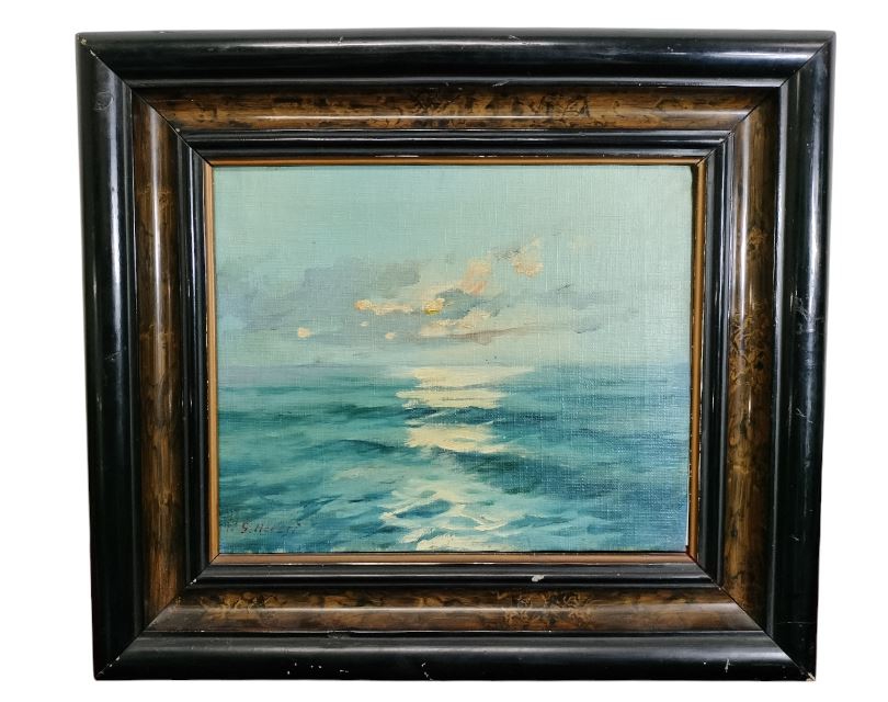 VER IMÁGENES PARA COMPROBAR EL ESTADO REAL. LAS IMÁGENES FORMAN PARTE DE LA DESCRIPCIÓN. REFLEJOS EN EL MAR. FIRMADO EN LA ESQUINA INFERIOR IZQUIERDA, EN ROJO: HEVESI. MARCO DE MADERA, CON LIGEROS RASGUÑOS. SIN VIDRIO PROTECTOR. DEDICADO EN LA PARTE POSTERIOR. BARNIZ ENVEJECIDO, PEQUEÑOS RESTOS DE SUCIEDAD. SE RECOMIENDA LIMPIEZA PROFESIONAL. MEDIDAS: MARCO: 39 X 35 PINTURA: 26 X 21