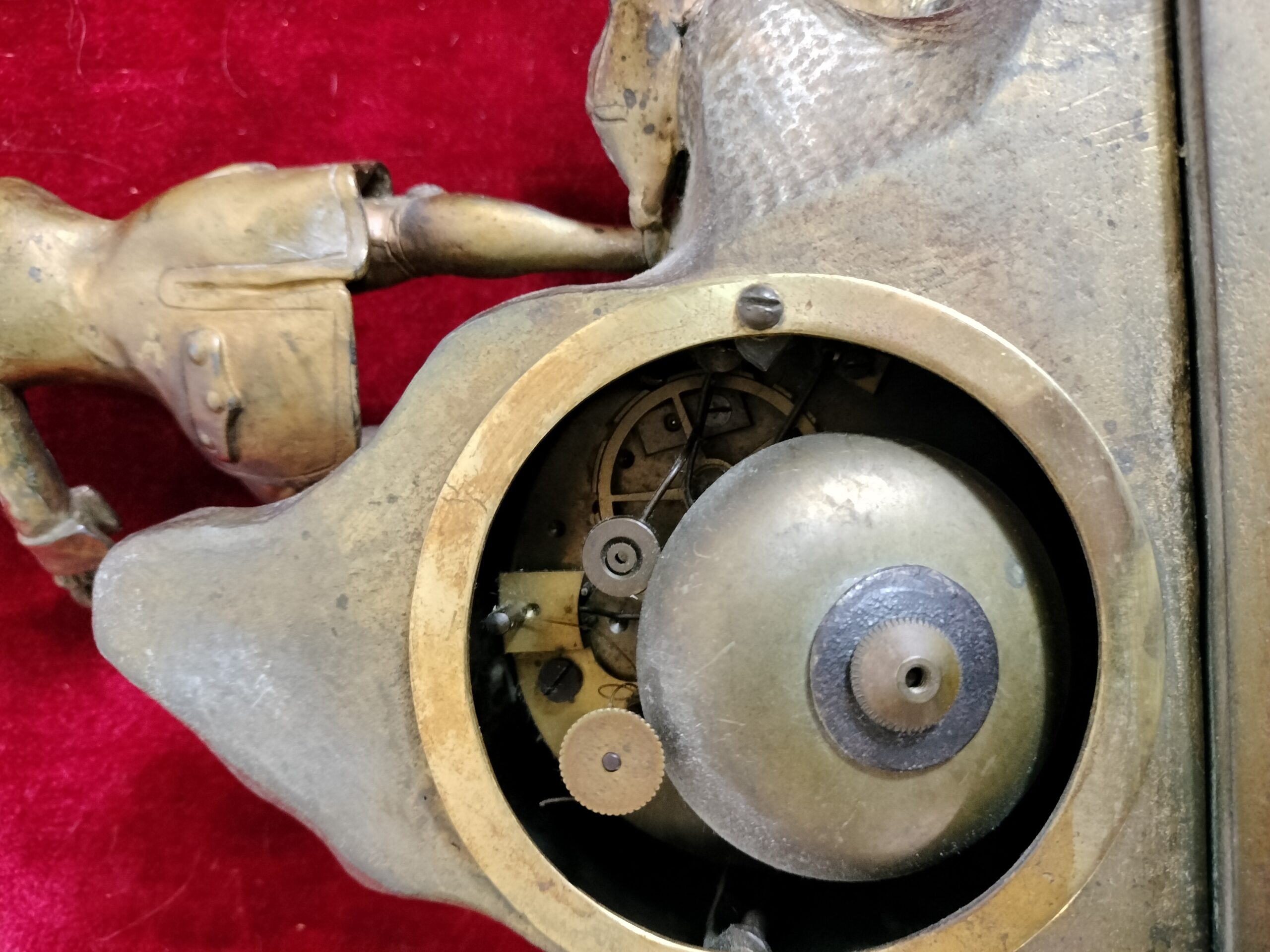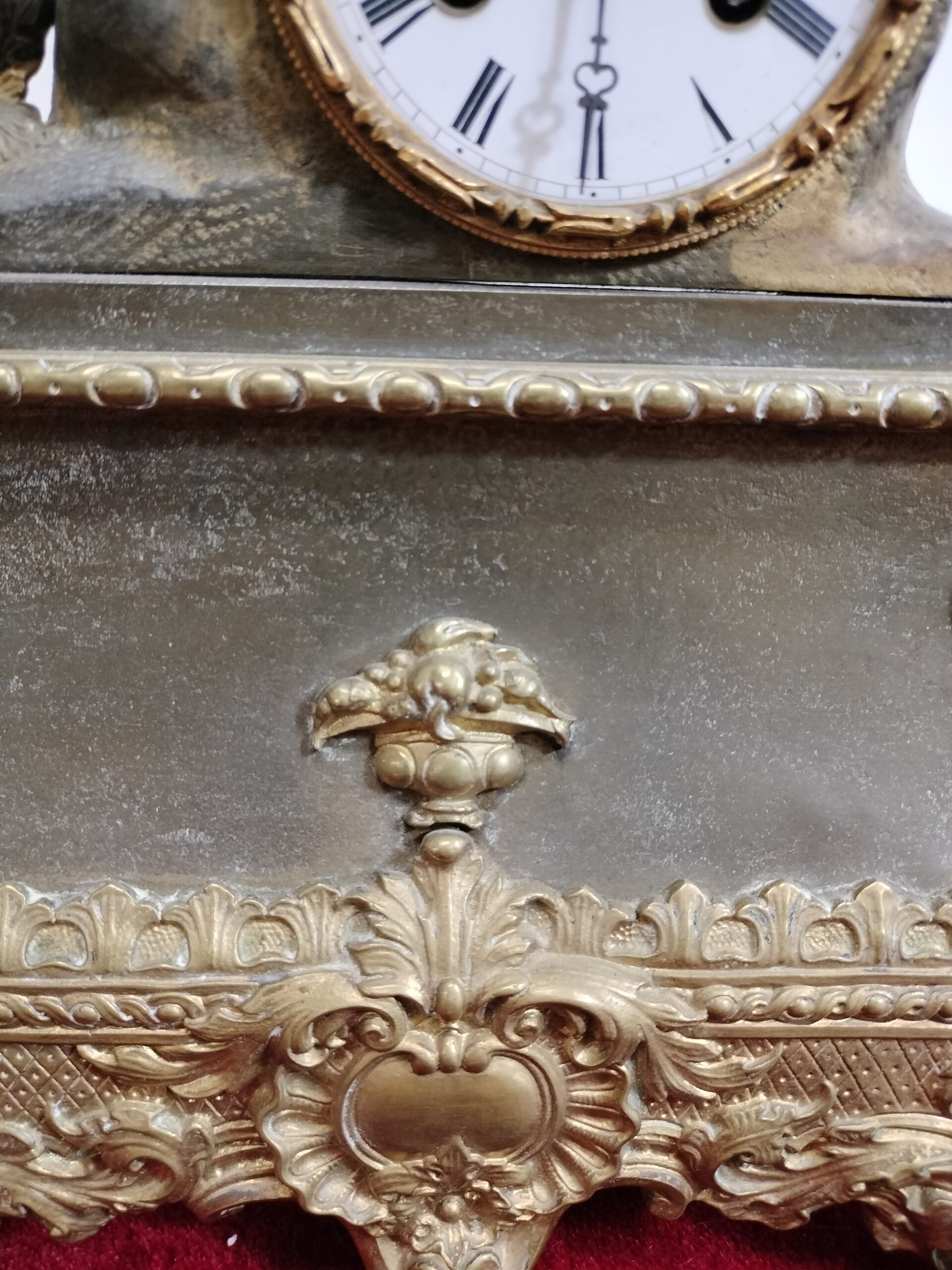 VER IMÁGENES PARA COMPROBAR EL ESTADO REAL. LAS IMÁGENES FORMAN PARTE DE LA DESCRIPCIÓN. METAL, POSIBLEMENTE LATÓN, CON DETALLES DORADOS DE AIRE ROCOCÓ. SIN FIRMA NI MARCA DE AUTOR APARENTE. PÉNDULO Y SONERÍA. ESFERA CON NÚMEROS ROMANOS, SIN VIDRIO. DISPONEMOS DE LA LLAVE DE CARGA Y EL PÉNDULO. FIGURA EN LA PARTE SUPERIOR, PARECE QUE LE FALTA UN ATRIBUTO. SEGURAMENTE UN INGENIERO, CARTÓGRAFO O GEÓMETRA. DESCONOCEMOS SI FUNCIONA CORRECTAMENTE. RECOMENDAMOS UNA REVISIÓN PROFESIONAL. EL METAL PRESENTA LIGERAS EROSIONES Y RESTOS DE SUCIEDAD. LA CAJA SITUADA AL LADO DE LA FIGURA SE ENCUENTRA BASTANTE DESPEGADA.