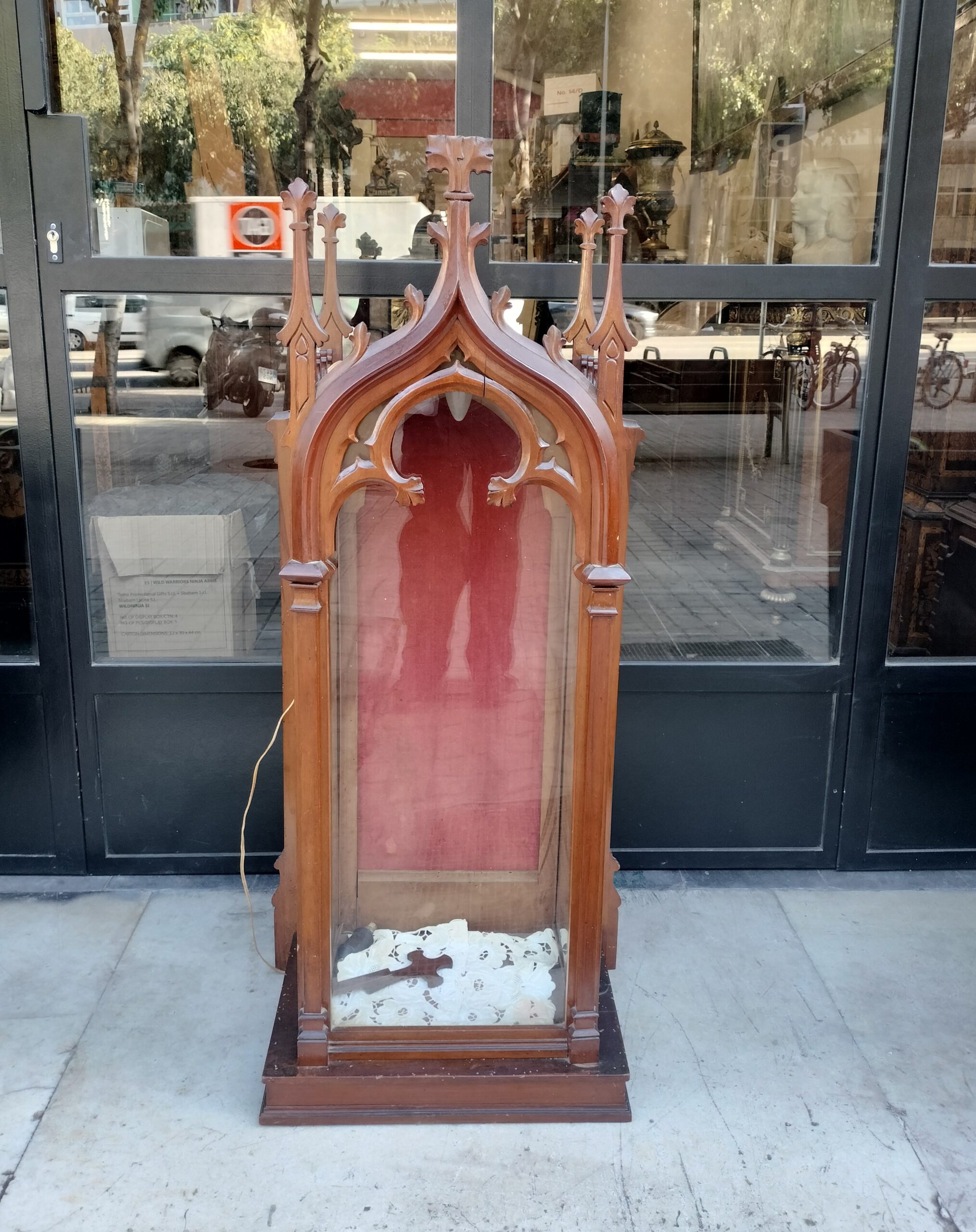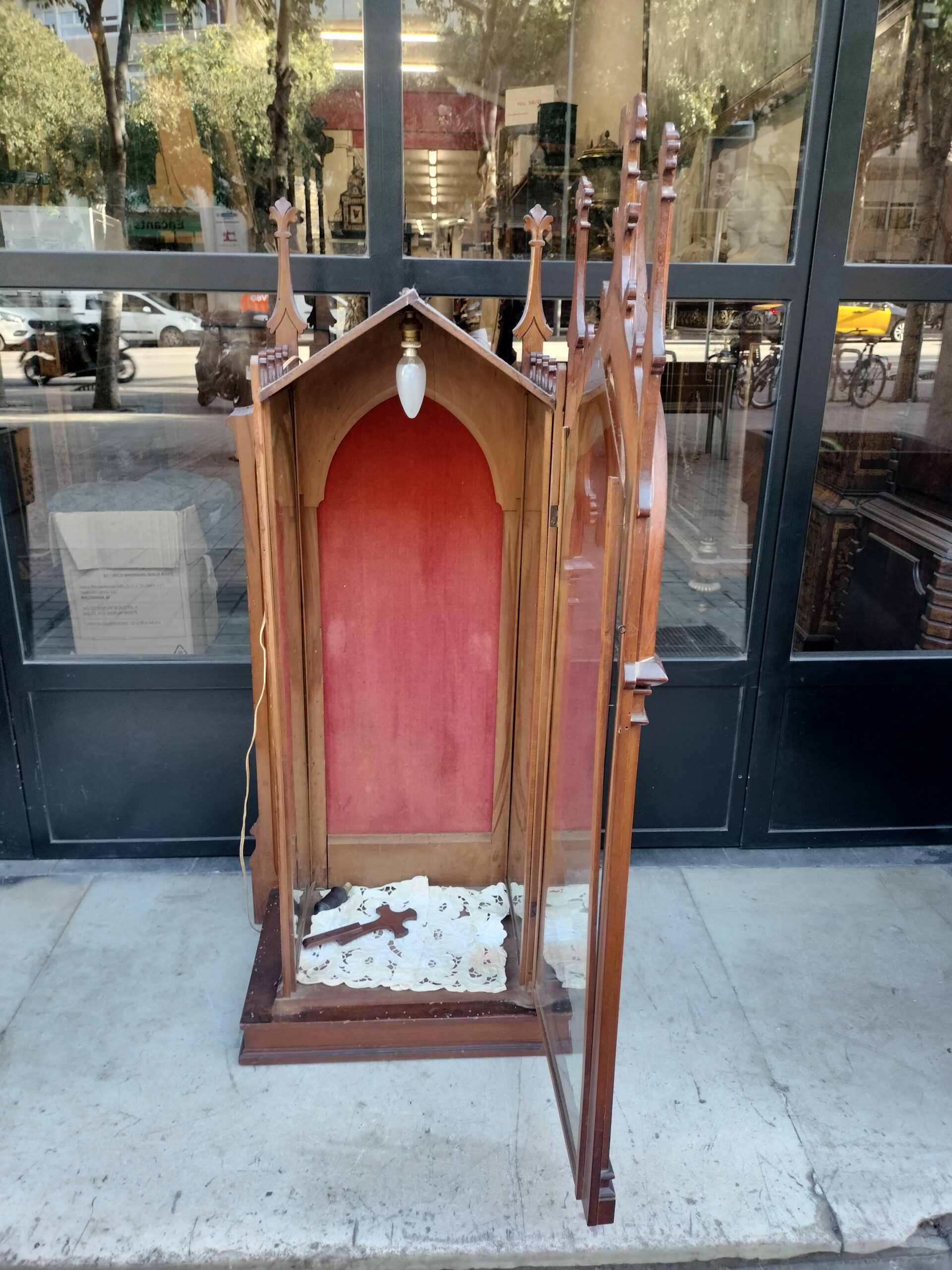 VER IMÁGENES PARA COMPROBAR EL ESTADO REAL. LAS IMÁGENES FORMAN PARTE DE LA DESCRIPCIÓN. LOS PRECIOS DE EXPEDICIÓN SON ORIENTATIVOS. CONTACTE CON NOSOTROS PARA CALCULAR EL PRECIO DE ENVÍO SEGÚN SU CASO. CAPILLA O HORNACINA PARA SANTO. ESTILO HISTORICISTA, NEOGÓTICO. PRESENTA VARIAS FRACTURAS. EL CRISTAL DE LA PUERTA Y LA VARILLA SE ENCUENTRAN LIGERAMENTE DESJUNTADOS. EL SISTEMA ELÉCTRICO PRECISA RECAMBIO. MEDIDAS APROX: INTERIOR: 31 ANCHO X 25,5 LARGO X 90,5 ALTO EXTERIOR: 45 ANCHO X 31 LARGO X 114,5 ALTO