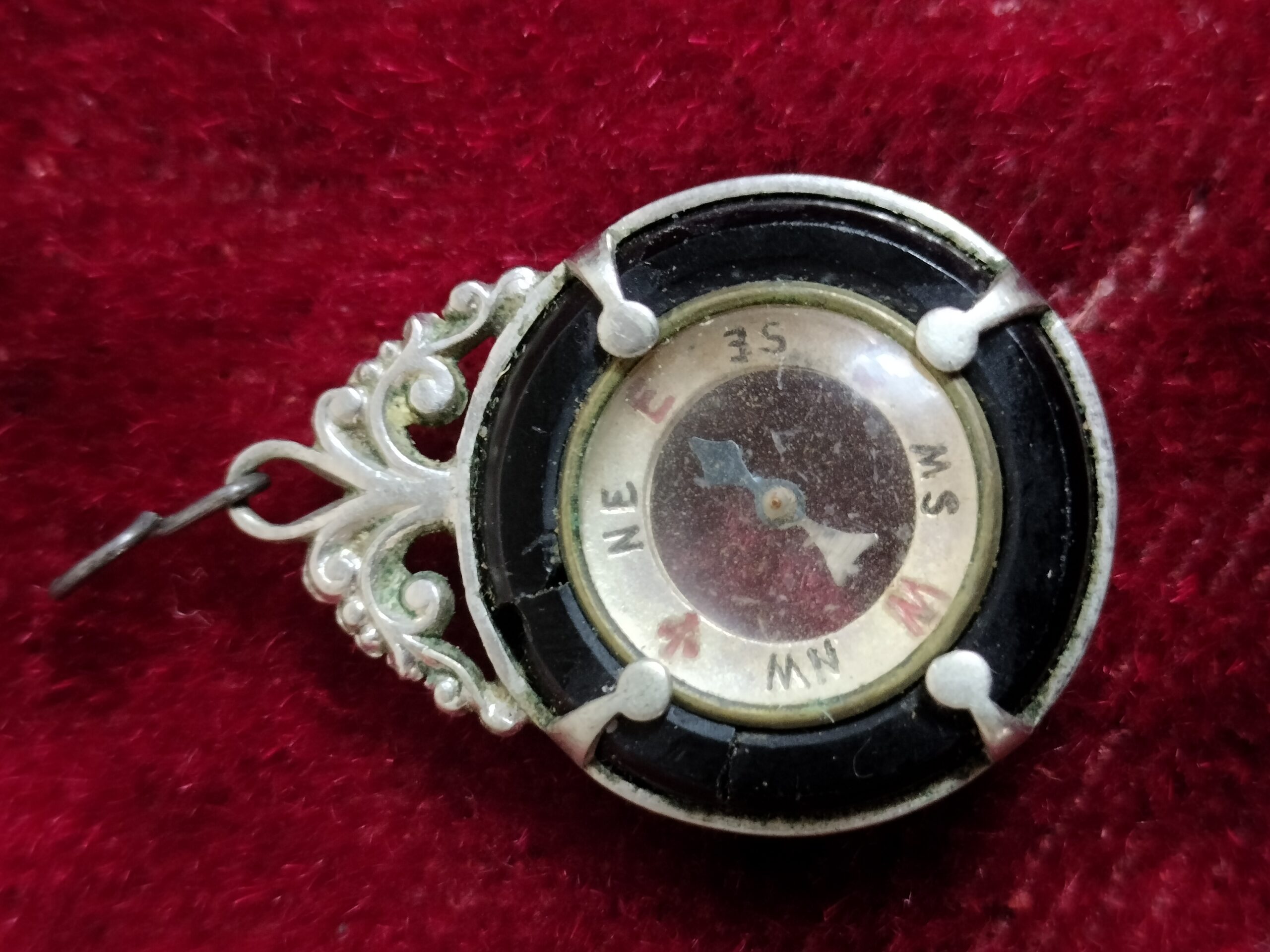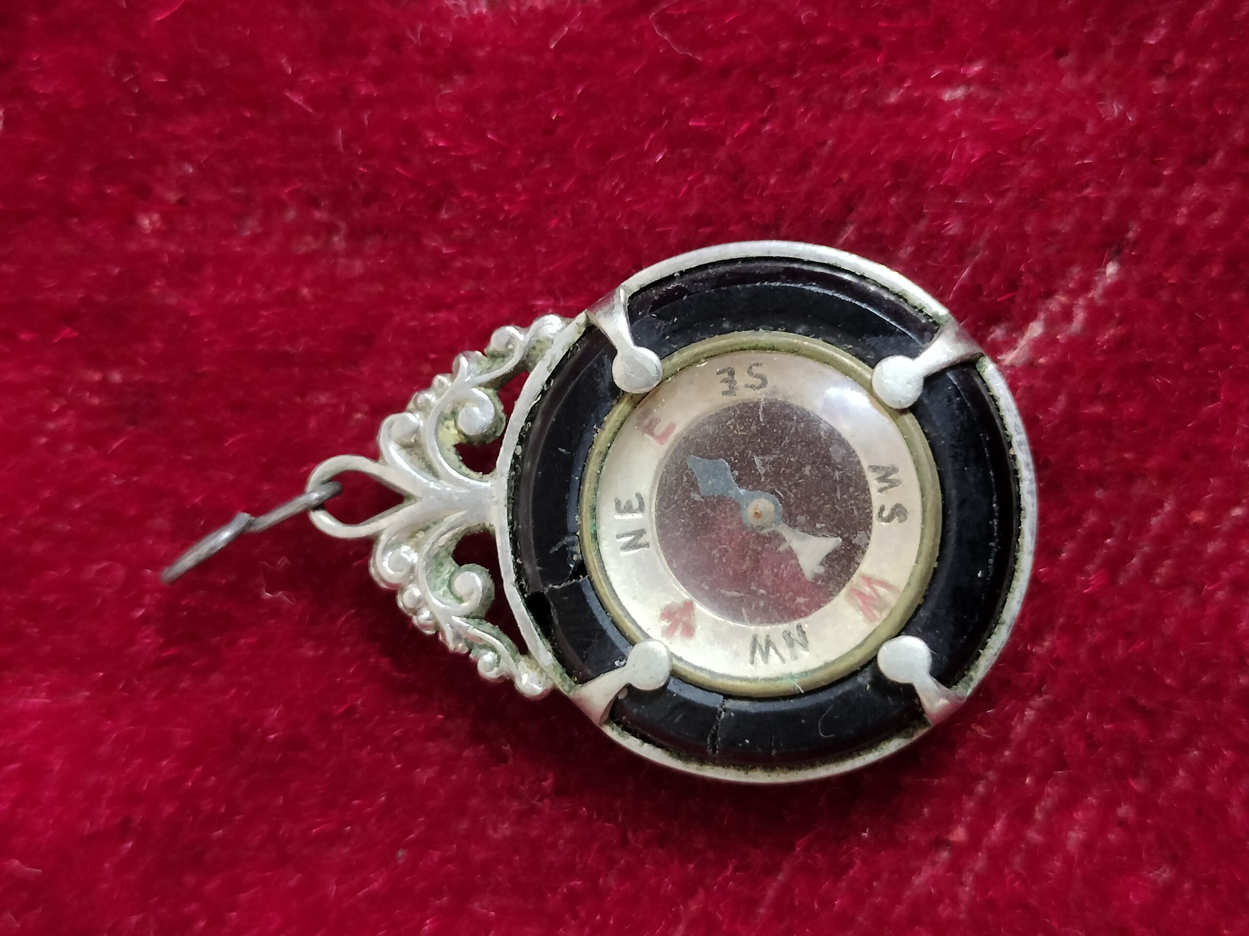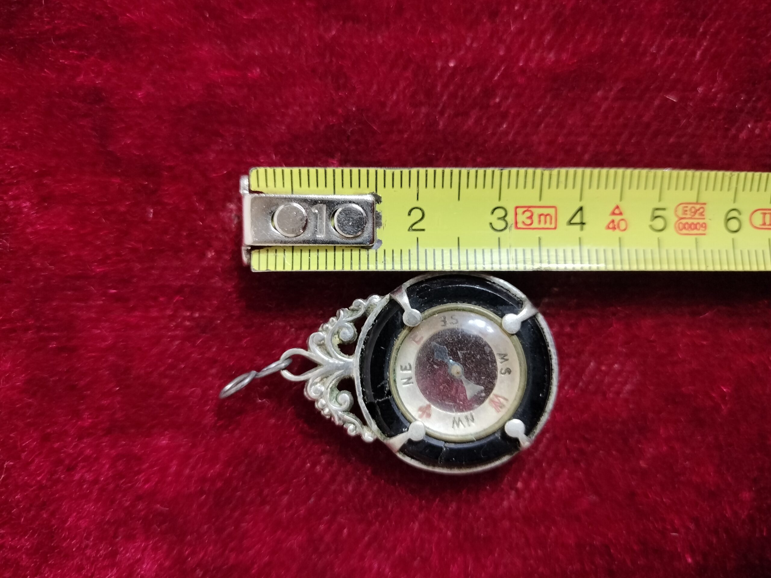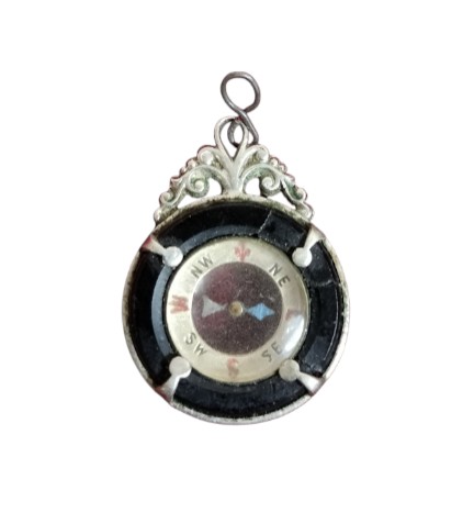 VER IMÁGENES PARA COMPROBAR EL ESTADO REAL. LAS IMÁGENES FORMAN PARTE DE LA DESCRIPCIÓN. PEQUEÑO COLGANTE CON BRÚJULA. RESTOS DE SUCIEDAD Y PEQUEÑAS EROSIONES EN EL CRISTAL. SIN PUNZÓN. SIN MARCA DE AUTOR.