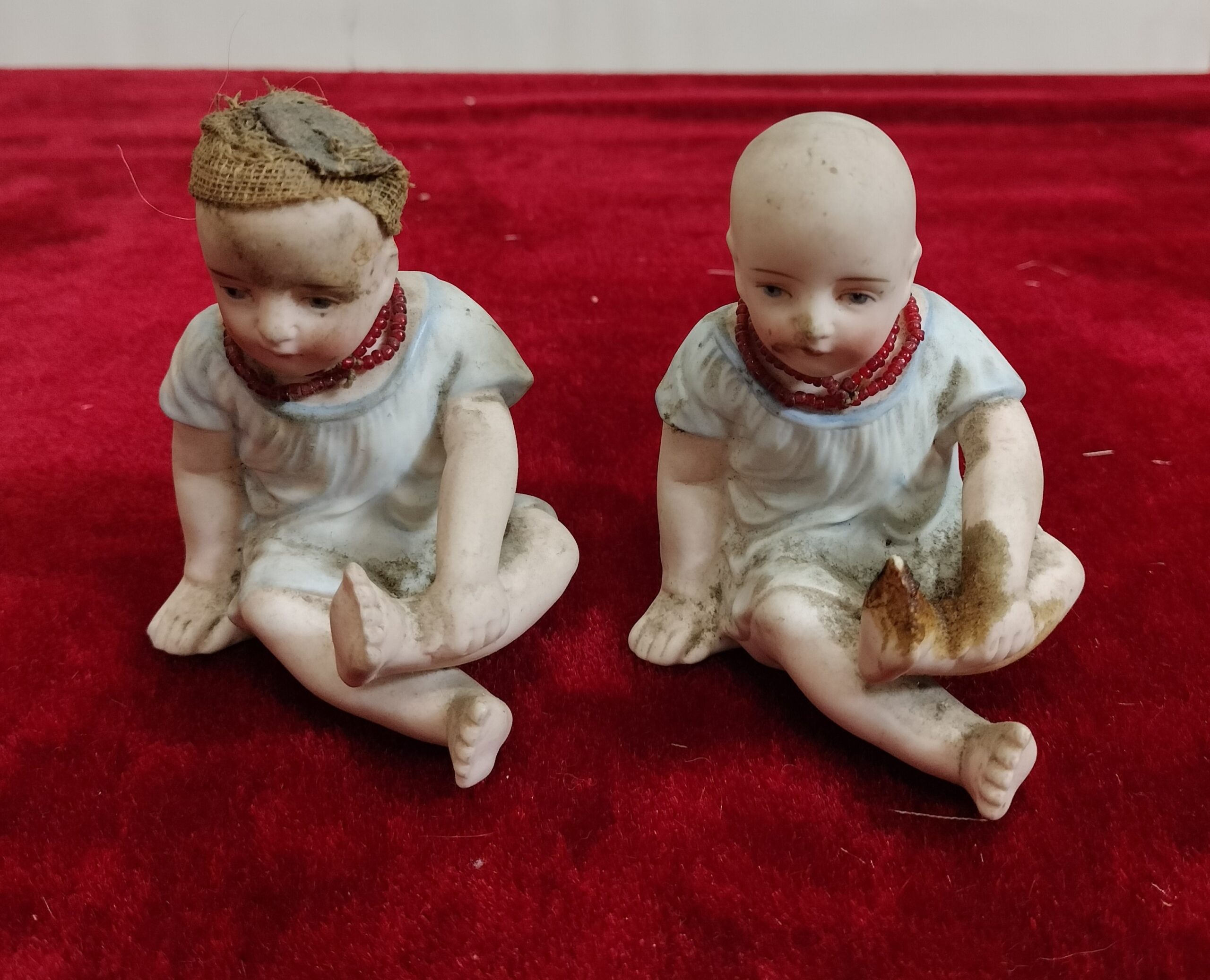 VER IMÁGENES PARA COMPROBAR EL ESTADO REAL. LAS IMÁGENES FORMAN PARTE DE LA DESCRIPCIÓN. PAREJA DE NIÑOS EN BISCUIT PINTADO. SIN MARCA DE AUTOR APARENTE. PRESENTAN NOTABLES RESTOS DE SUCIEDAD. PRECISAN LIMPIEZA. SOLO SE CONSERVA EL GORRO DE UNA FIGURA, CON NOTABLES ROTURAS.
