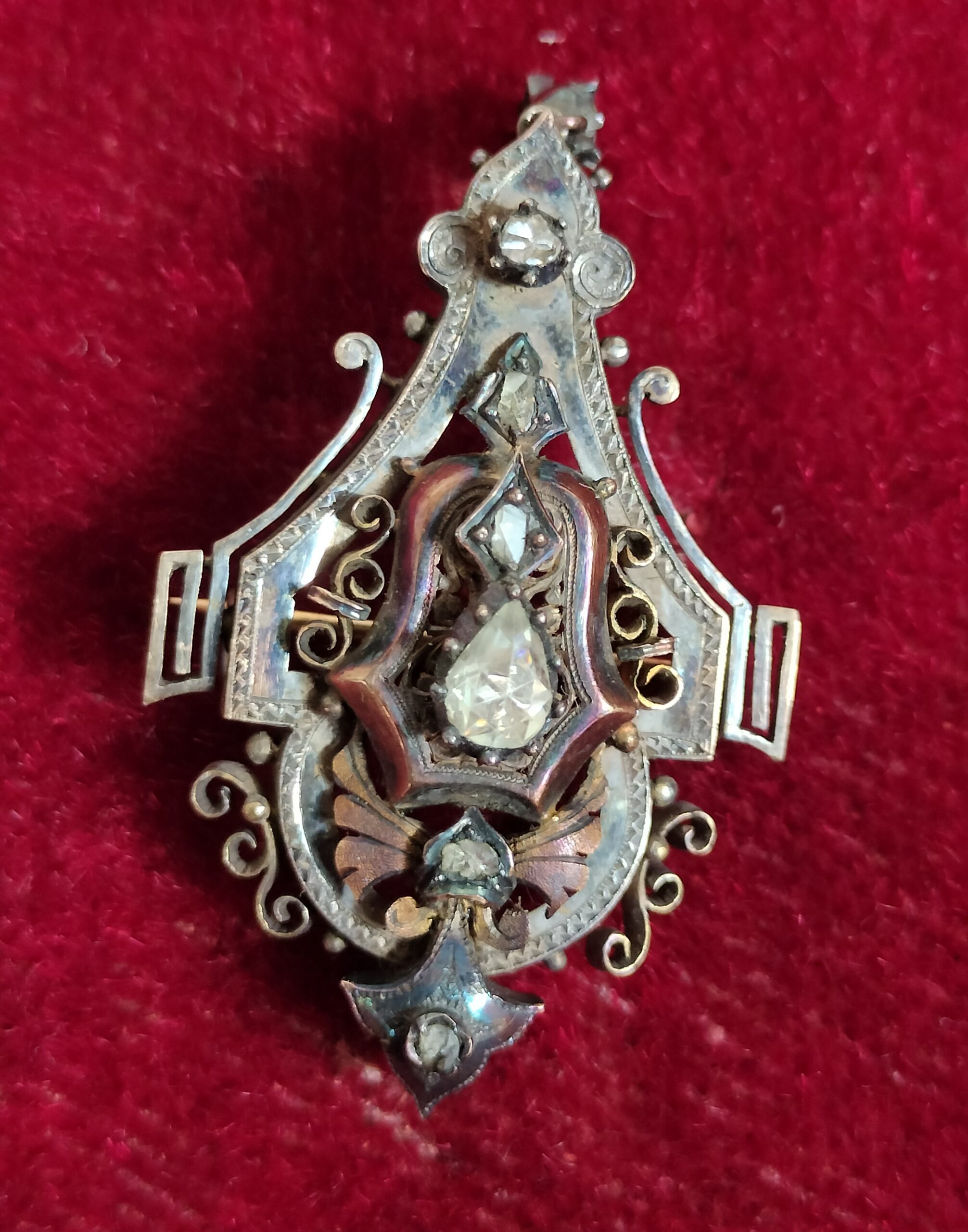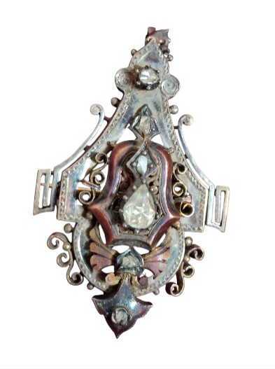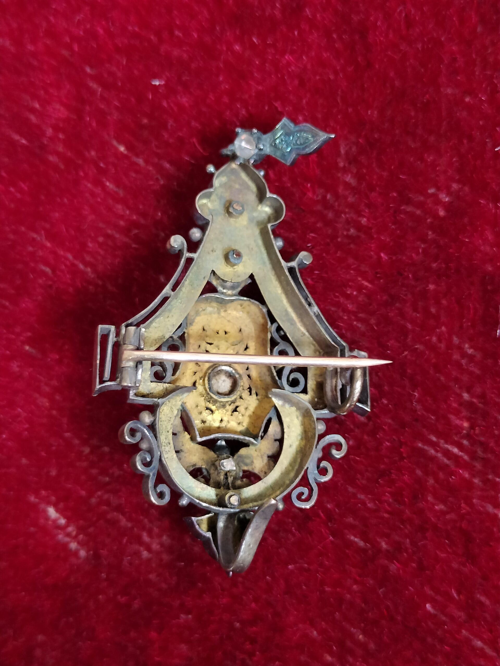 BROCHE O COLGANTE DE ESTILO ALFONSINO. ORO 18K Y DIAMANTE. ESPAÑA. SIGLO XIX.