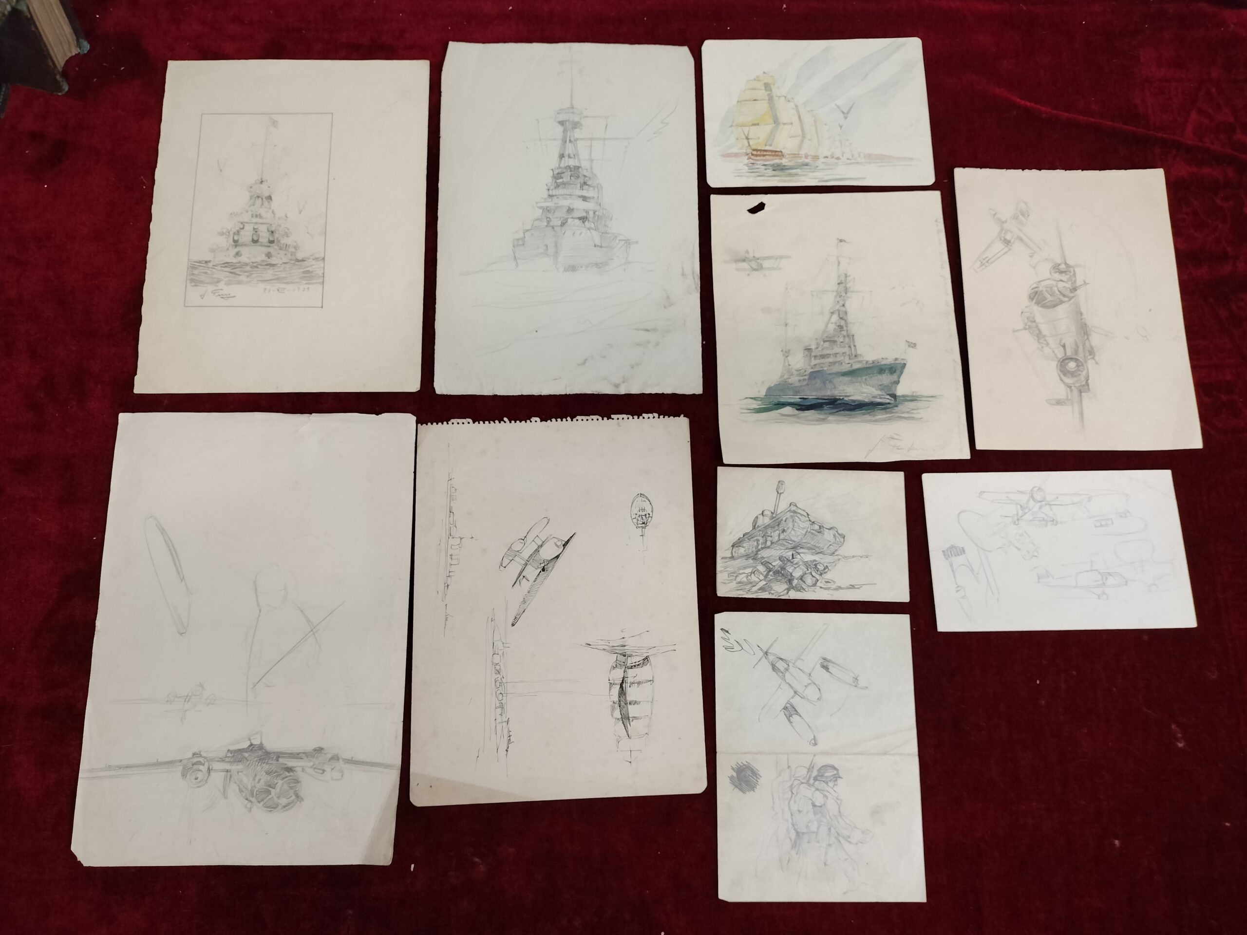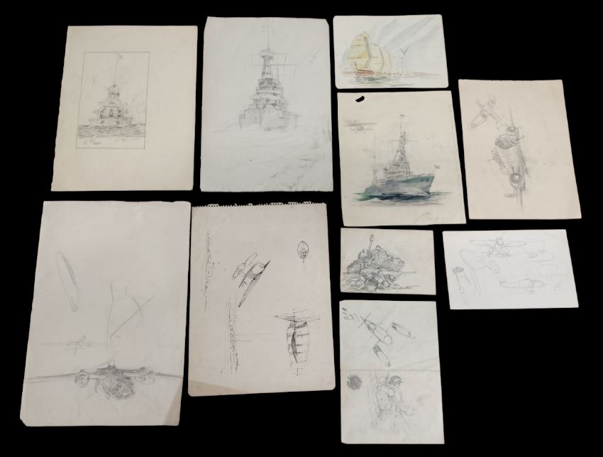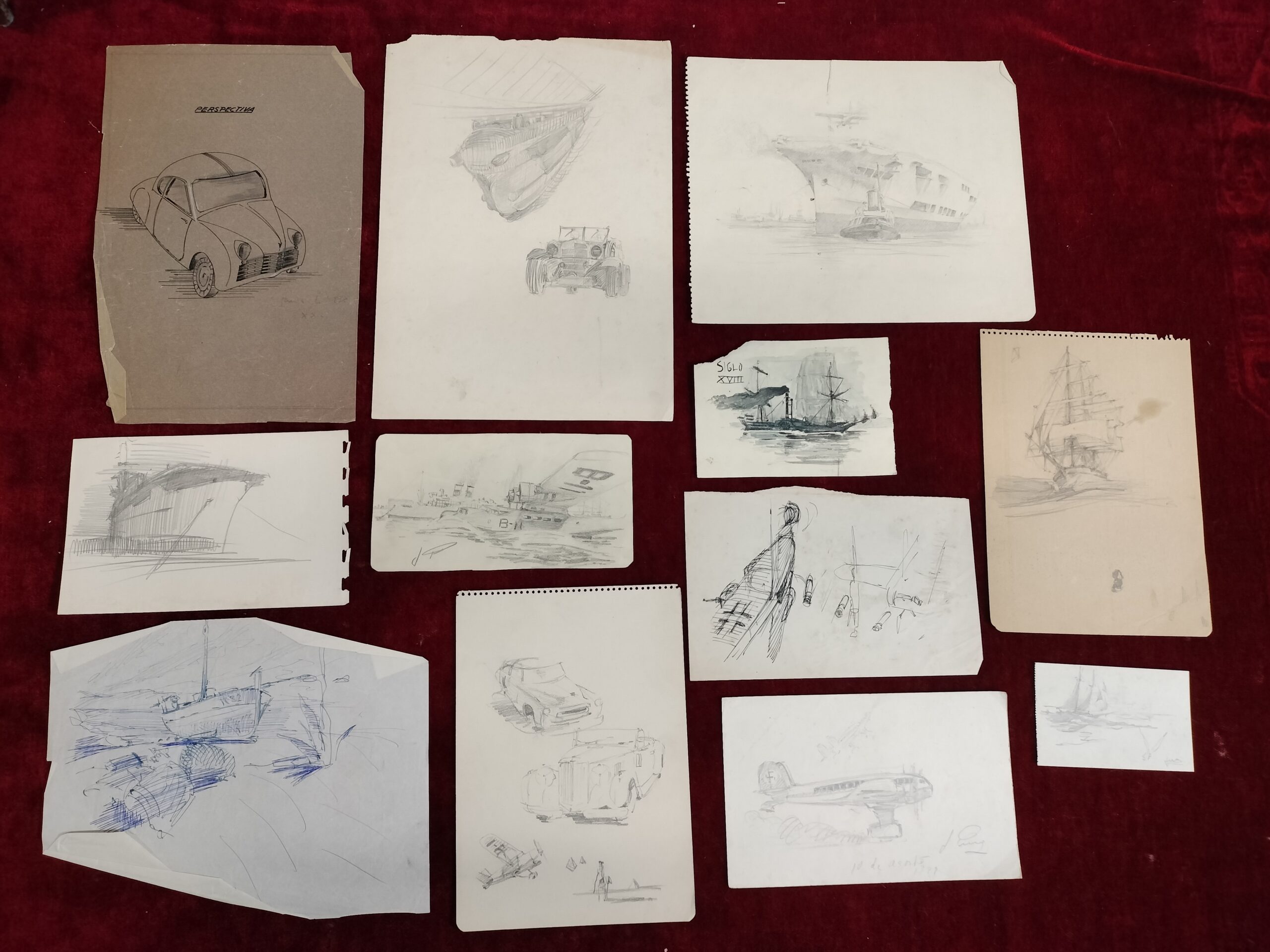 VER IMÁGENES PARA COMPROBAR EL ESTADO REAL.  LAS IMÁGENES FORMAN PARTE DE LA DESCRIPCIÓN.  COLECCIÓN DE 25 DIBUJOS SOBRE PAPEL.  TÉCNICAS VARIAS: CARBONCILLO, ACUARELA, TINTA, ETCÉTERA.  COCHES, BUQUES DE GUERRA, AVIONES, ETC.  VARIAS DIMENSIONES.  SIN ENMARCAR.  ALGUNAS CON FIRMA MANUSCRITA Y FECHA. ILEGIBLE.  BUEN ESTADO GENERAL. PLIEGUES EN LOS BORDES, ALGUN PAPEL LIGERAMENTE AMARILLENTO. VER IMÁGENES.