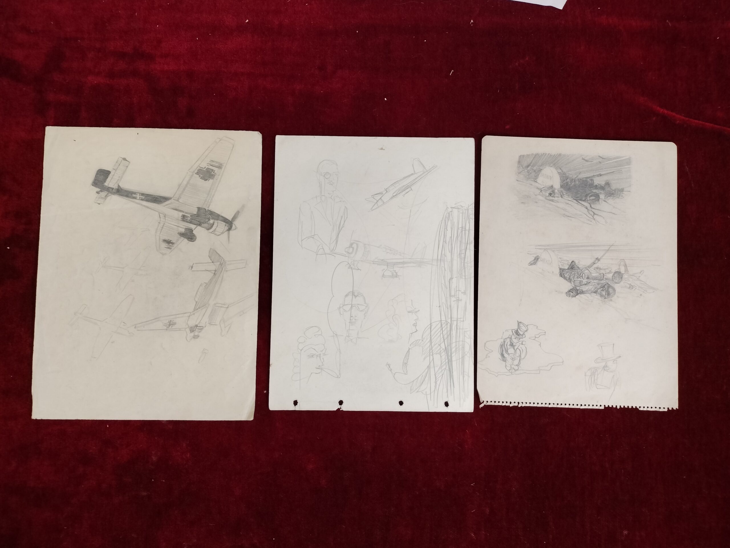 COLECCIÓN DE DIBUJOS DE AUTOMOBILISMO, AERONÁUTICA Y GUERRA. TÉCNICAS VARIAS. ESPAÑA. SIGLO XX.