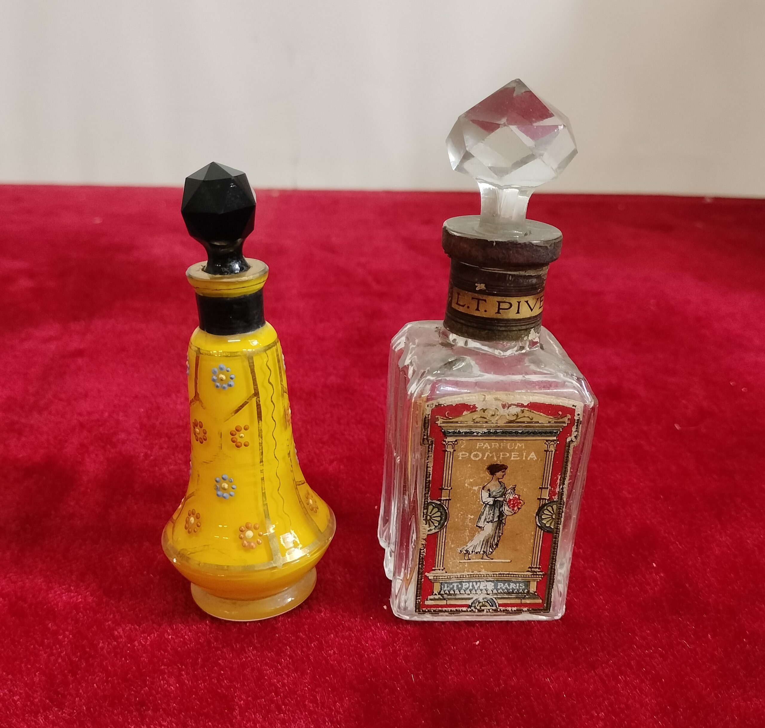 VER IMÁGENES PARA COMPROBAR EL ESTADO REAL. LAS IMÁGENES FORMAN PARTE DE LA DESCRIPCIÓN. PAREJA DE ANTIGUOS FRASCOS DE PERFUME. INCLUYE: FRASCO ART DÉCO. PARFUM POMPEÏA. L.T PIVER PARIS. CON EROSIONES Y PÉRDIDAS EN LA ETIQUETA. PEQUEÑO FRASCO DE CRISTAL. PINTADO A MANO Y CON CENEFAS HEXAGONALES EN DORADO (DIFUMINADAS). MEDIDAS: L.T PIVER: 11,4 ALTO (CON TAPÓN) X 3,5 X 3,5 AMARILLO: 9,5 ALTO X 2,6 X 2,6