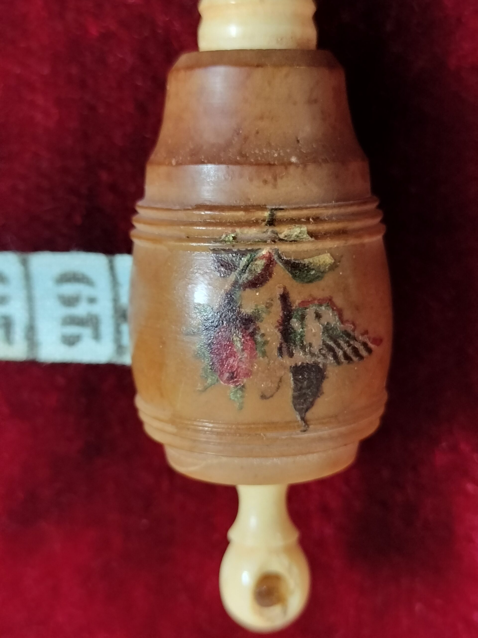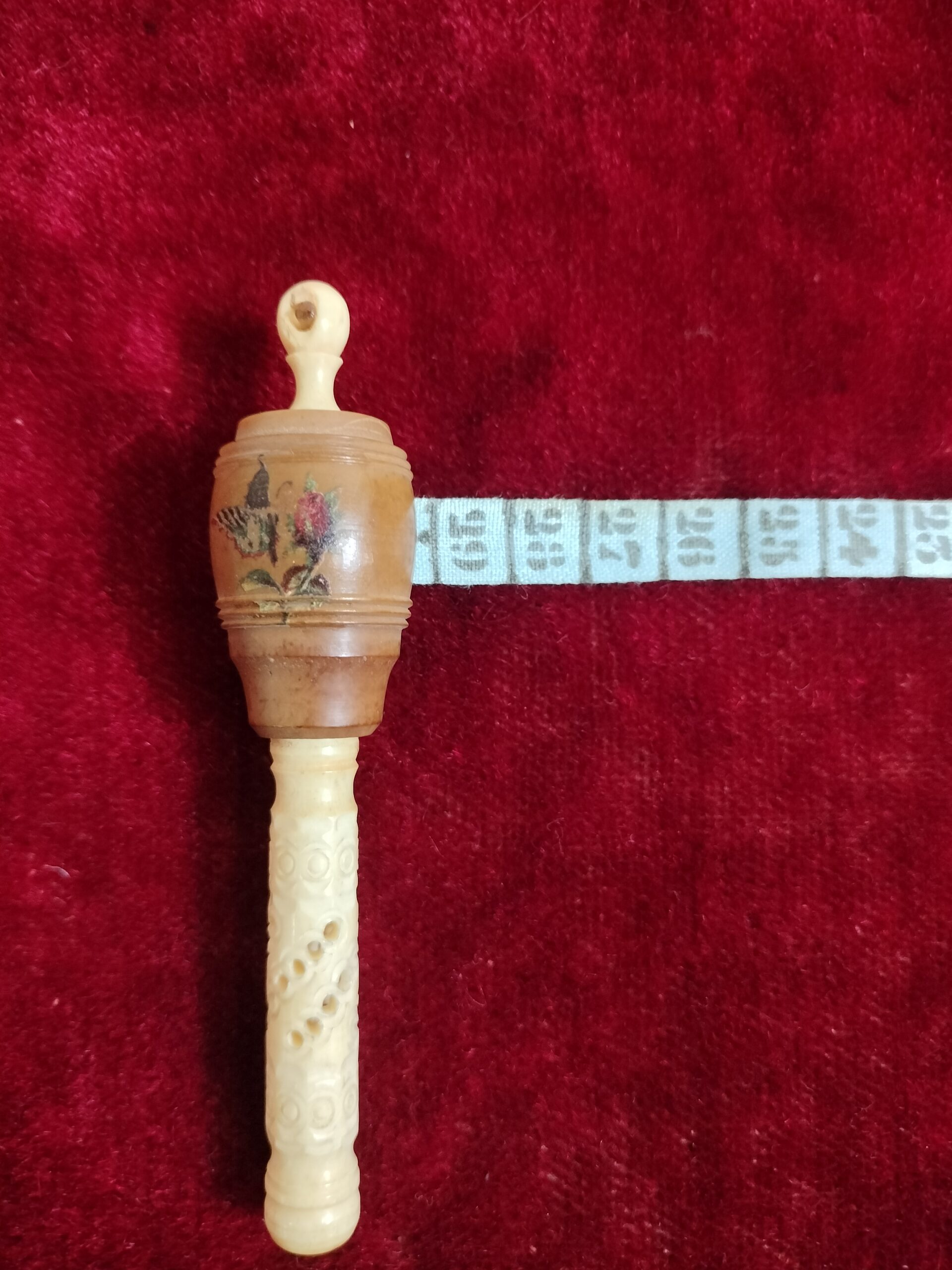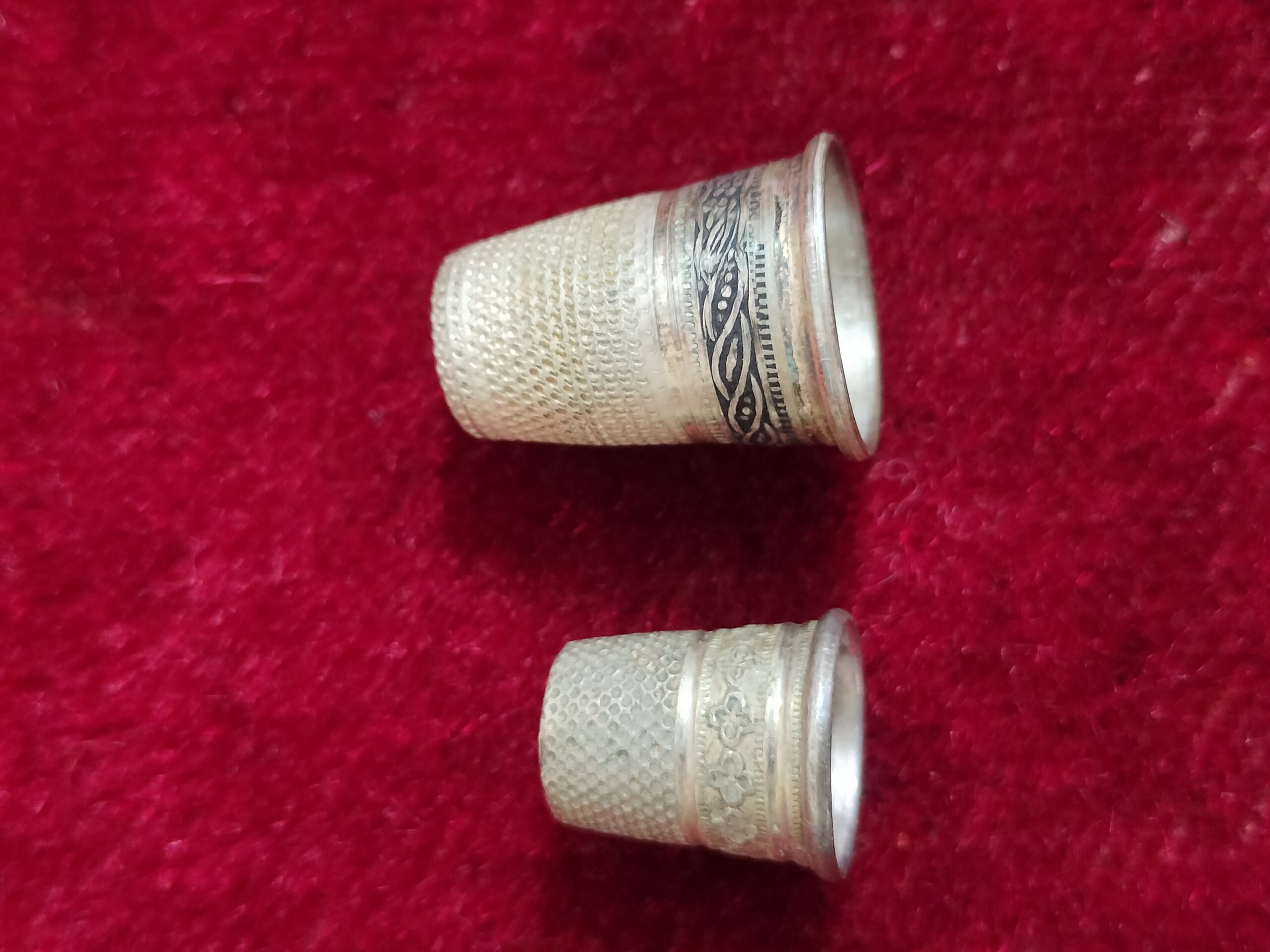 VER IMÁGENES PARA COMPROBAR EL ESTADO REAL. CINTA MÉTRICA DE MADERA Y HILO. MECANISMO DE ROSCA. LA CINTA LLEGA HASTA LOS 100 CM. DEDALES DE PLATA. 4 GRAMOS. EL GRANDE 1,8 CM; EL PEQUEÑO 1,2. BUEN ESTADO GENERAL, LA PINTURA DE LA CINTA SE ENCUENTRA BASTANTE DIFUMINADA.