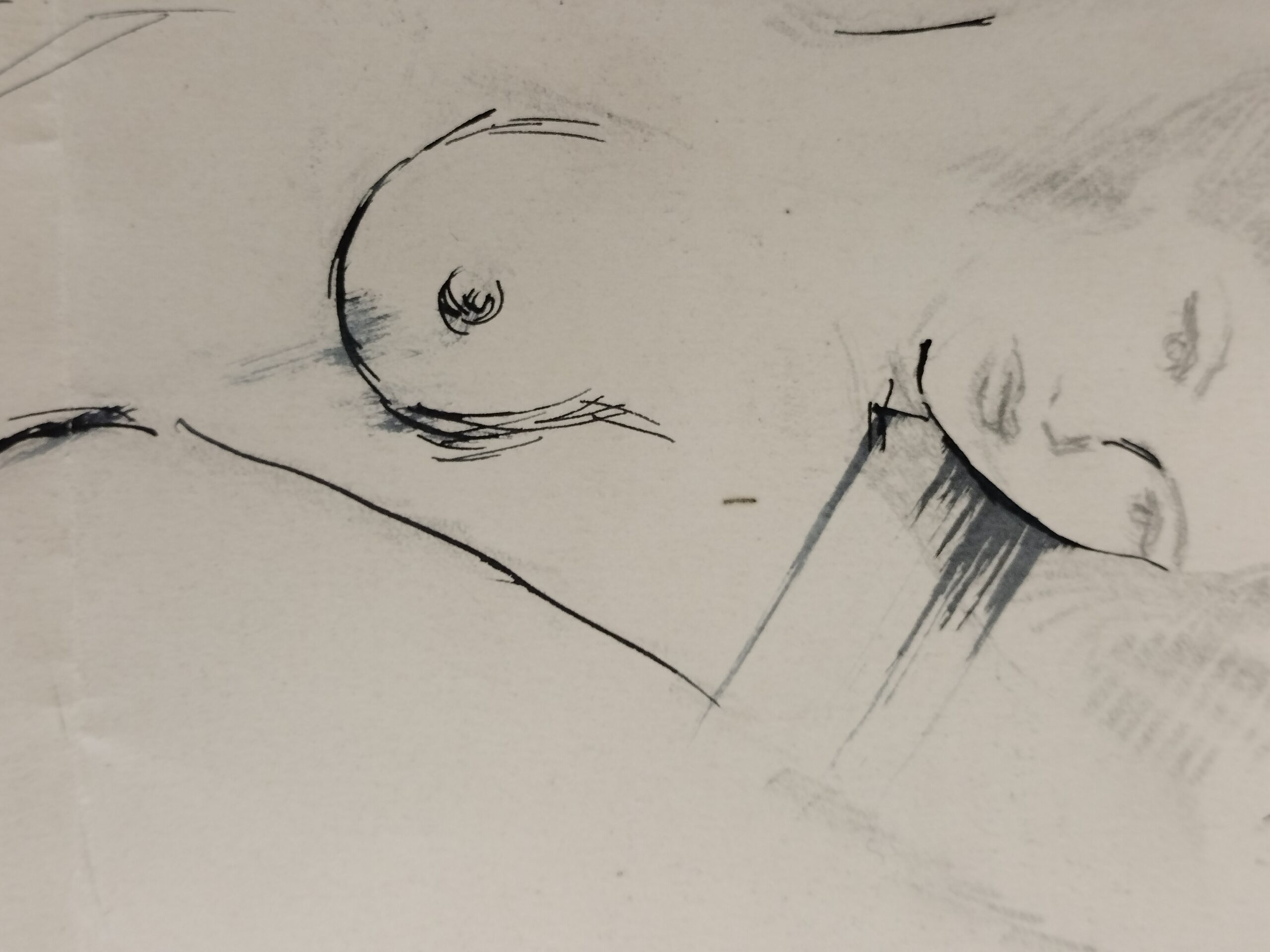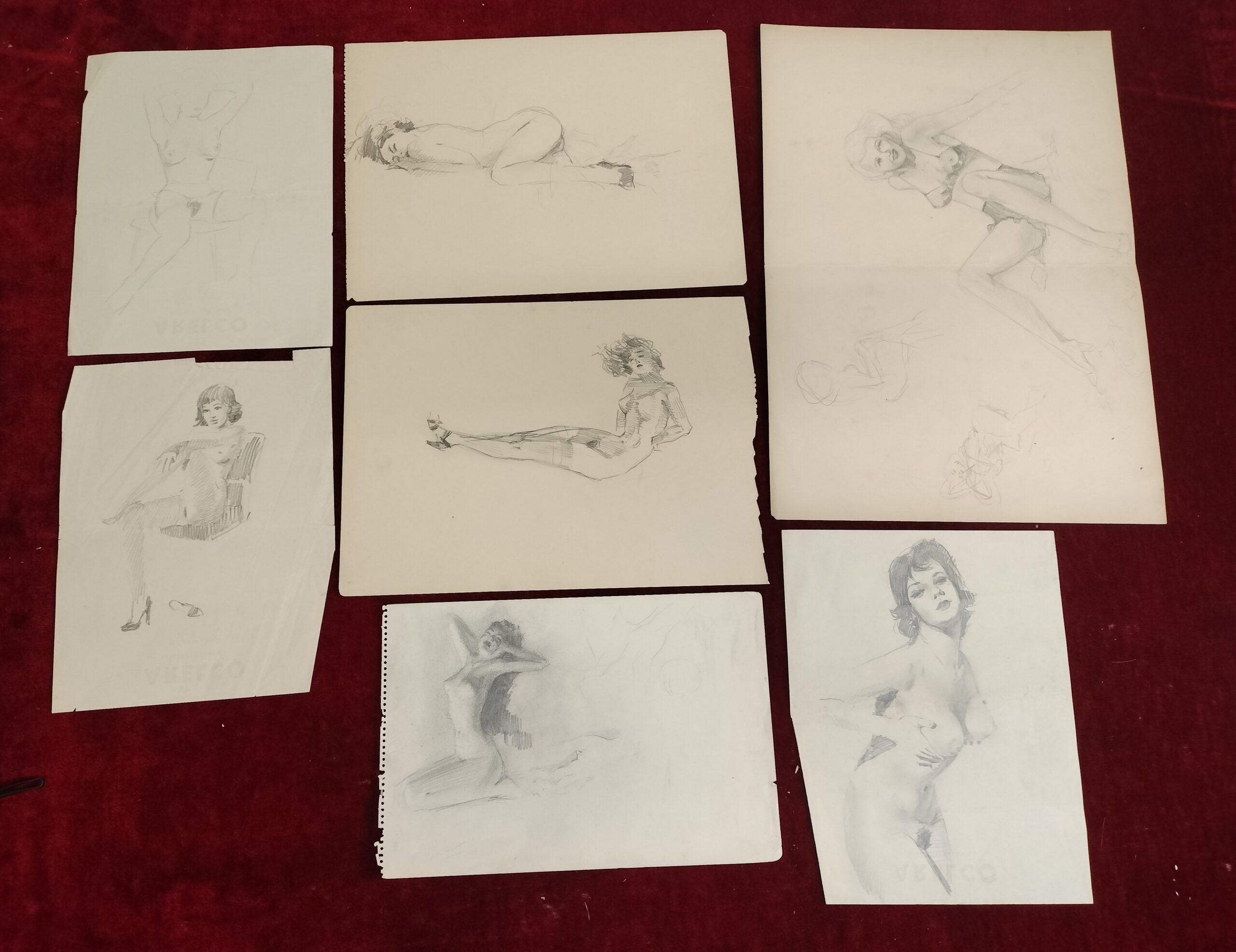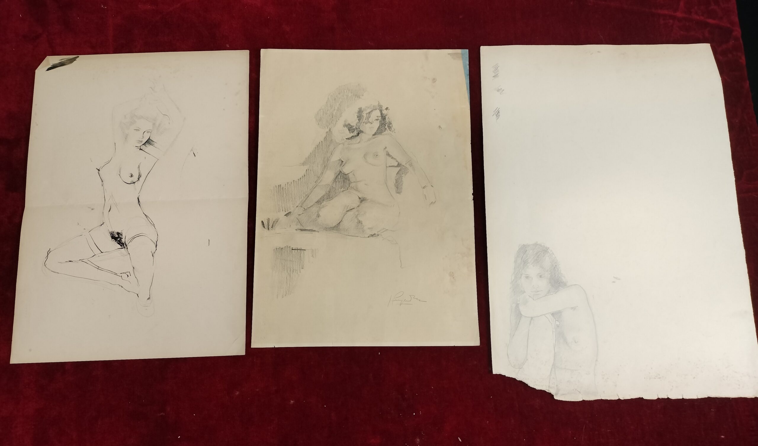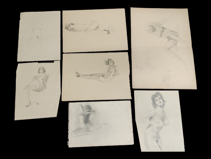 VER IMÁGENES PARA COMPROBAR EL ESTADO REAL.  LAS IMÁGENES FORMAN PARTE DE LA DESCRIPCIÓN.  COLECCIÓN DE DIBUJOS DE DESNUDOS FEMENINOS.  AL CARBÓN, SOBRE PAPEL.  FIRMA ILEGIBLE.  DIMENSIONES VARIAS.  CONJUNTO DE DIEZ PAPELES, ALGUNOS PLEGADOS Y CON DIBUJOS EN EL INTERIOR.  ALGUNAS EROSIONES Y PLIEGUES EN LOS BORDES.