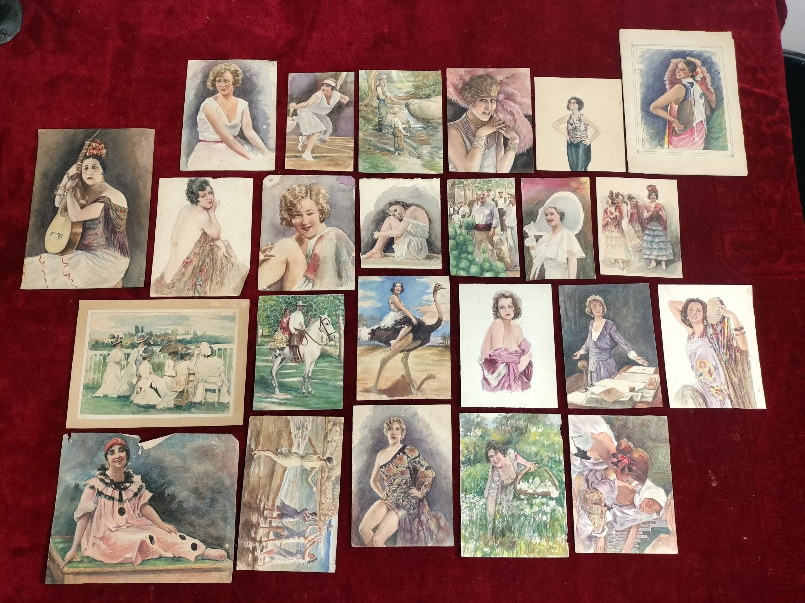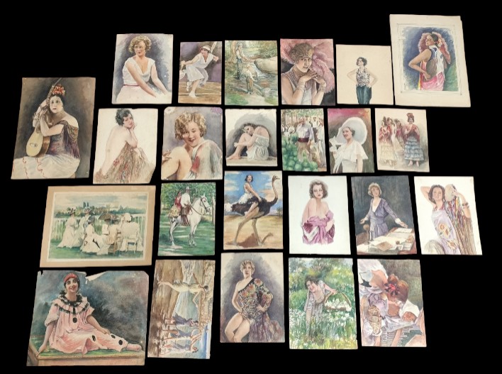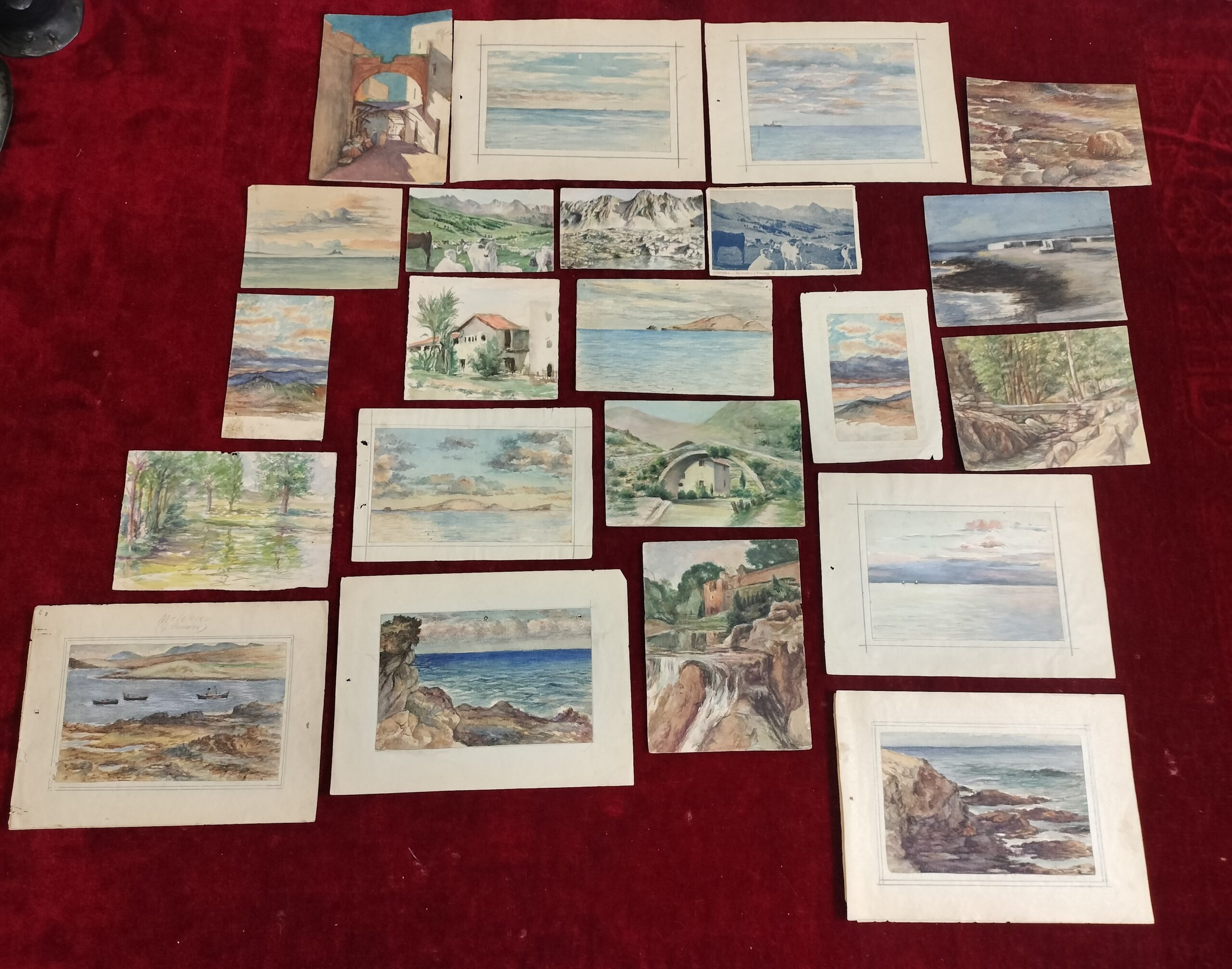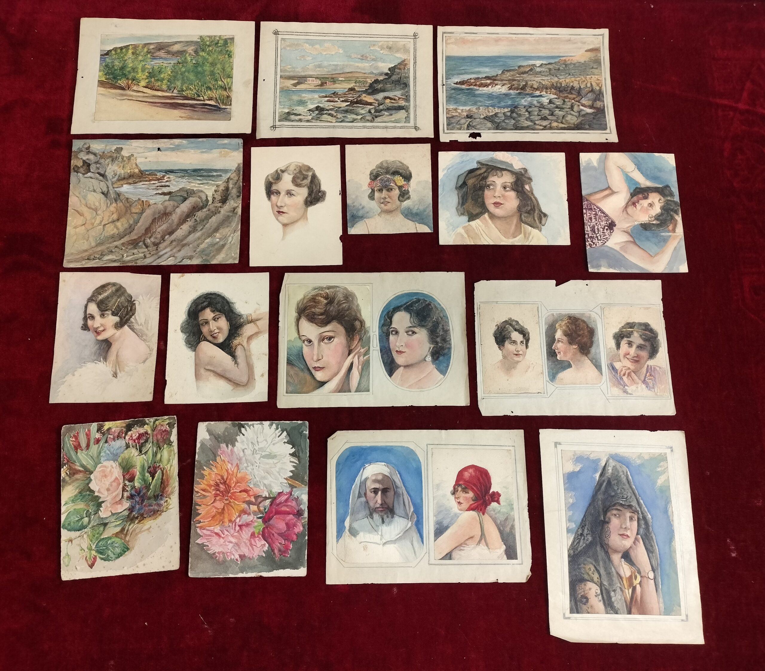 COLECCIÓN DE 76 ACUARELAS. PAISAJES, FIGURAS, FLORES, ETC. SIN FIRMAR. ESPAÑA. C. 1920-30