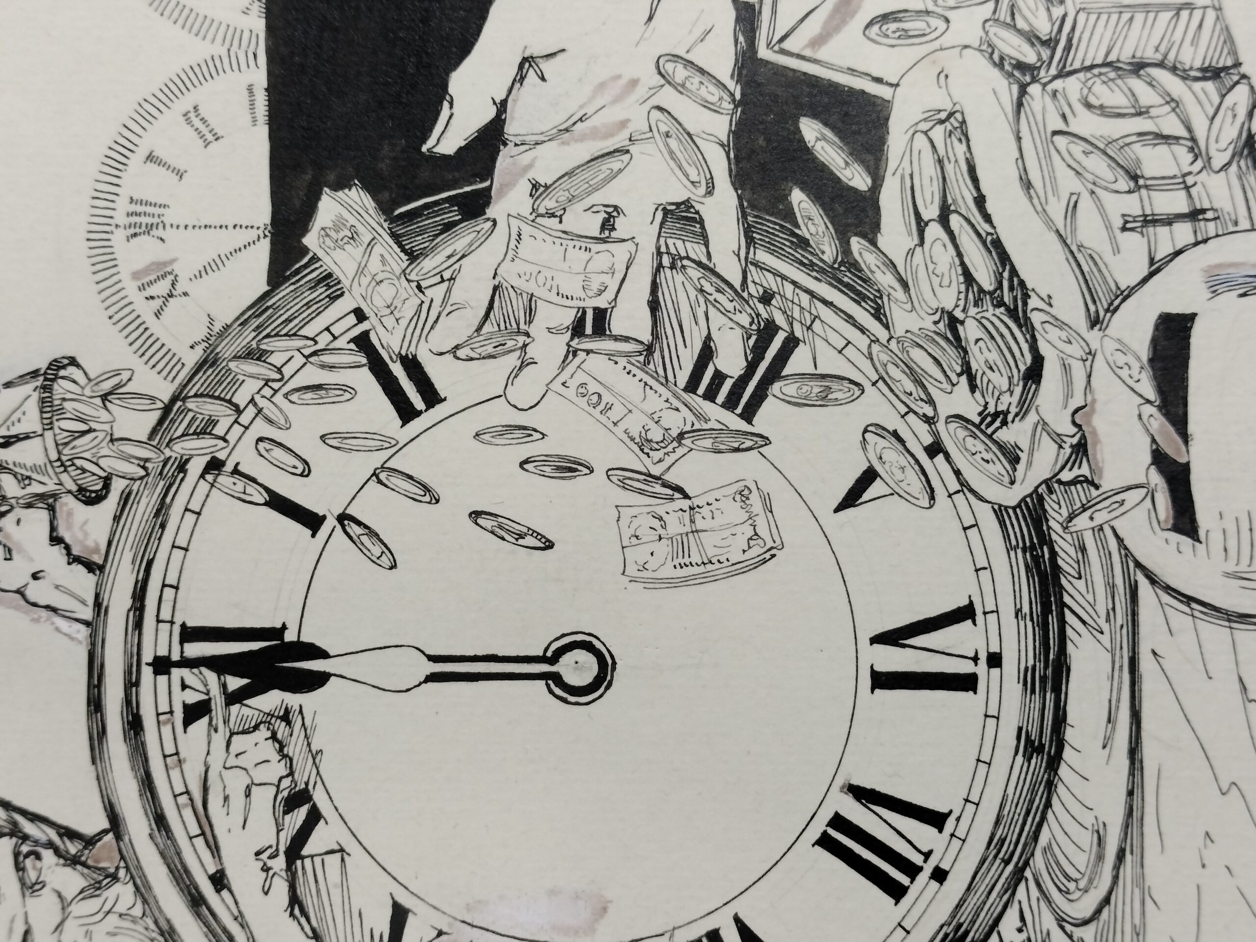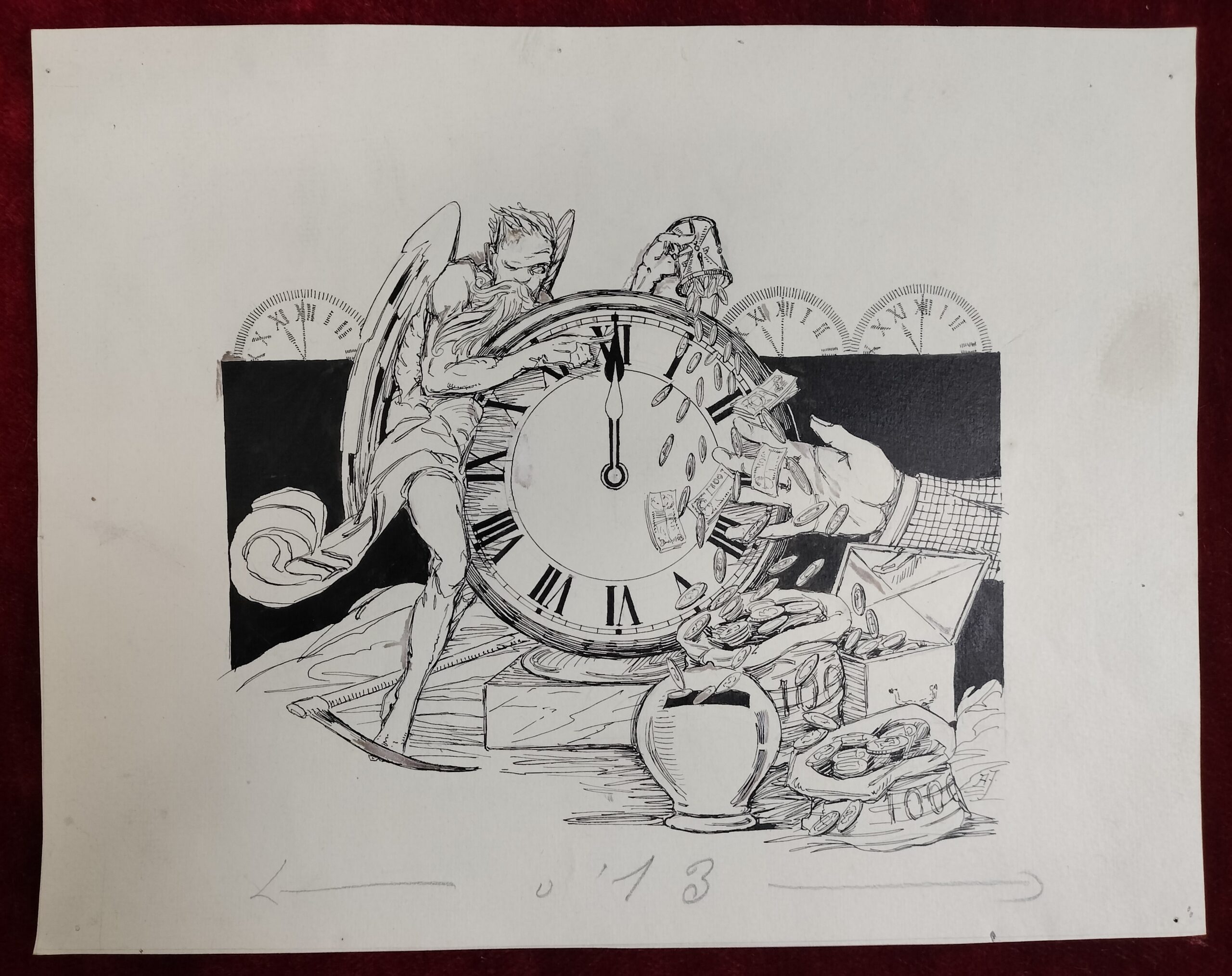 VANITAS. DIBUJO PARA ILUSTRACIÓN. FIRMADO AJ. TINTA SOBRE PAPEL. ESPAÑA. SIGLOS XIX-XX