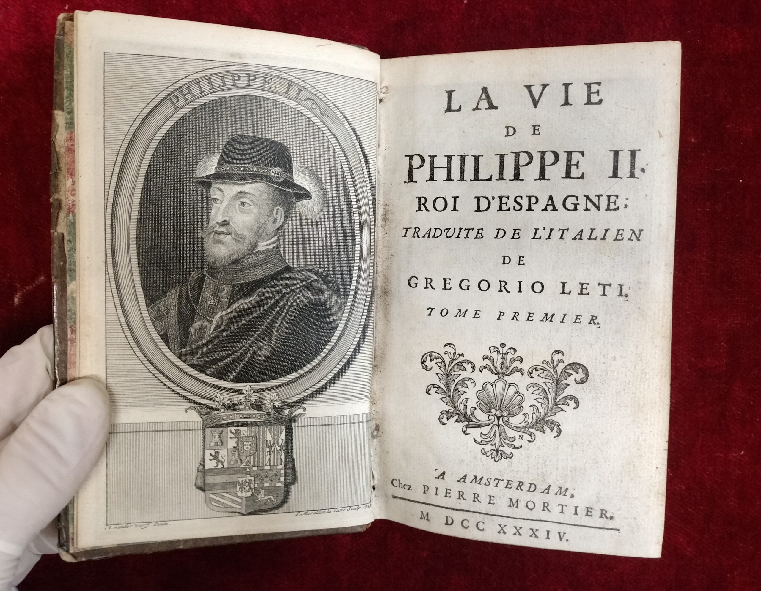 LA VIE DE PHILIPPE II, ROI D’ESPAGNE. GREGORIO LETI. TOMOS I – VI. AMSTERDAM, PIERRE MORTIER. 1734