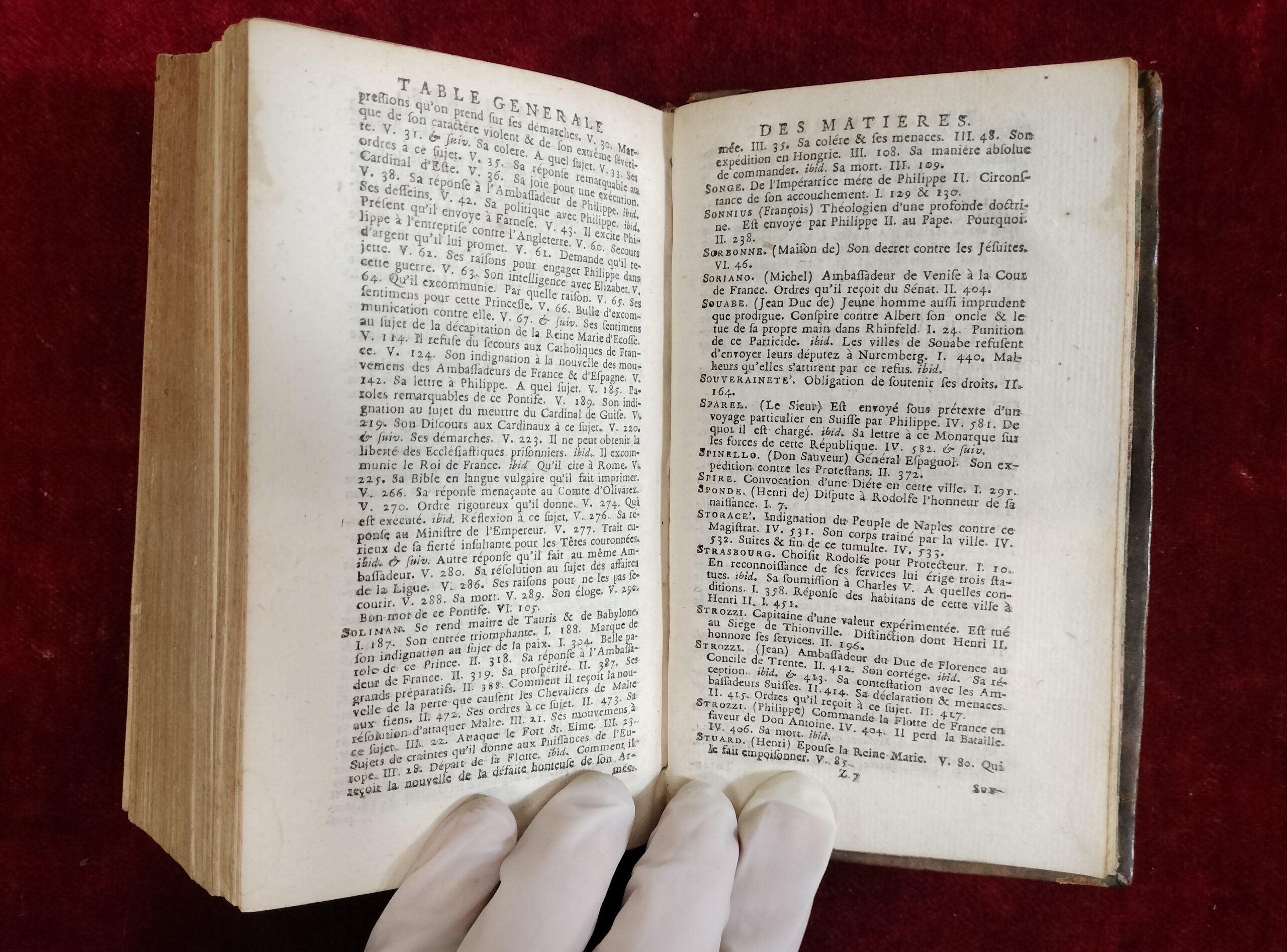 VER IMÁGENES PARA COMPROBAR EL ESTADO REAL. LAS IMÁGENES FORMAN PARTE DE LA DESCRIPCIÓN. LA VIE DE PHILIPPE II, ROI D’ESPAGNE. AMSTERDAM, CHEZ PIERRE MORTIER. MDCCXXXIV. ENCUADERNACIÓN EN PIEL PERGAMINO, LOMOS CON NERVIOS. MUY FATIGADA. GUARDAS DECORADAS AL AGUA, CON EXLIBRIS. EN FRANCÉS, PÁGINAS NUMERADAS. PAPEL VERJURADO, EN BUEN ESTADO GENERAL. LIGERAMENTE ENVEJECIDO. GRABADO EN EL FRONTISPICIO DEL TOMO PRIMERO (RETRATO DEL REY) Y EN LA PRIMERA PÁGINA (ALEGORÍA. LFDB INVIT. F.M LA CAVE SCULP. 1734). + TOMO PRIMERO: 543 PÁG. TOMO SEGUNDO: 534 PÁG. TOMO TERCERO: 562 PÁG. TOMO CUARTO: 586 PÁG. TOMO CINCO: 518 PÁG. TOMO SEIS: 446 PÁG, TABLE GÉNÉRALE DE MATIÉRES.