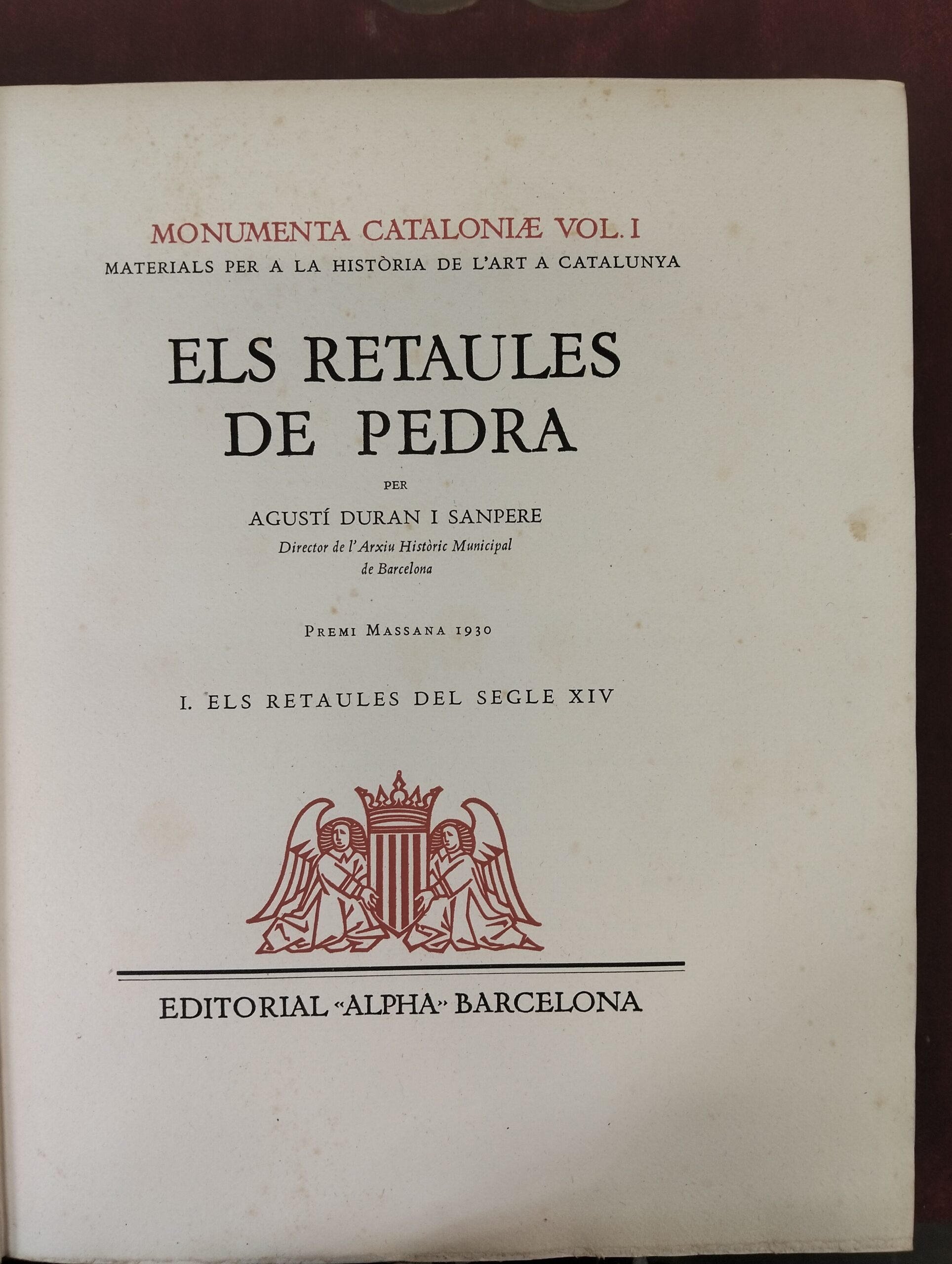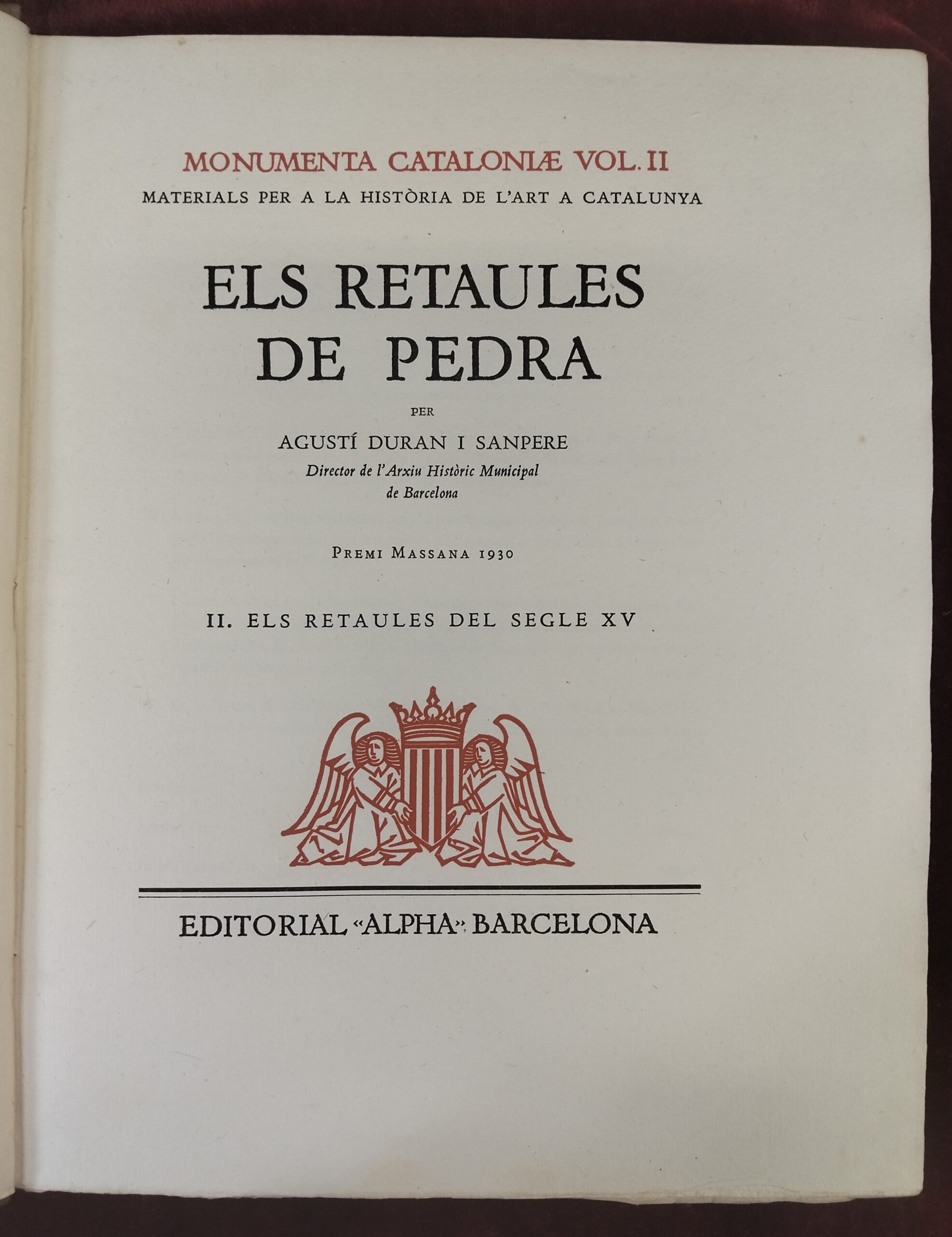 MONUMENTA CATALONIAE. ELS RETAULES DE PEDRA. 2 VOLS. AGUSTÍ DURAN I SANPERE. ALPHA BARCELONA. 1930