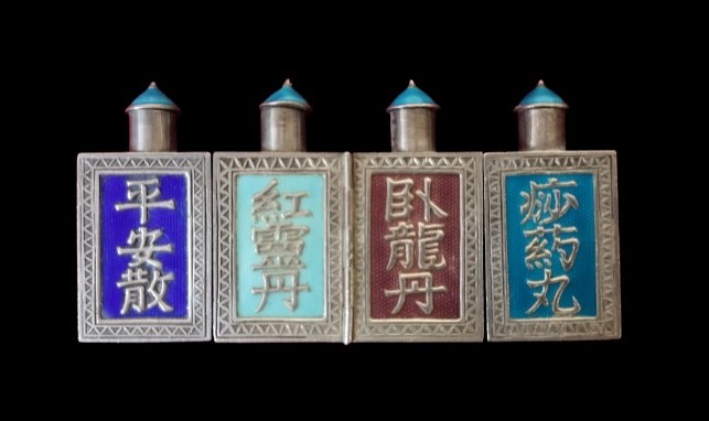 ANTIGUOS FRASCOS DE RAPÉ PLEGABLES. PLATA Y ESMALTE. CHINA. PRINCIPIOS DEL SIGLO XX.