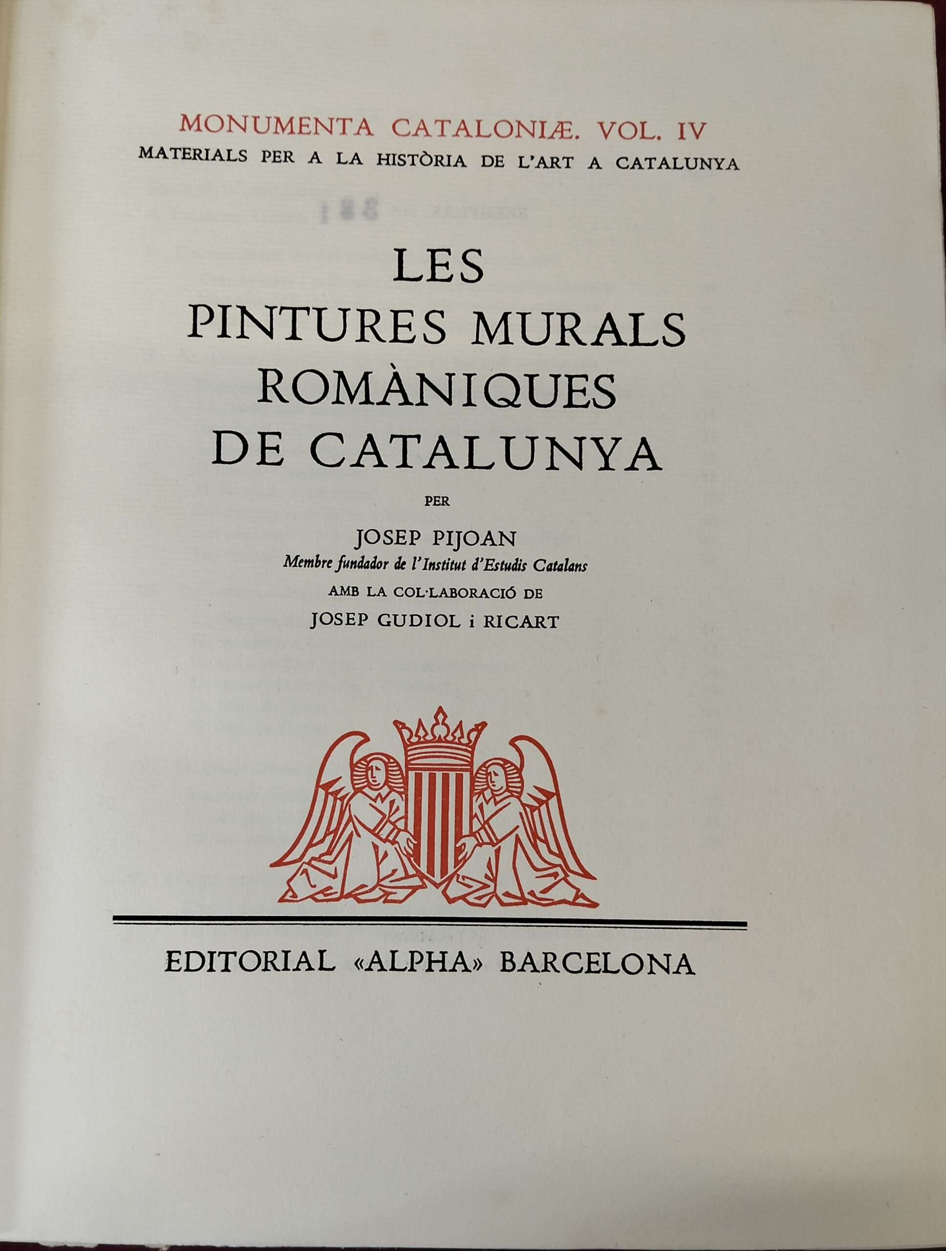 LAS PINTURAS MURALES ROMÁNICAS DE CATALUÑA. MONUMENTA CATALONIAE. VOL. IV 1948.