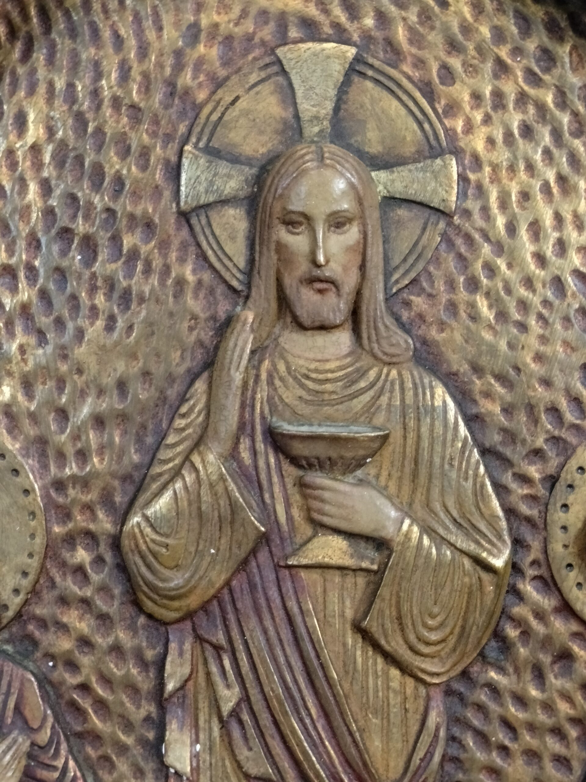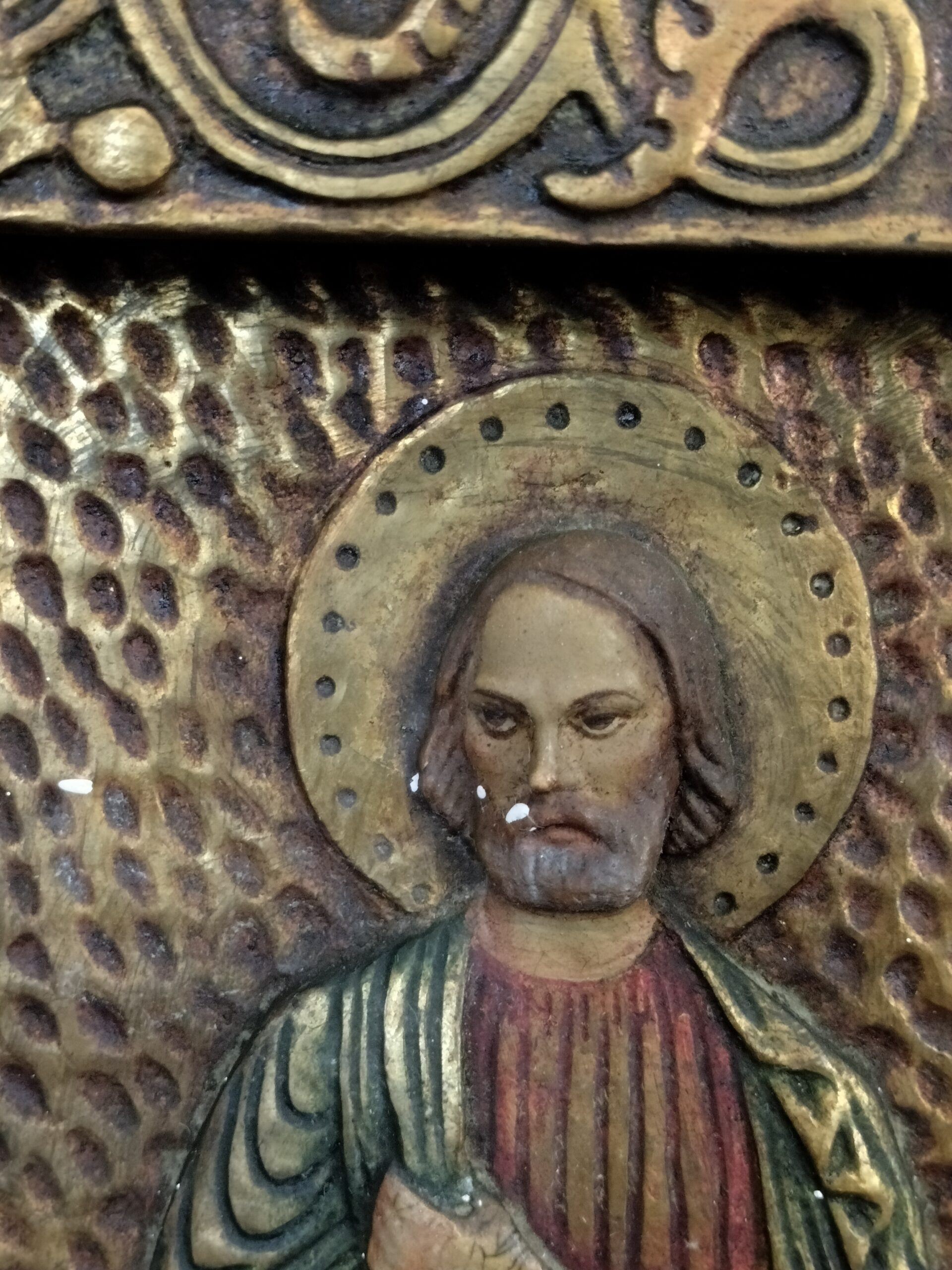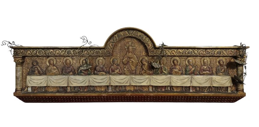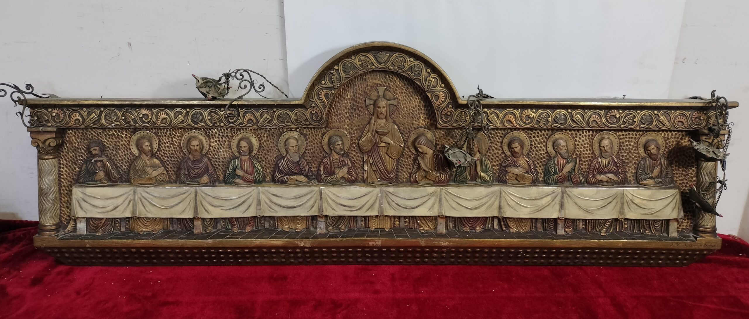 LA ÚLTIMA CENA. BAJORRELIEVE EN ESTUCO Y APLIQUES DE HIERRO. ESPAÑA. SIGLO XX.