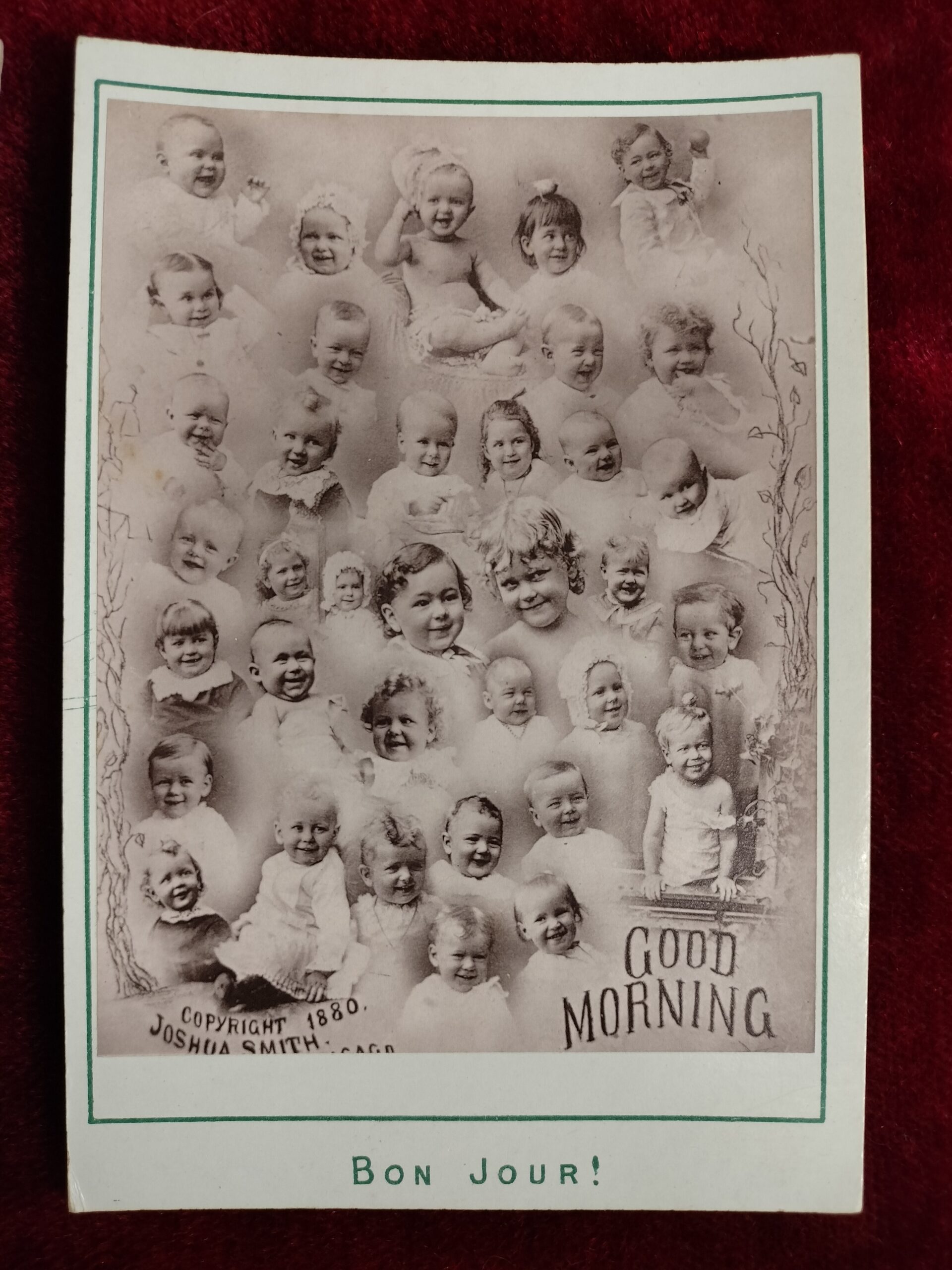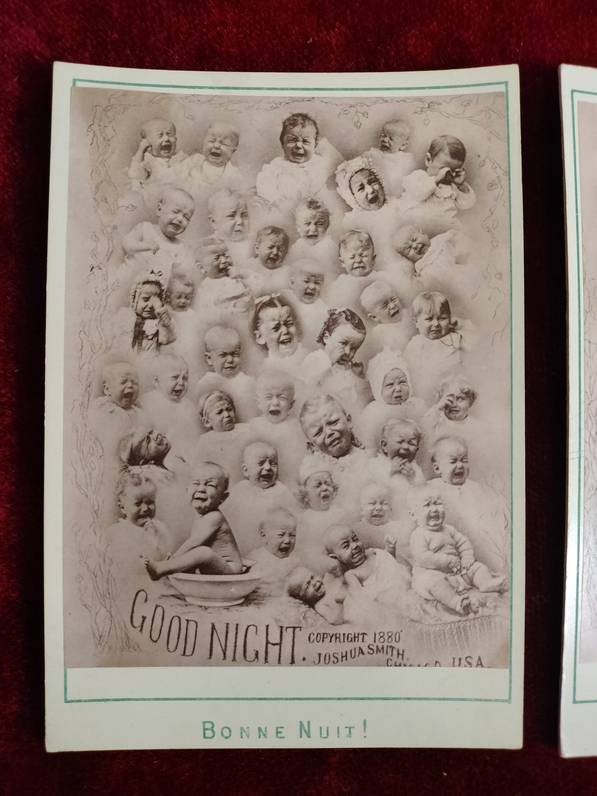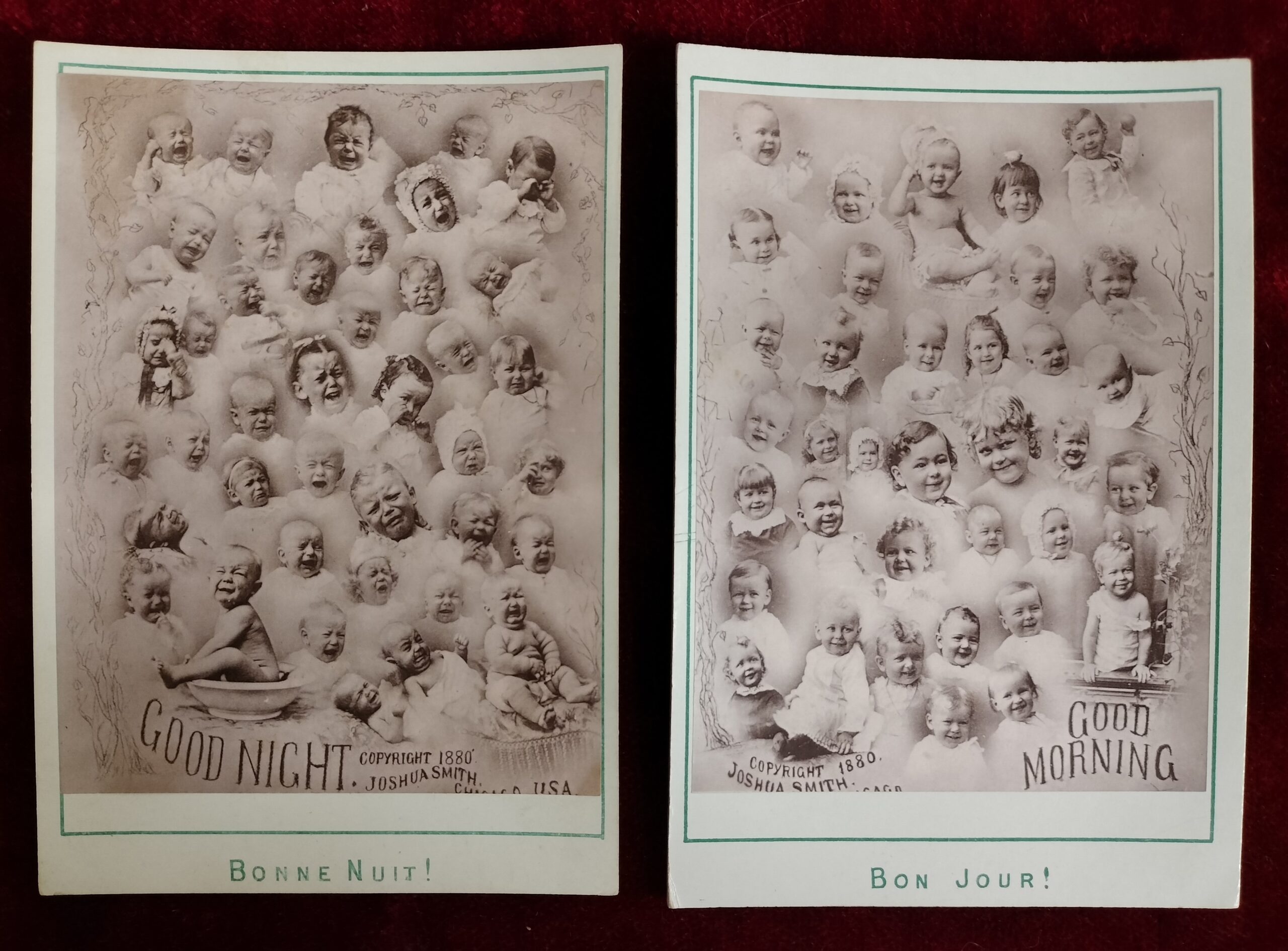 CROMO O POSTAL BONNE NUIT Y BON JOUR. JOSHUA SMITH. IMPRESIÓN FOTOGRÁFICA. EEUU. 1880