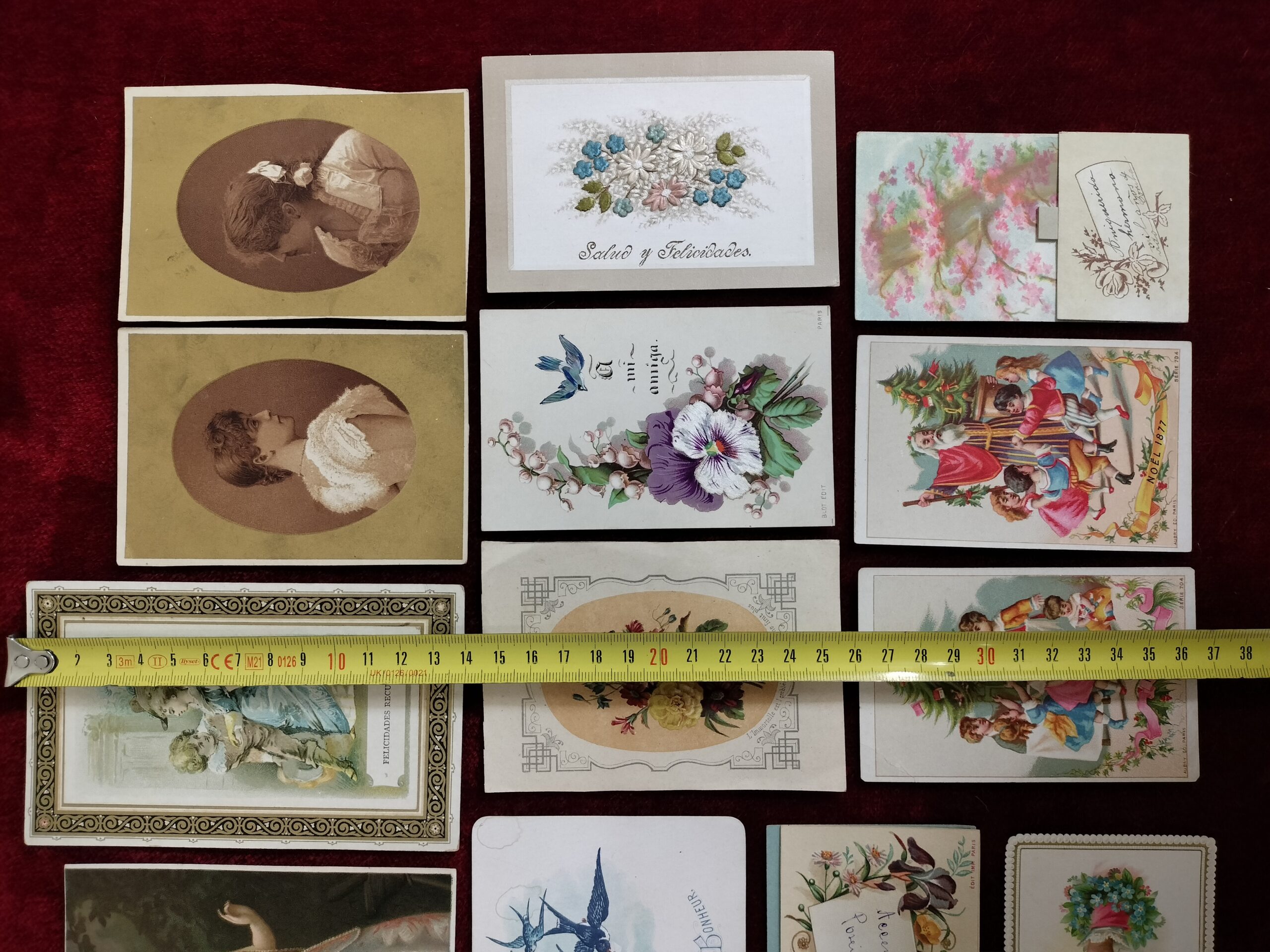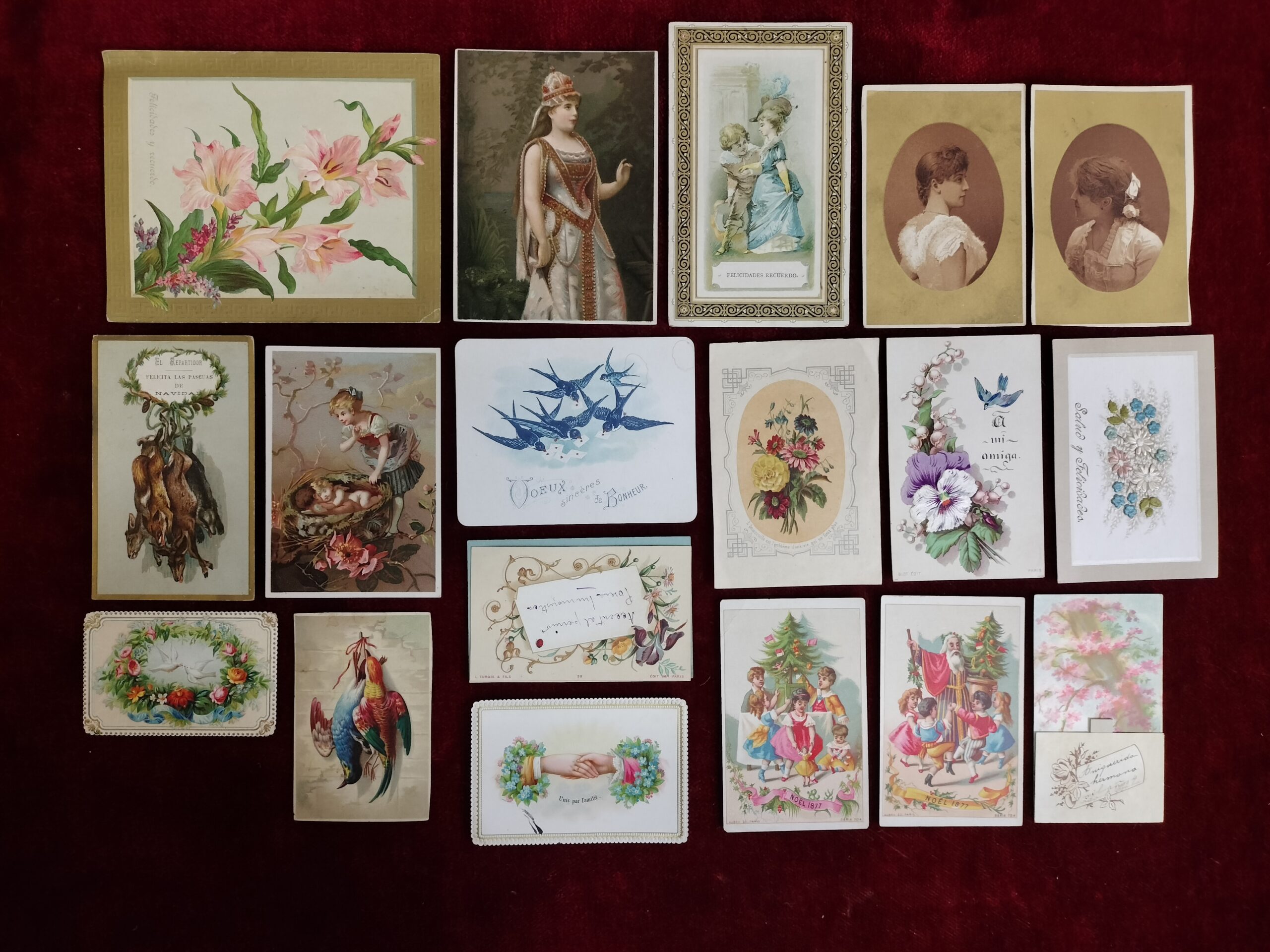 LOTE DE CROMOS O TRADING CARDS (18) DE FELICITACIONES. CROMOLITOGRAFÍA. ESPAÑA Y FRANCIA. XIX