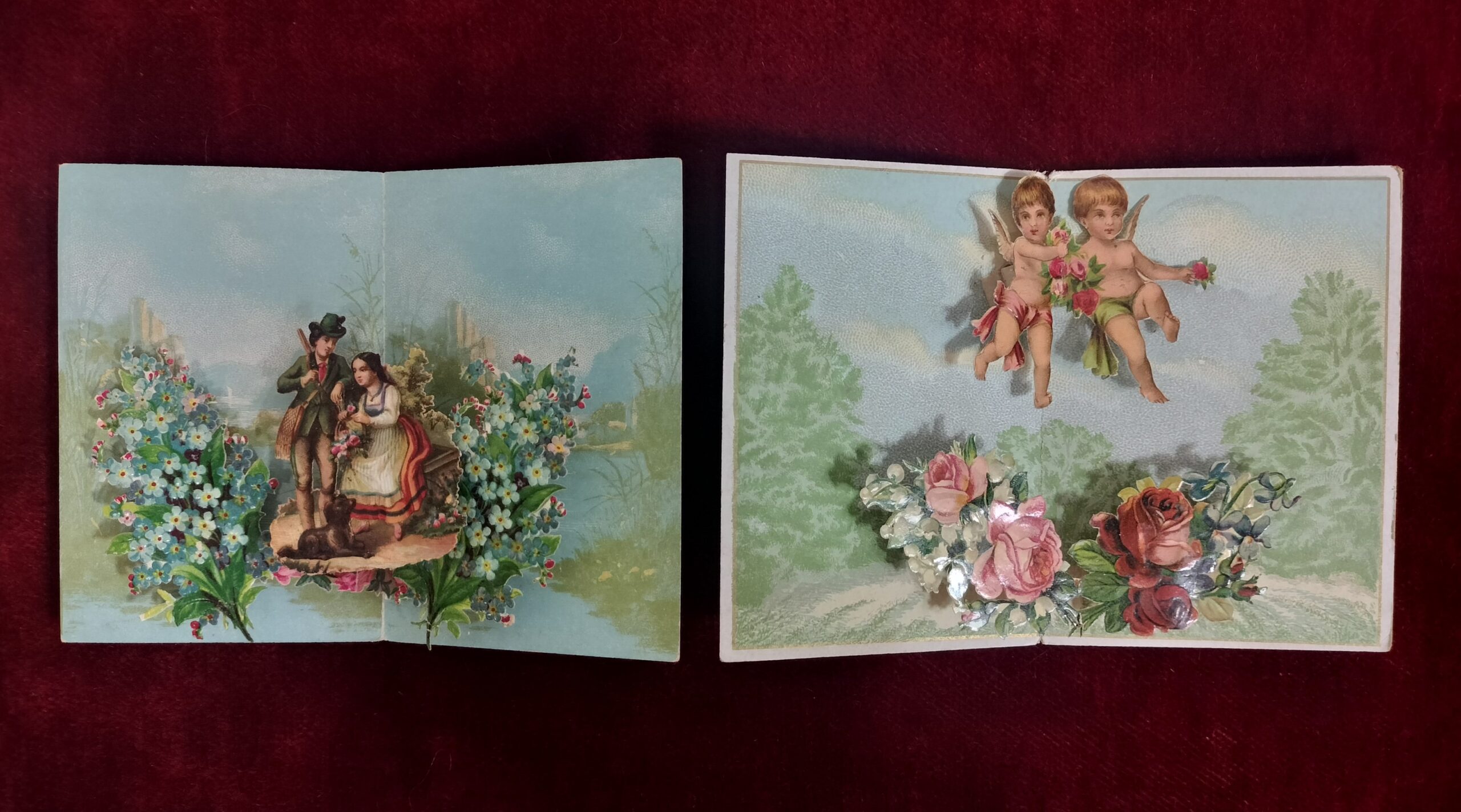 PAREJA DE CROMOS TROQUELADOS-DIORAMA (POP-UP). CROMOLITOGRAFÍA SOBRE PAPEL. ESPAÑA. XX