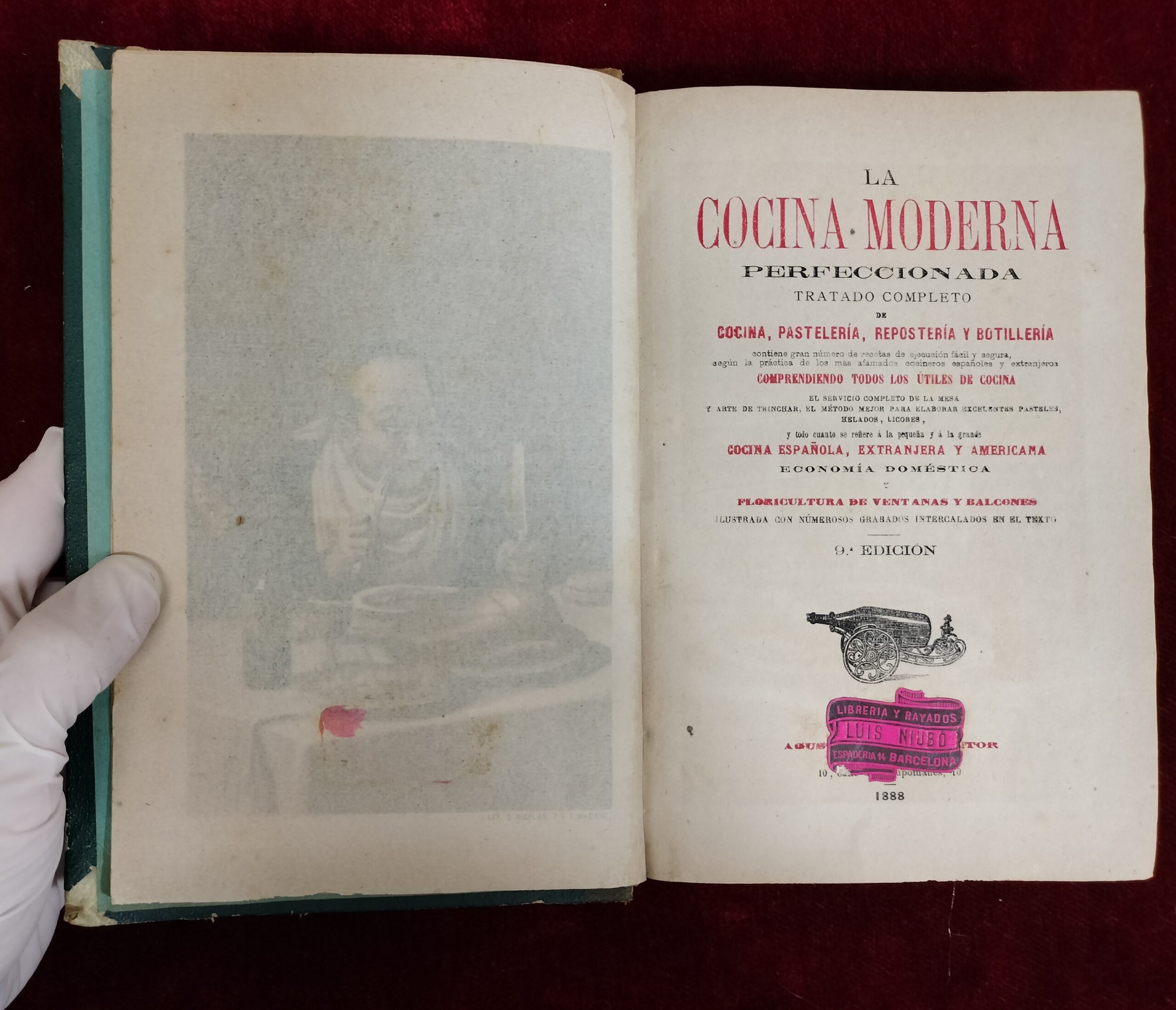 VER IMÁGENES PARA COMPROBAR EL ESTADO REAL. LAS IMÁGENES FORMAN PARTE DE LA DESCRIPCIÓN. LA COCINA MODERNA PERFECCIONADA. TRATADO COMPLETO DE COCINA, PASTELERÍA, REPOSTERÍA Y BOTILLERÍA. NOVENA EDICIÓN. GRABADO COLOREADO EN EL FRONTISPICIO. MADRID, 1888. ILUSTRADO. ENCUADERNACIÓN HOLANDESA, LOMO EN PIEL. LIGERAMENTE FATIGADA. 567 PÁG. BUEN ESTADO GENERAL, LIGERO ÓXIDO, VER IMÁGENES.