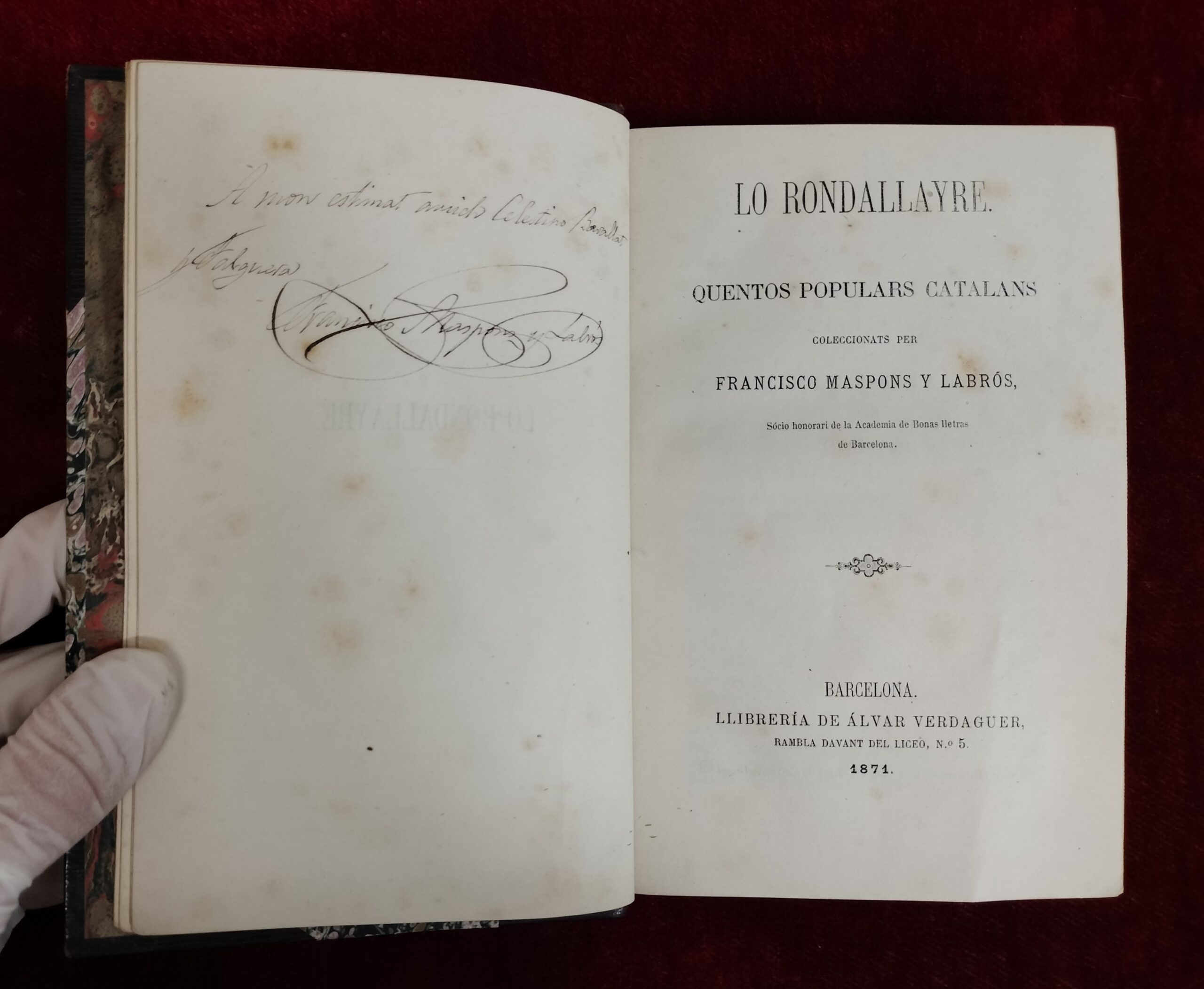 LO RONDALLAYRE. FRANCISCO MASPONS. DOS VOLÚMENES. BARCELONA. ÁLVAR VERDAGUER. BARCELONA. 1871-1872
