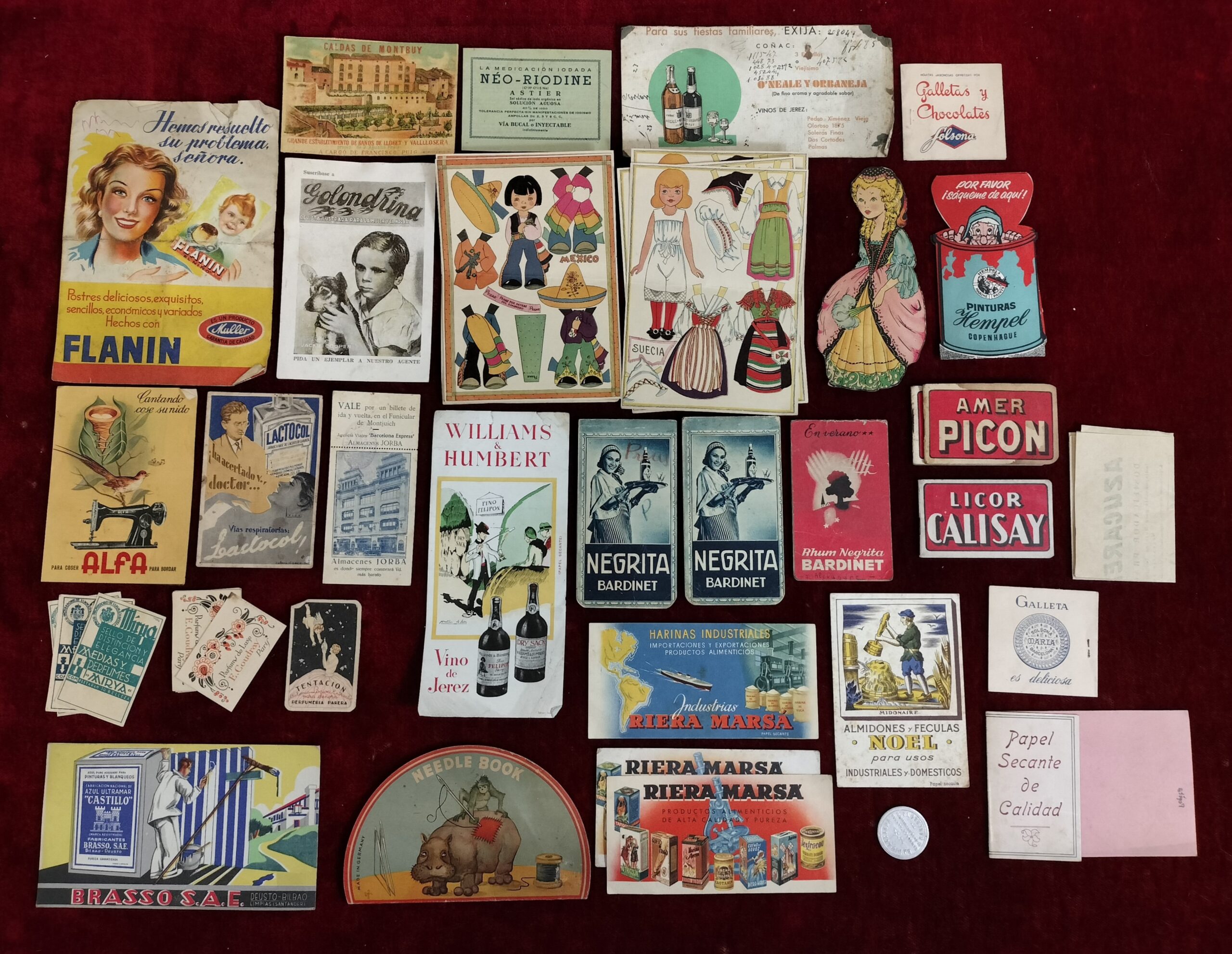 LOTE DE FOLLETOS Y MUESTRAS DE PUBLICIDAD. NEGRITA, FLANIN, KEMPEL, ETC. EUROPA. XX
