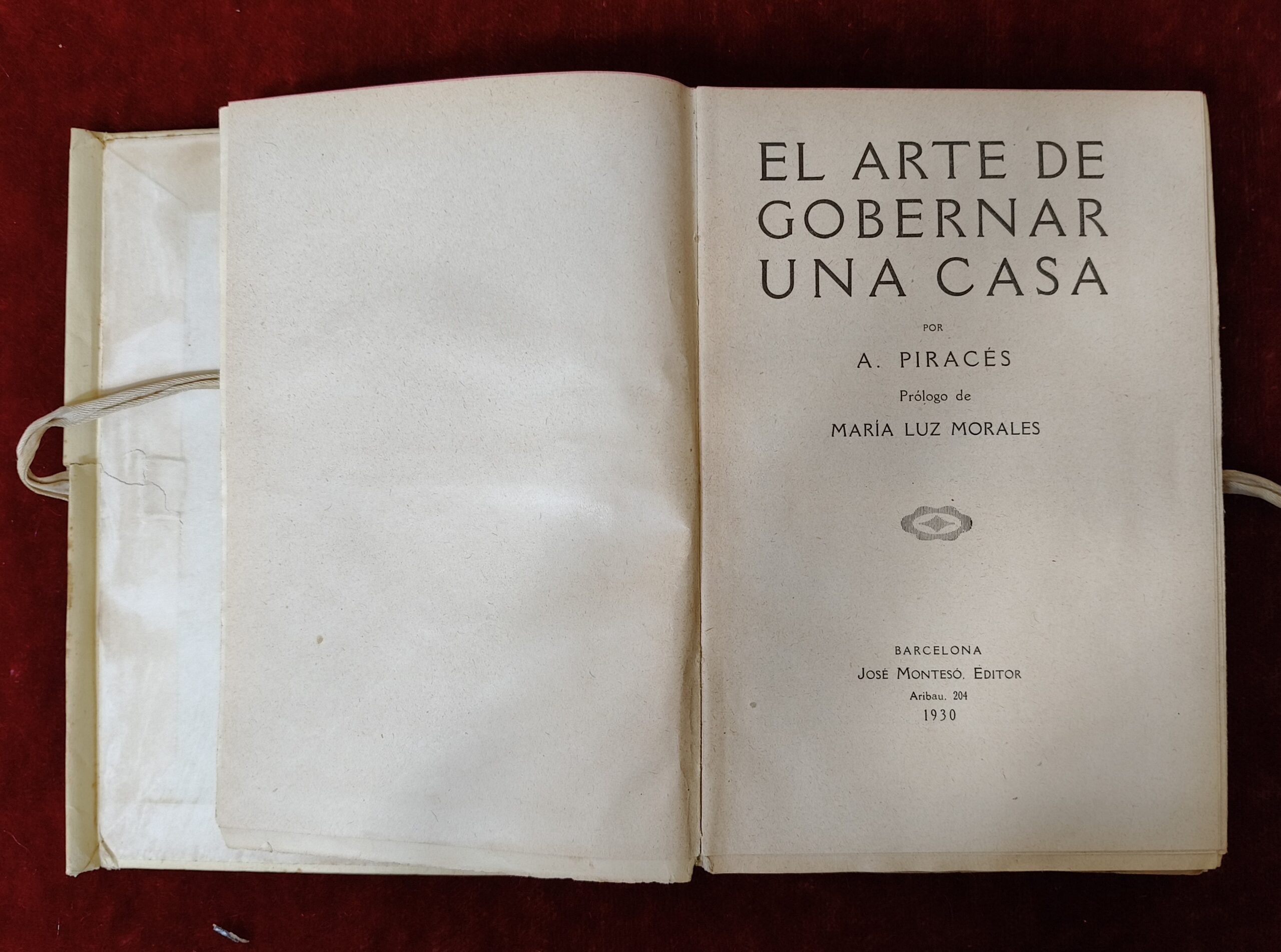 EL ARTE DE GORBERNAR UNA CASA. PIRACES, A. JOSÉ MONTESÓ. BARCELONA.1930