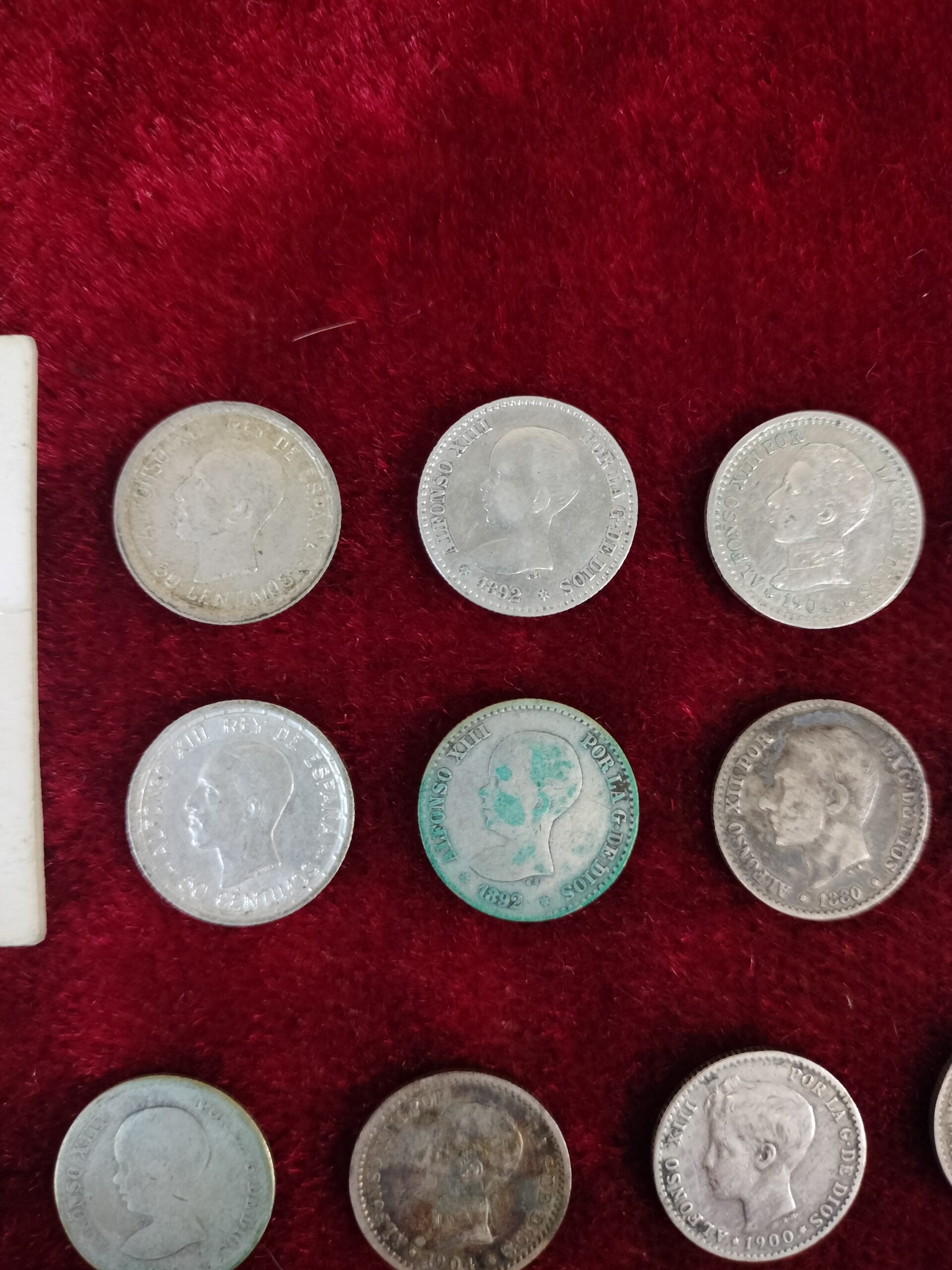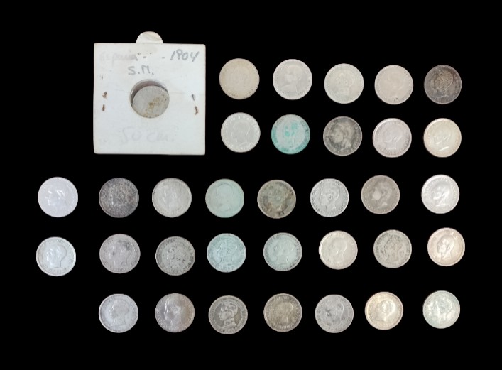 VER IMÁGENES PARA COMPROBAR EL ESTADO REAL.  LAS IMÁGENES FORMAN PARTE DE LA DESCRIPCIÓN.  LOTE DE MONEDAS DE PLATA Y COBRE. CÉNTIMOS Y PESETAS DE LOS REINADOS DE ALFONSO XII Y ALFONSO XIII.  CON EL RETRATO DEL MONARCA EN EL ANVERSO Y EL ESCUDO DE ESPAÑA EN EL REVERSO.  LIGEROS RESTOS DE ÓXIDO Y SUCIEDAD, VER IMÁGENES.