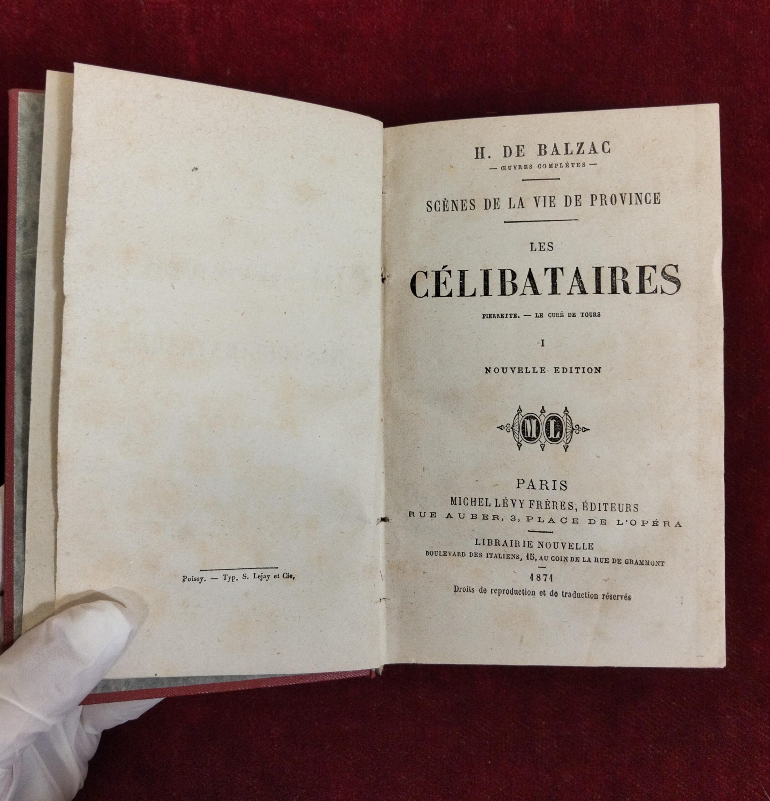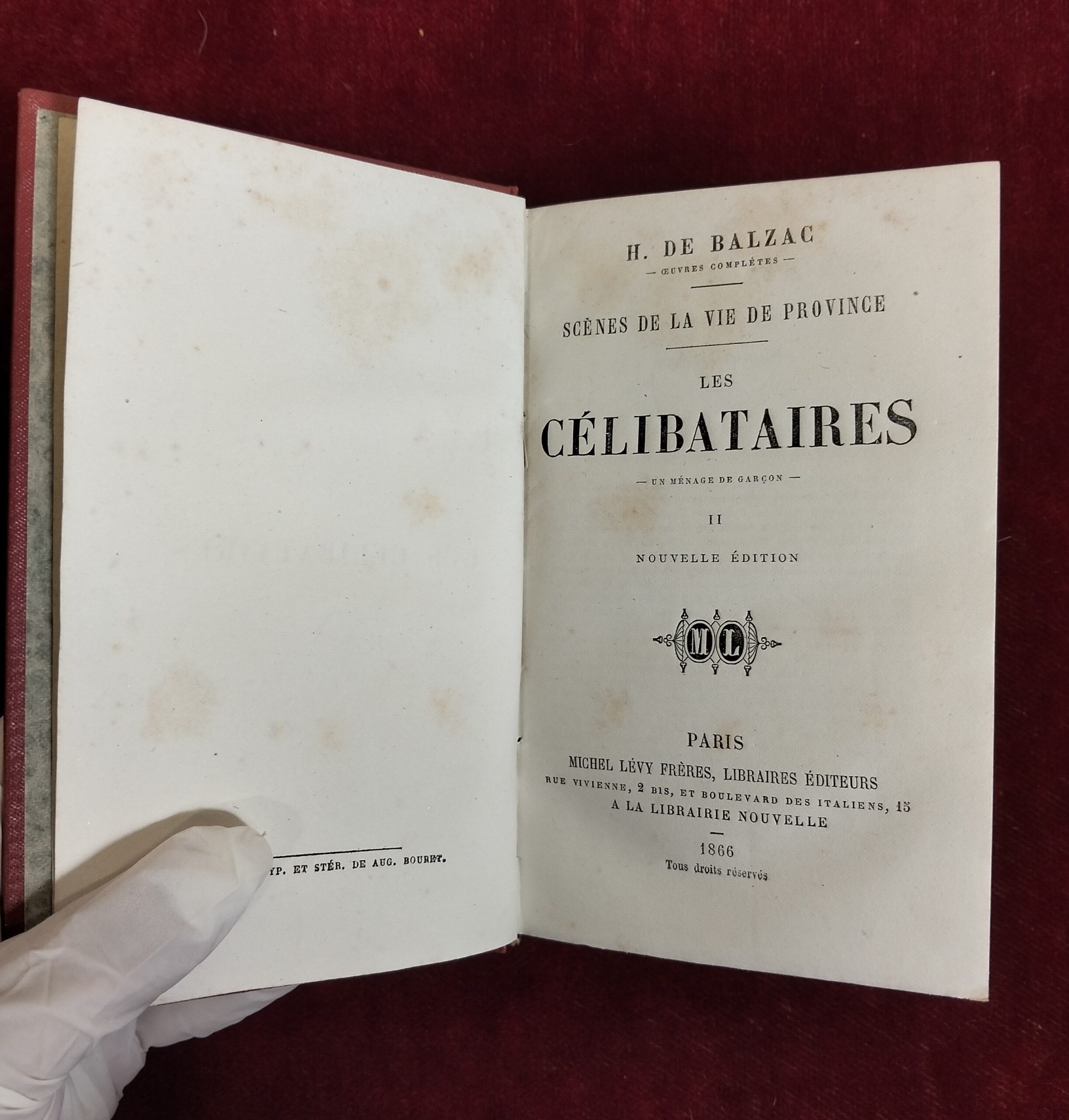 LES CELIBATAIRES. SCENES DE LA VIE DE PROVINCE. II VOLS. H. DE BALZAC. FRANCIA. 1866