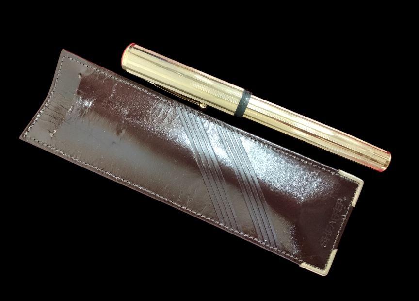 PLUMA ESTILOGRÁFICA SHEAFFER. METAL DORADO Y PLUMÍN EN ORO, 18K. EEUU. 1920S.