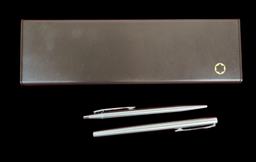 PLUMA ESTILOGRÁFICA Y BOLÍGRAFO MONTBLANC NOBLESSE. METAL PLATEADO. ALEMANIA. SIGLO XX.