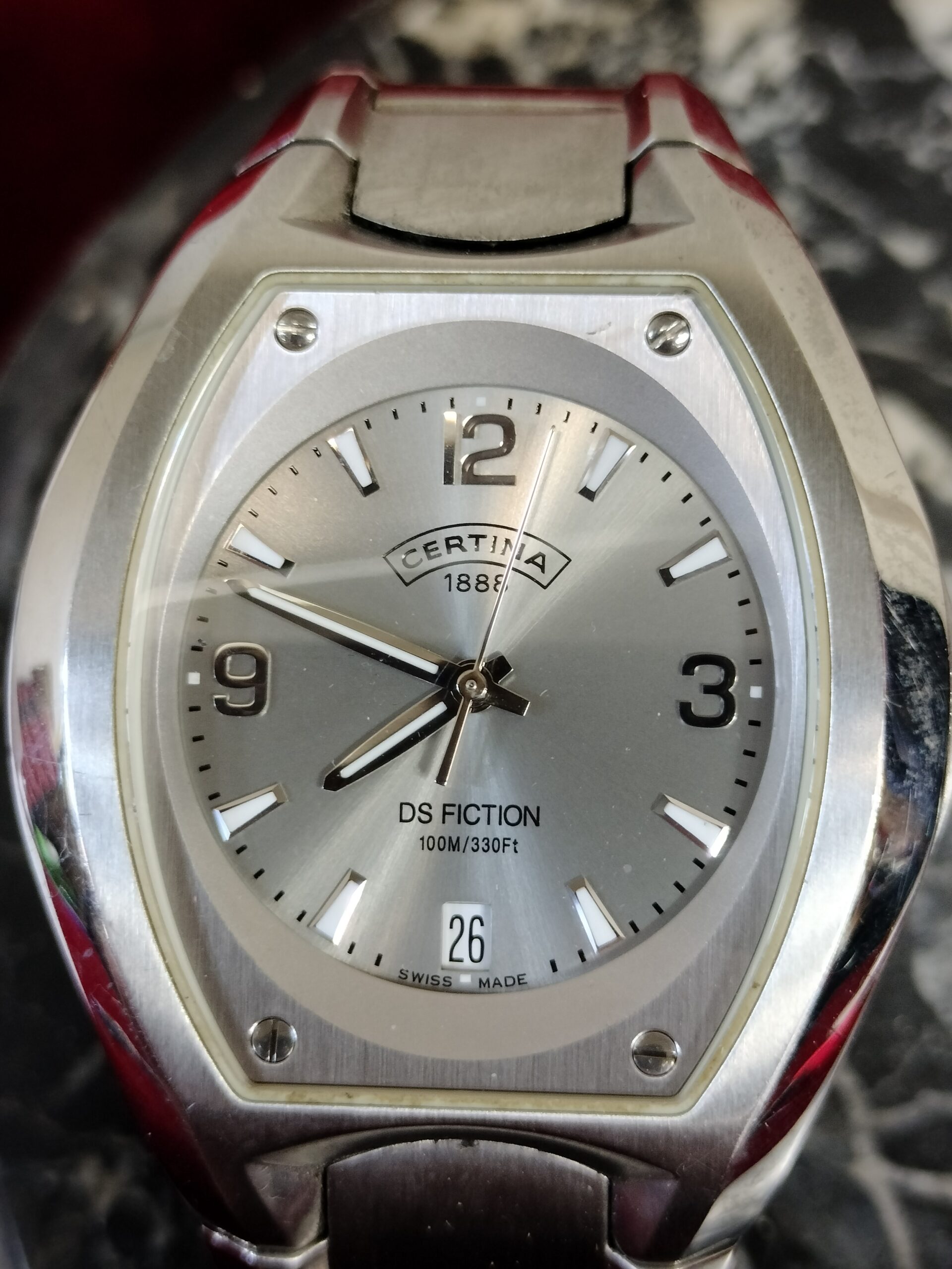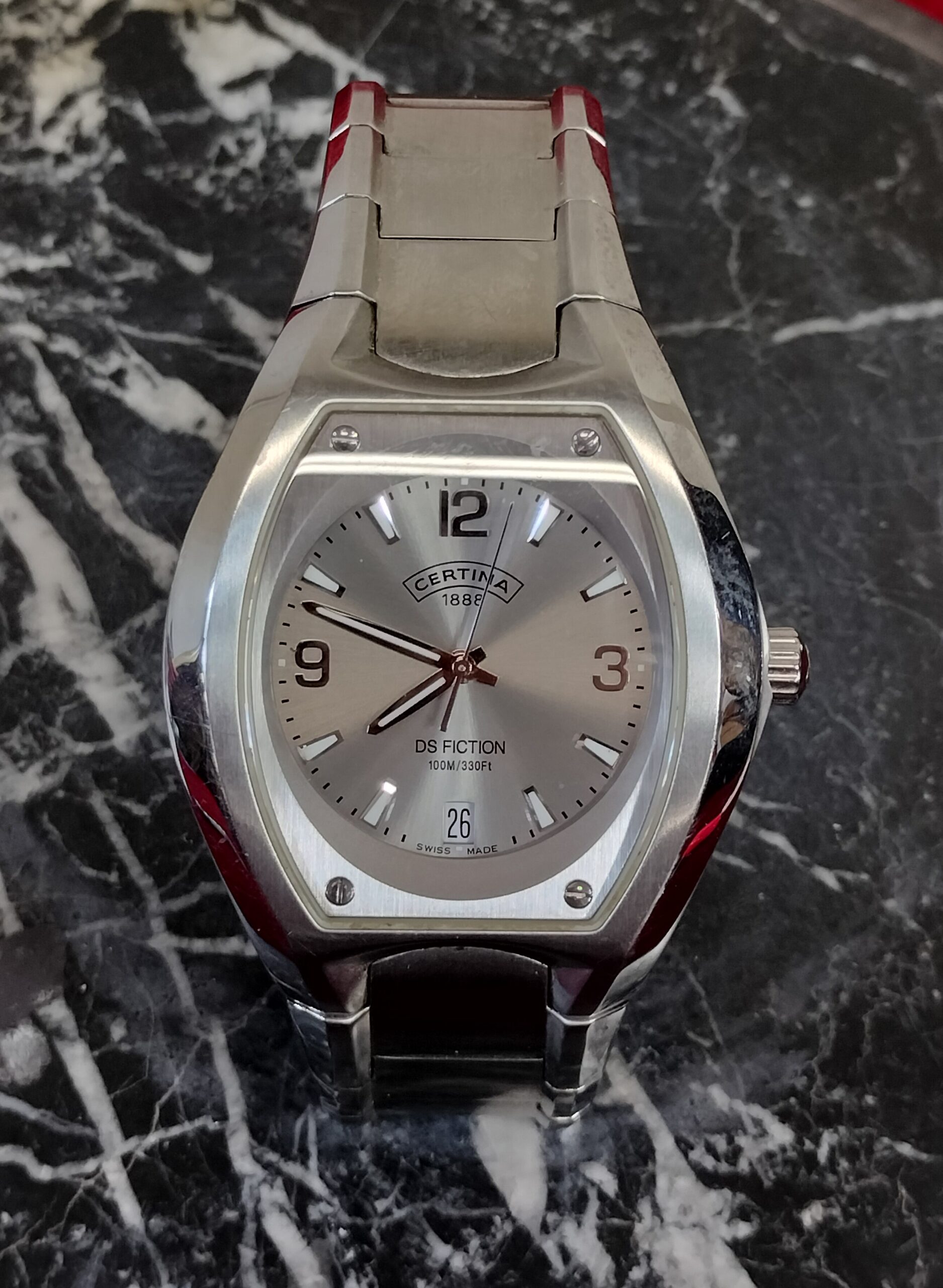 VER IMÁGENES PARA COMPROBAR EL ESTADO REAL. LAS IMÁGENES FORMAN PARTE DE LA DESCRIPCIÓN. RELOJ DE PULSERA CERTINA 1888. DS FICTION. WATER RESISTANT 100M / 330 FT. SAPPHIRE CRYSTAL. STAINLESS STEEL. 52023 115.8130.42.12. LA CADENA SE ENCUENTRA ROTA. PRESENTA LIGERAS EROSIONES Y RESTOS DE SUCIEDAD. SE RECOMIENDA UN REPASO DEL MECANISMO. VER IMÁGENES. ESFERA: 3,5 X 3,8 CM.