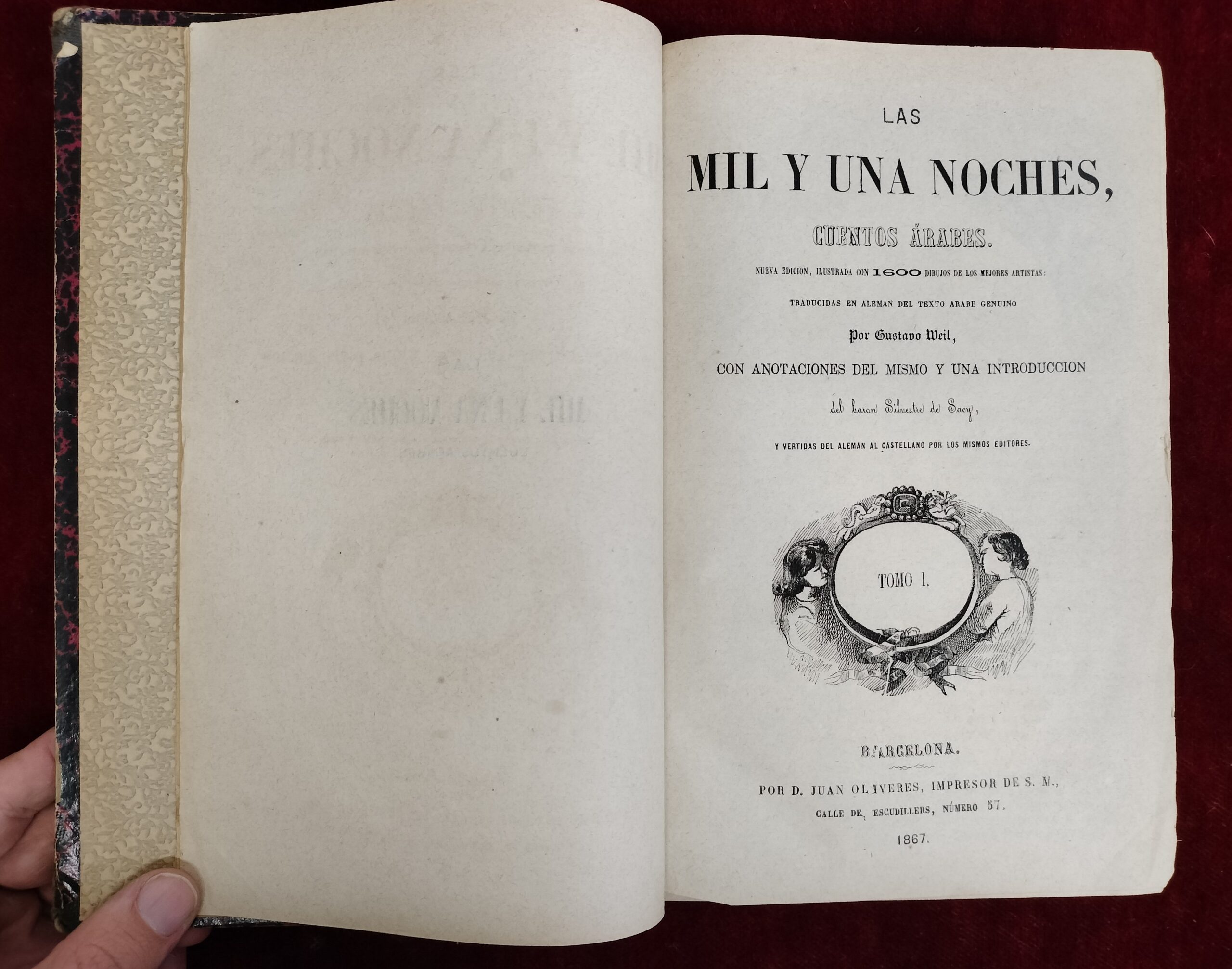 LAS MIL Y UNA NOCHES, CUENTOS ÁRABES. GUSTAVO WEIL. 4 TOMOS. BARCELONA, JUAN OLIVERES. 1867.