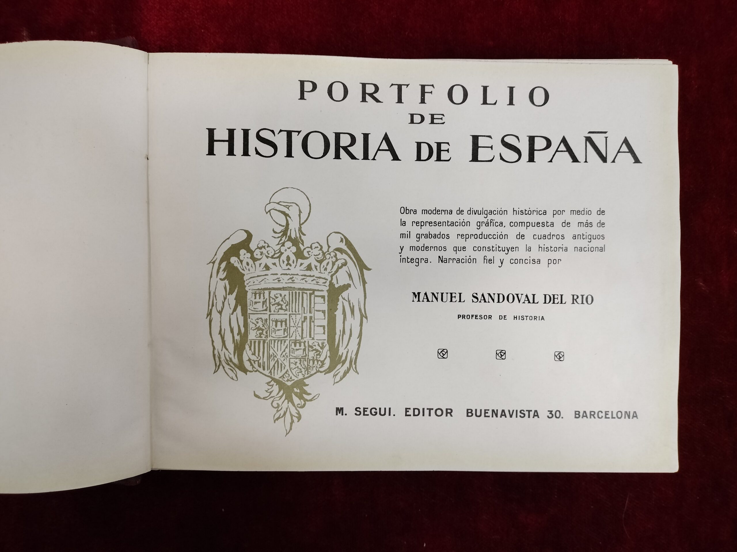 PORTFOLIO DE HISTORIA DE ESPAÑA. MANUEL SANDOVAL DEL RIO. VOL. I-II. BARCELONA, M.SEGUI. 20-40S.