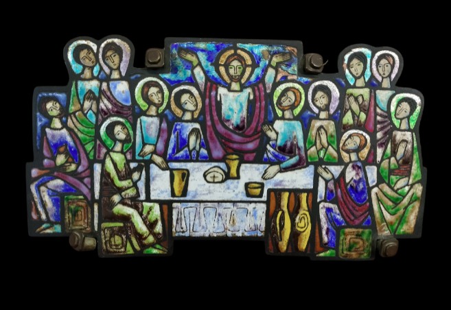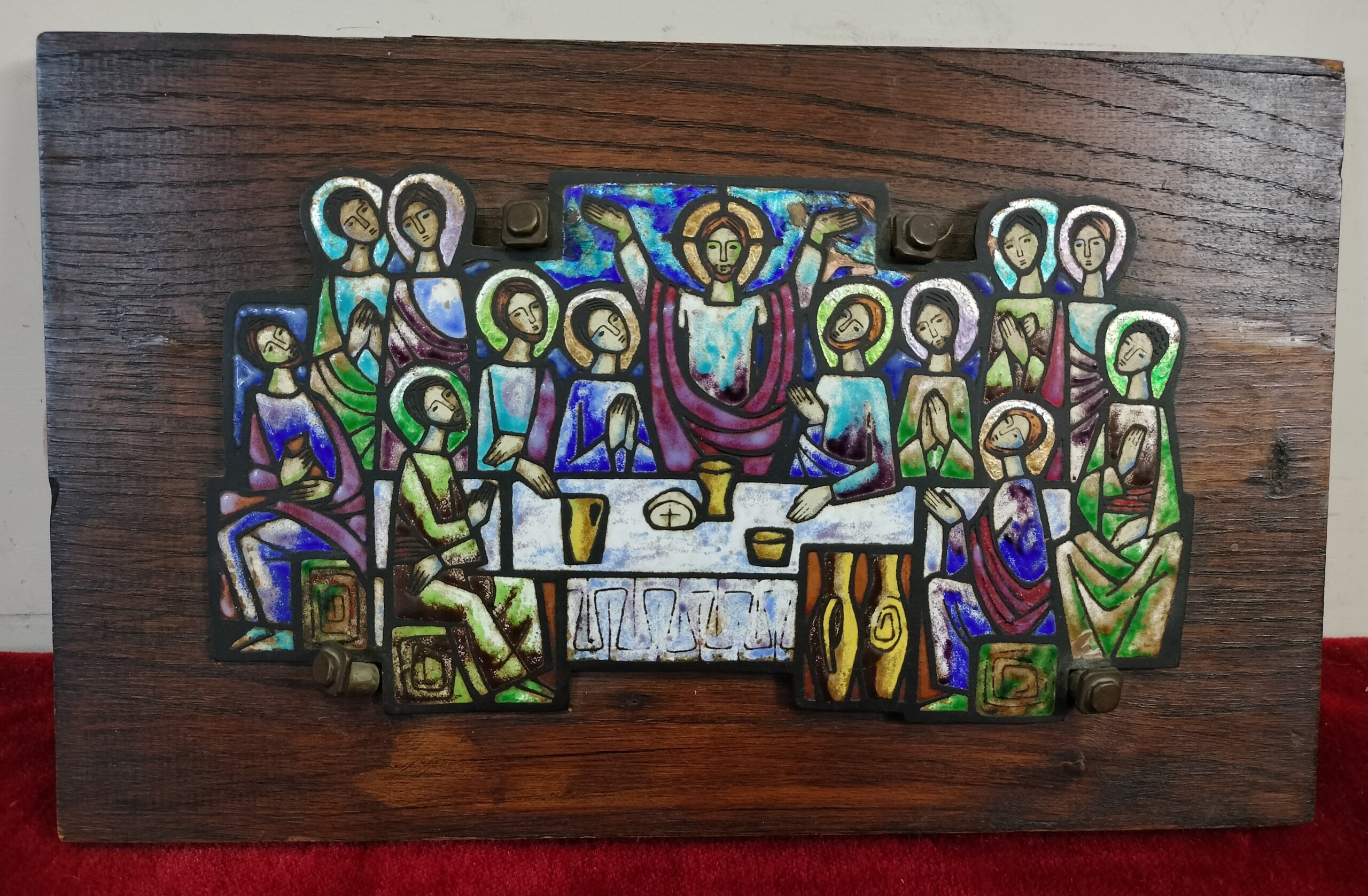 LA ÚLTIMA CENA. ESMALTE SOBRE METAL Y ESTRUCTURA DE MADERA. ESPAÑA. CIRCA 1970.