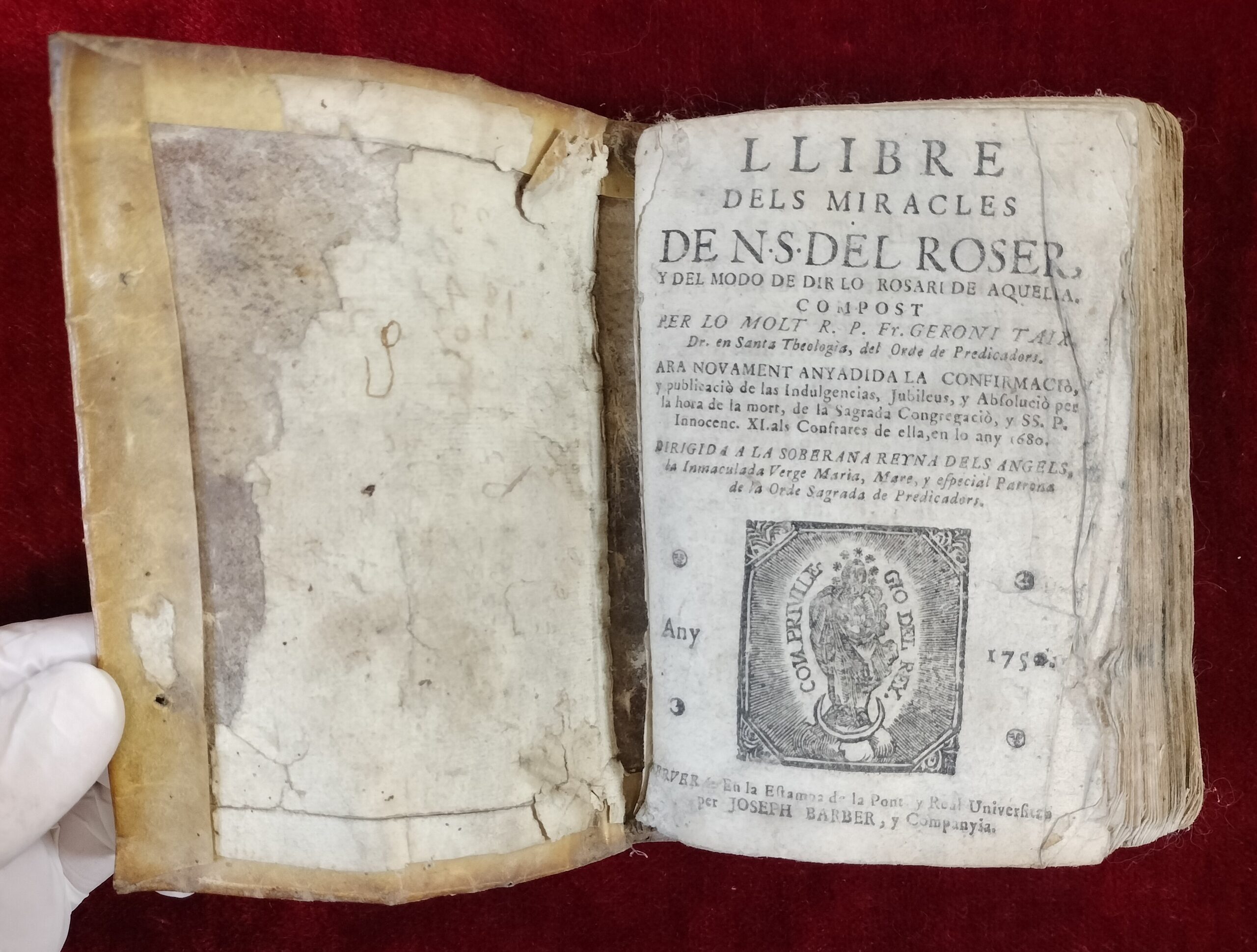 LLIBRE DELS MIRACLES DE N.S DEL ROSER. GERONI TAIX. JOSEPH BARBER Y COMPANYIA. 1750
