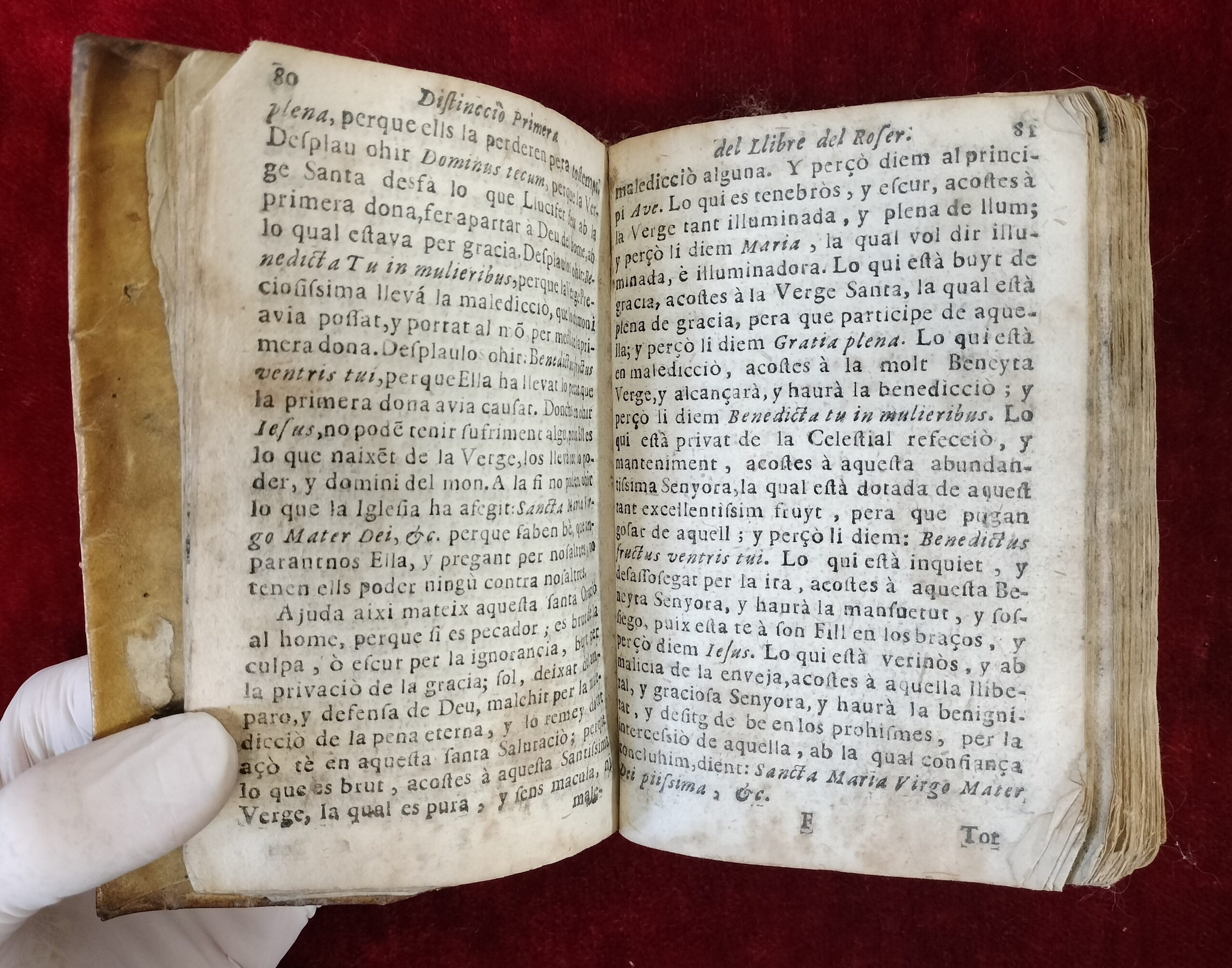 VER IMÁGENES PARA COMPROBAR EL ESTADO REAL. LAS IMÁGENES FORMAN PARTE DE LA DESCRIPCIÓN. LLIBRE DELS MIRACLES DE N.S DEL ROSER Y DEL MODO DE DIR LO ROSARI DE AQUELLA. FR. GERONI TAIX. JOSEPH BARBER, Y COMPANYIA. 1750. GRABADO EN EL FRONTISPICIO CON LA IMAGEN DE LA VIRGEN DEL ROSER. INCLUYE LOS GOIGS DE NOSTRA SENYORA DEL ROSER. ENCUADERNACIÓN EN PIEL, FATIGADA. 410 PÁG + TABLA. PÁGINAS NUMERADAS. PRESENTA DESGASTES, PLIEGUES Y RESTOS DE SUCIEDAD. ALGUNA INSCRIPCIÓN. VER IMÁGENES.