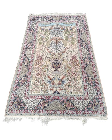 GRAN ALFOMBRA IRANÍ. SEDA Y MICROPUNTO. 150,5 X 252 CM. IRÁN. SIGLOS XIX-XX.