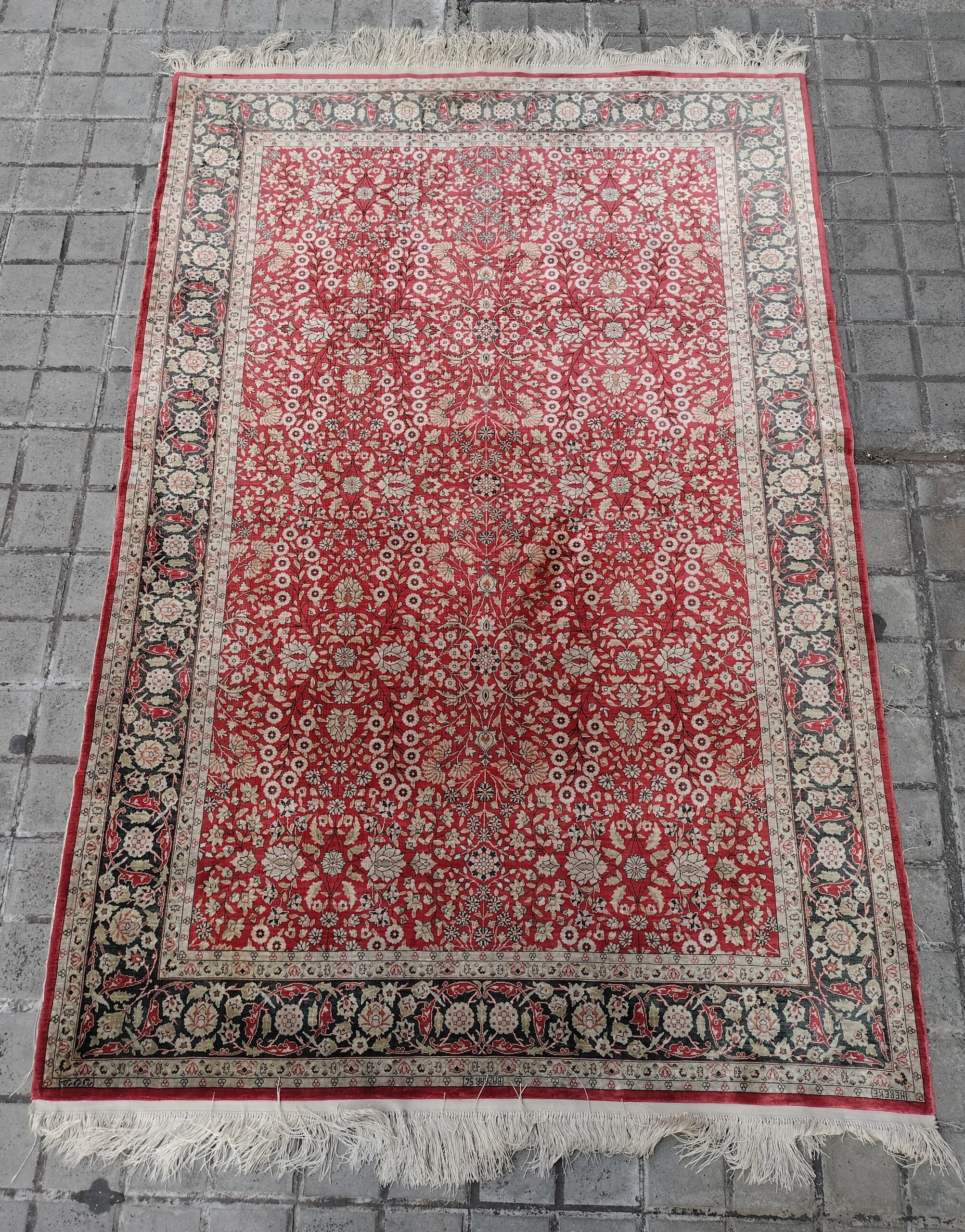 VER IMÁGENES PARA COMPROBAR EL ESTADO REAL. LAS IMÁGENES FORMAN PARTE DE LA DESCRIPCIÓN. CONTACTE CON NOSOTROS PARA CALCULAR EL PRECIO DE ENVIO SEGÚN SU CASO. ALFOMBRA DE ESTILO INDO-PERSA O TURCO. FIRMADO EN UNA ESQUINA: HEREKE. LANA ANUDADA A MANO. CON MOTIVOS FLORALES Y GEOMÉTRICOS ESTILIZADOS. ETIQUETAS EN EL REVERSO. SIN PÉRDIDAS IMPORTANTES. SE APRECIA UN LIGERO CAMBIO DE TONALIDAD EN UNA PARTE CENTRAL DEL TAPIZ, SEGURAMENTE DEBIDO AL DESGASTE. FLECOS CON LIGEROS DESGASTES. VER IMÁGENES. 163,4 LARGO X 108,5 ANCHO (SIN FLECOS)