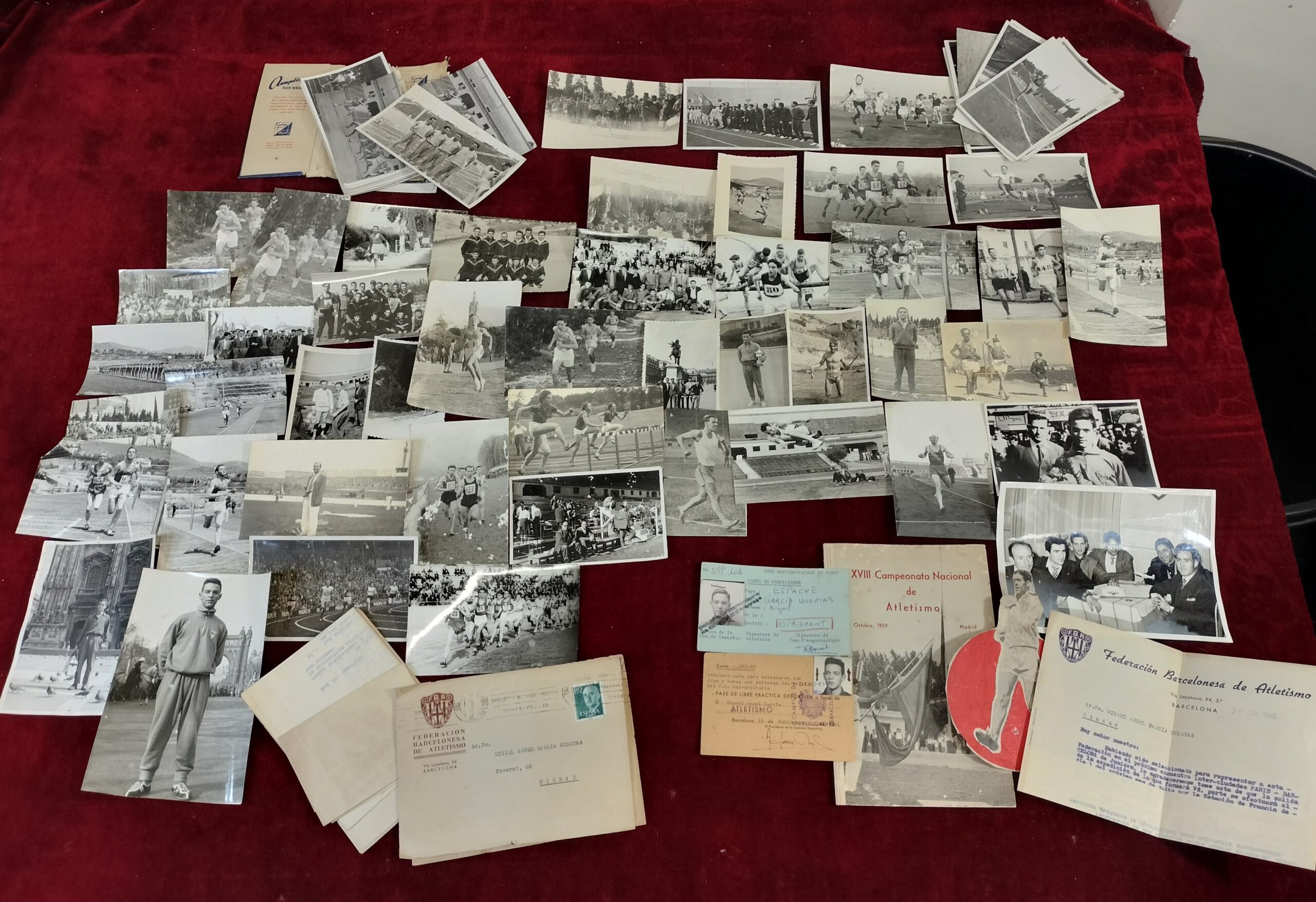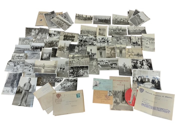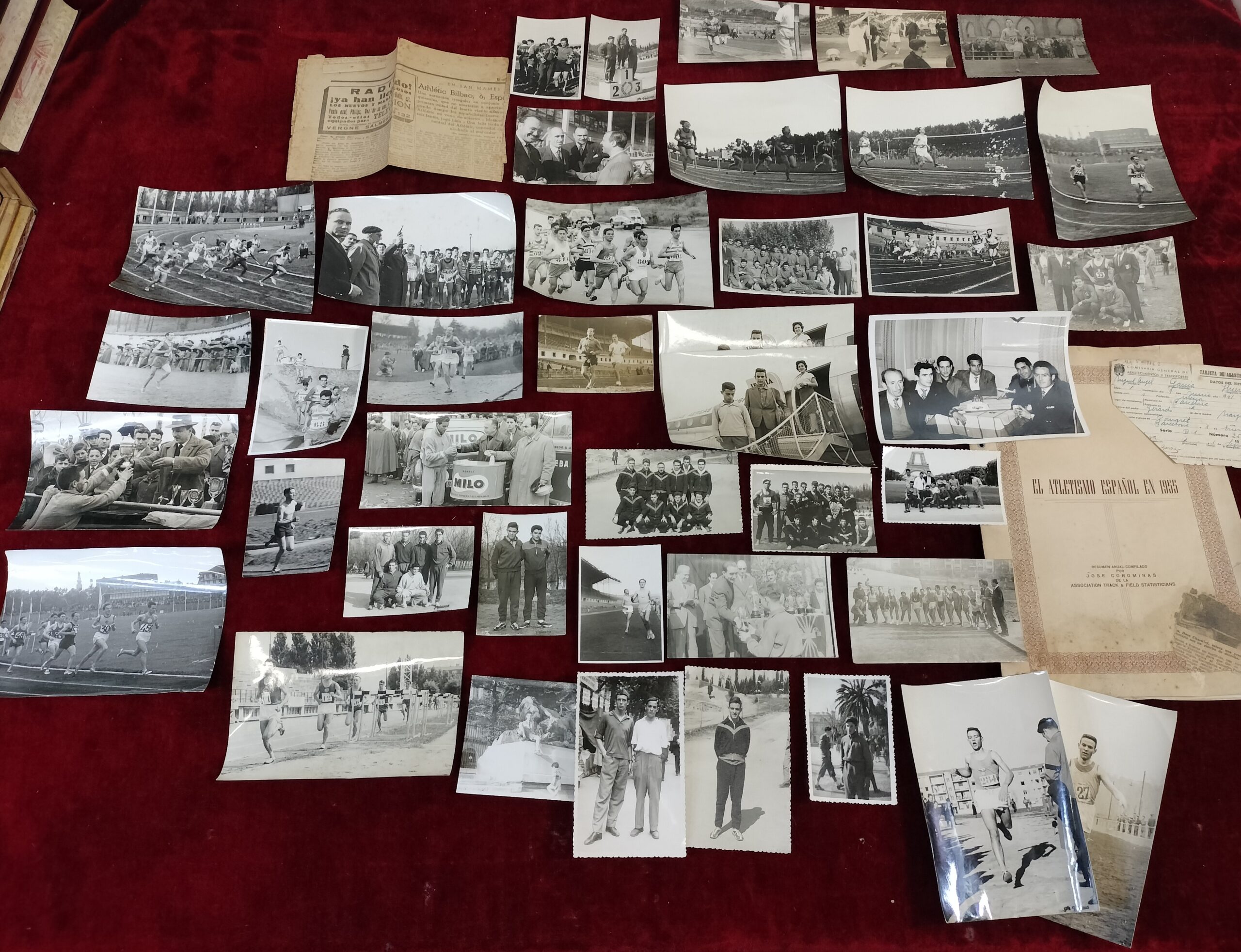 VER IMÁGENES PARA COMPROBAR EL ESTADO REAL. LAS IMÁGENES FORMAN PARTE DE LA DESCRIPCIÓN. COLECCIÓN DE FOTOGRAFÍAS Y DOCUMENTOS DE ATLETISMO. INICIOS DEL SIGLO XX. PROCEDE DEL FONDO MIGUEL HUERTAS. FOTOPERIODISTA DEPORTIVO Y ATLETA. INCLUYE FOTOGRAFÍAS DE EQUIPO, DE COMPETICIONES, DE ENTRENAMIENTO, DE VIAJES INTERNACIONALES (JAPÓN, AUSTRALIA, ETC). CARNETS Y OTROS DOCUMENTOS (CARTAS, TARJETAS, ETC). DESGASTES DEBIDO AL USO Y EL TIEMPO. PEQUEÑOS PLIEGUES EN ALGUNAS FOTOGRAFÍAS. DOCUMENTOS CON ÓXIDO Y LIGERA PÁTINA AMARILLA.