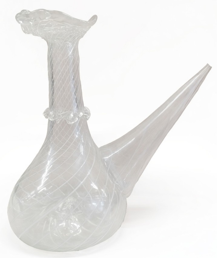 ANTIGUO PORRÓN CATALÁN. VIDRIO SOPLADO E HILOS DE LACTICINIO. ESPAÑA. SIGLOS XVIII-XIX